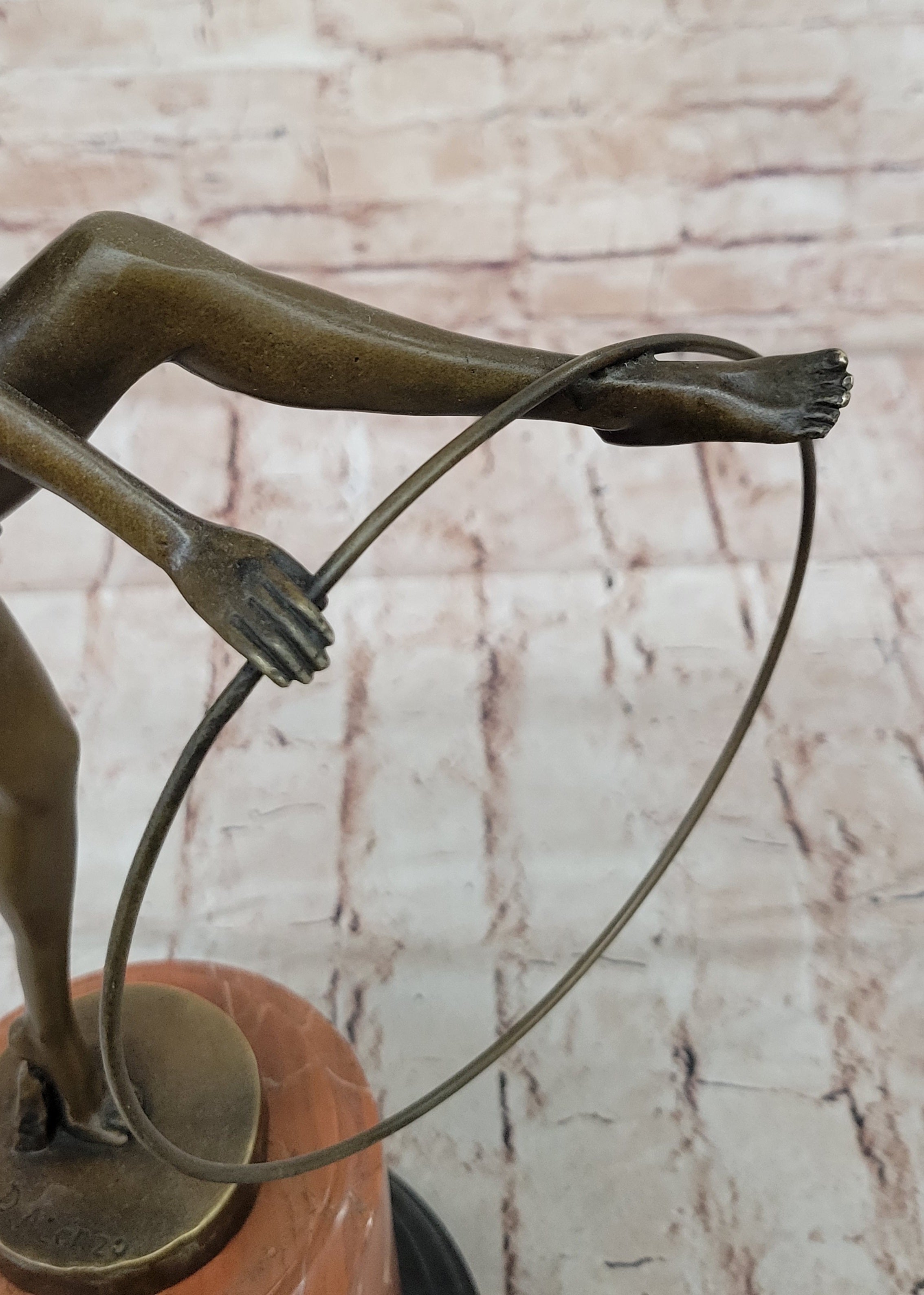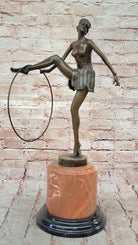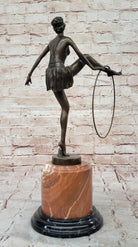 D. Alonzo Art Deco Bronze Ballerina with Hoop on Marble Pedestal