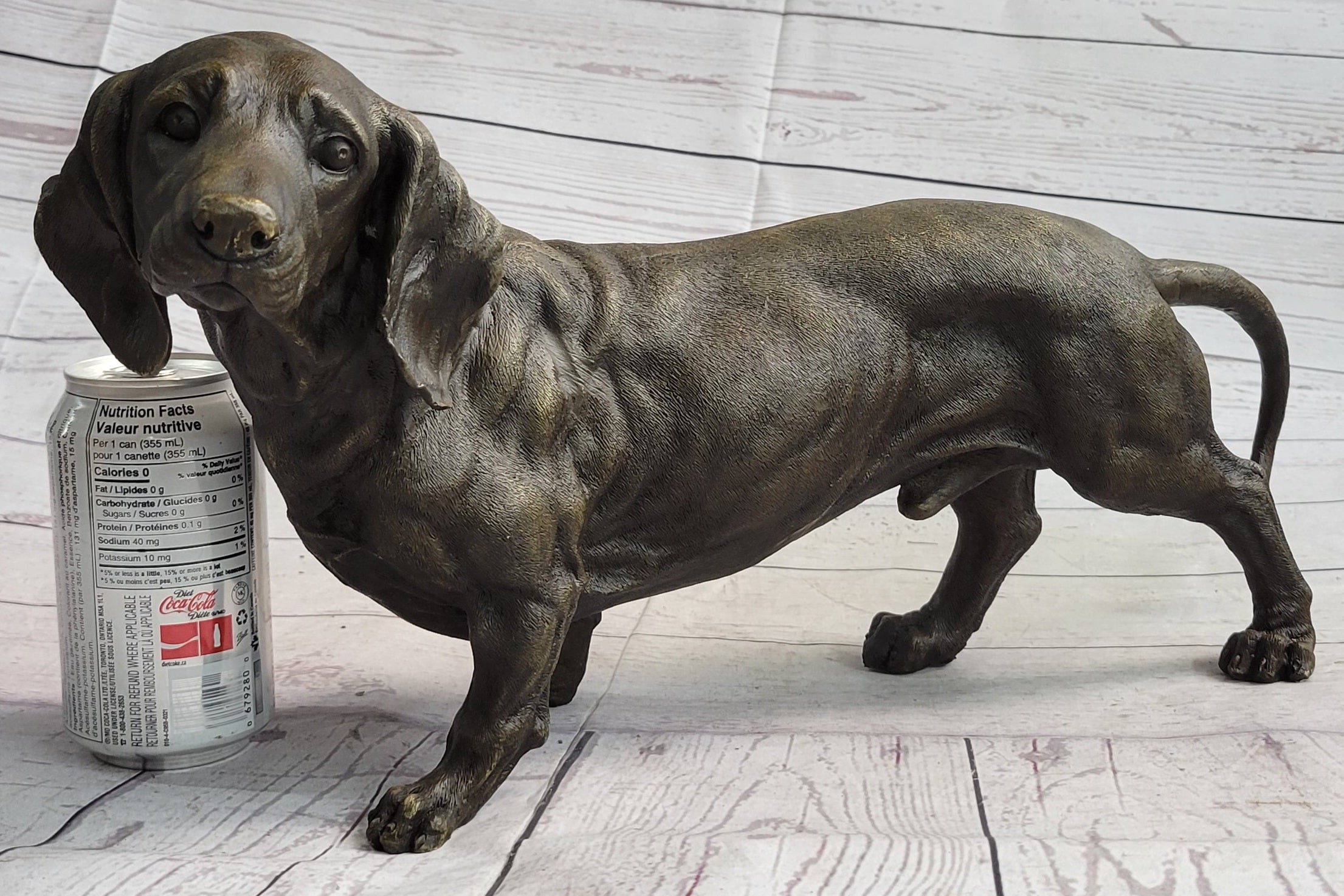 Dachshund Weiner Dog Bronze Metal Figure Figurine Sculpture Statue Decor Original Art 9" x 17"