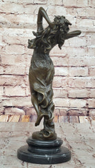 Dancing Maiden Bronze Sculpture – Graceful Art Nouveau Figurine on Marble Base