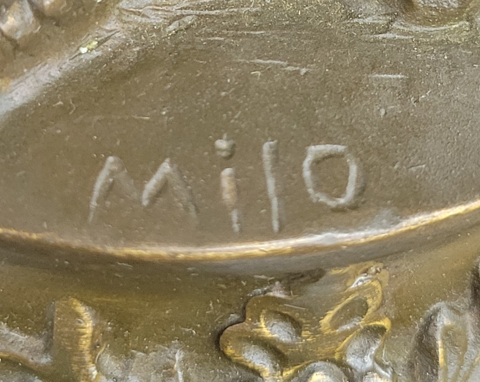 Signed by Milo, this original bronze figurine is more than just décor—it’s a conversation starter, a touch of humor, and a celebration of fine art. Ideal for collectors of unique bronzes or lovers of animal-themed sculpture, it makes a sophisticated yet playful addition to a desk, bookshelf, or display case.Bronze Dimensions with Marble Base: Height 15" X Width 7"