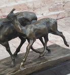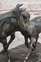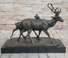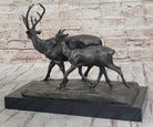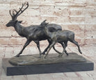 Deer Buck Elk and Doe Fawn Caribou Reindeer Bronze Statue Sculpture Marble Base 11" x 13"