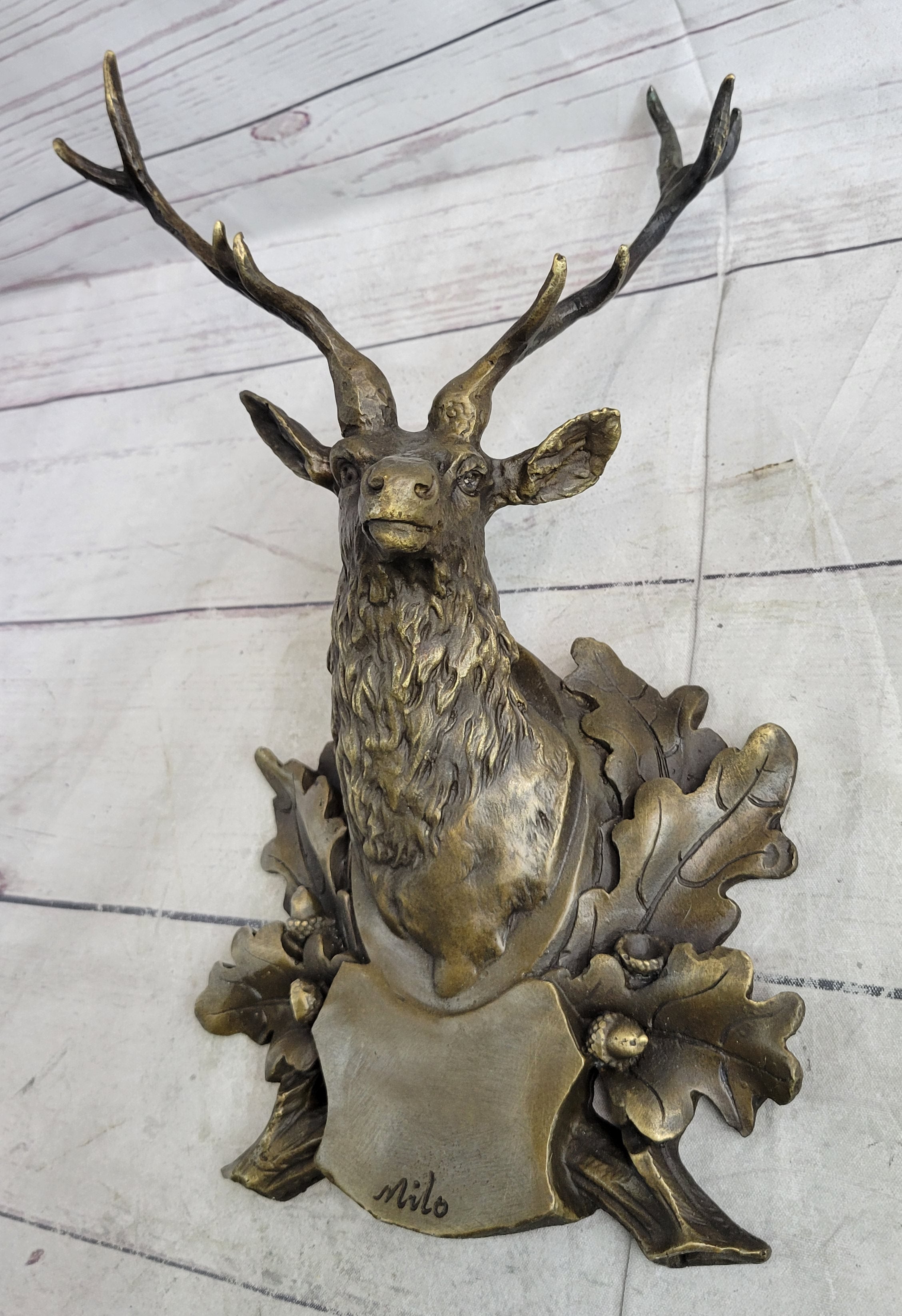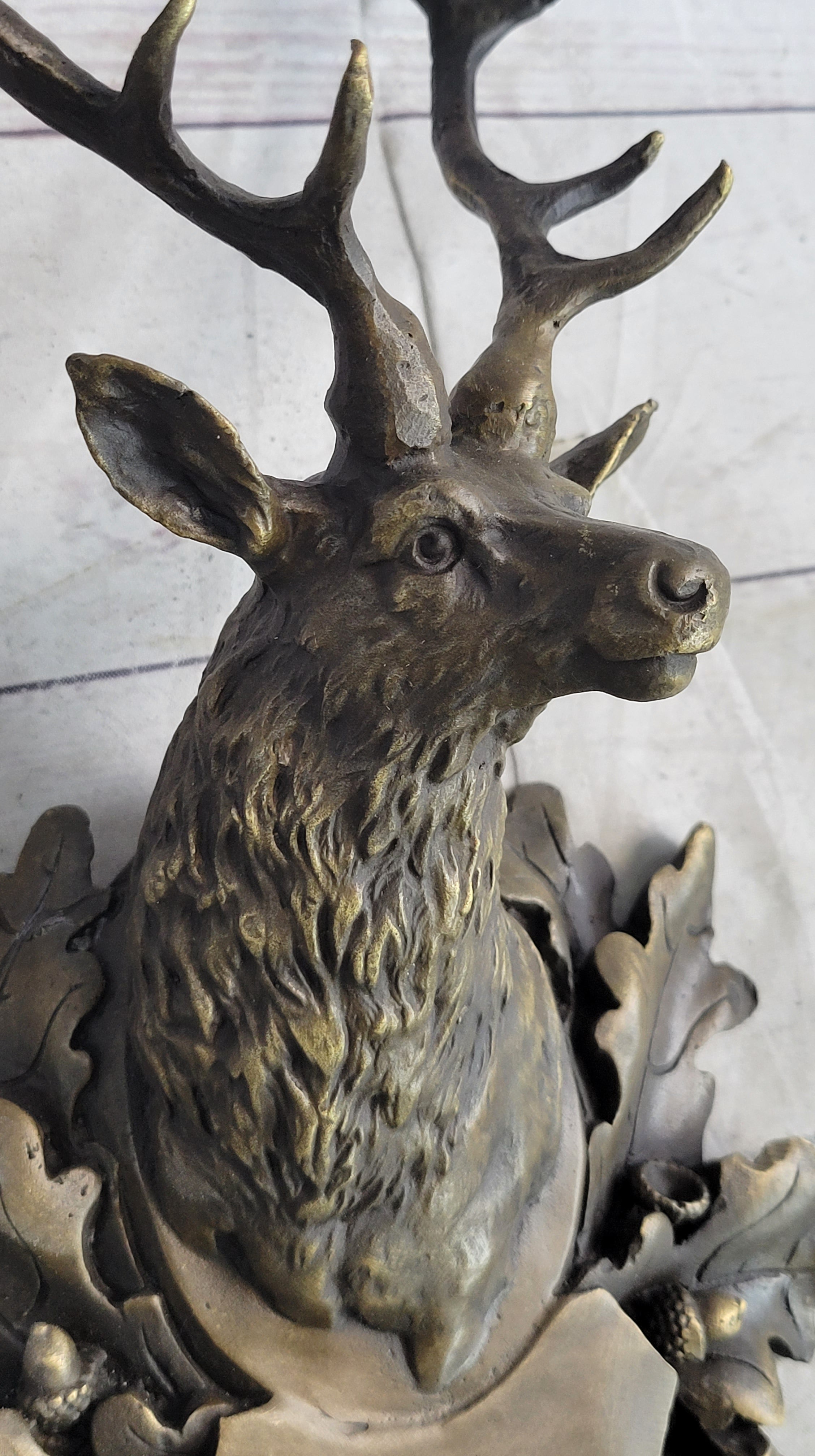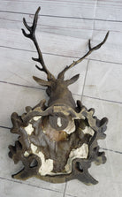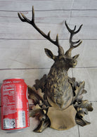 Deer Buck Stag Wall Mounted Bust Head Coat of Arms Plaque Bronze Metal Sculpture