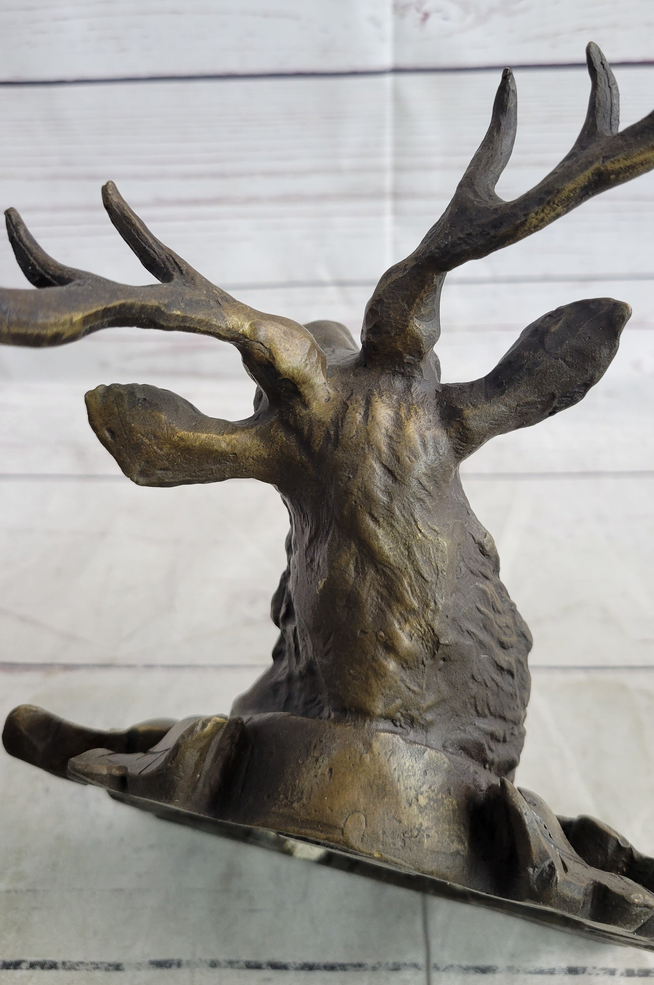 Introducing a magnificent bronze Deer head wall mount that encapsulates the essence of a majestic creature, forever preserved as a hunter's trophy. This captivating sculpture captures the wild beauty and grace of the deer, with its towering crown and striking presence.