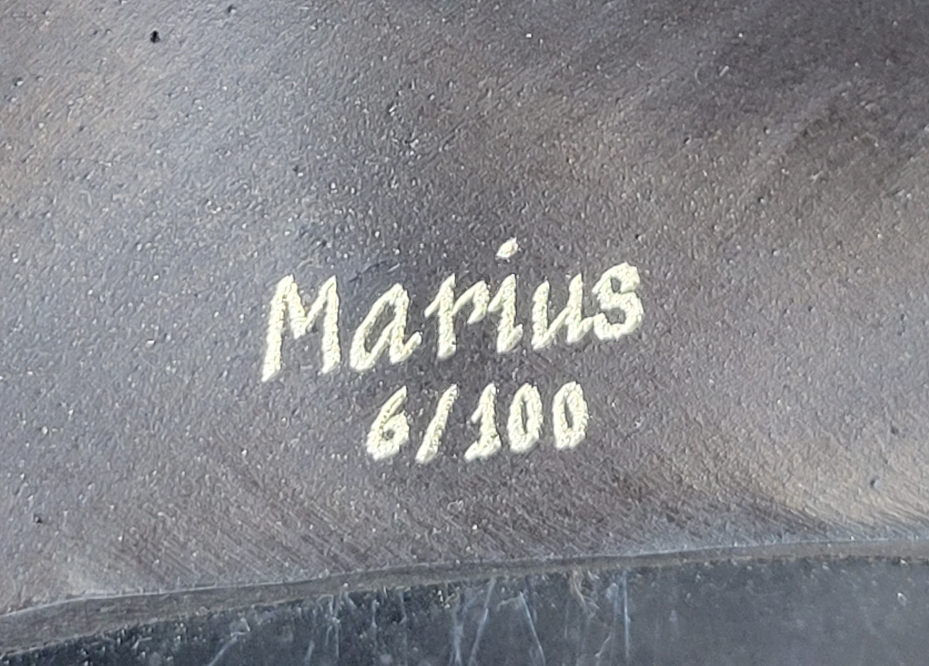 Crafted using the time-honored "Lost Wax Method," this bronze sculpture is a testament to both the artist's skill and the enduring tradition of bronze artistry. Mounted on a black marble base, this piece is not only a celebration of natural beauty but also a striking addition to any room or office, serving as a reminder of the simple wonders of the animal kingdom.Bronze Dimensions with Marble Base: Height 16" X Width 14"