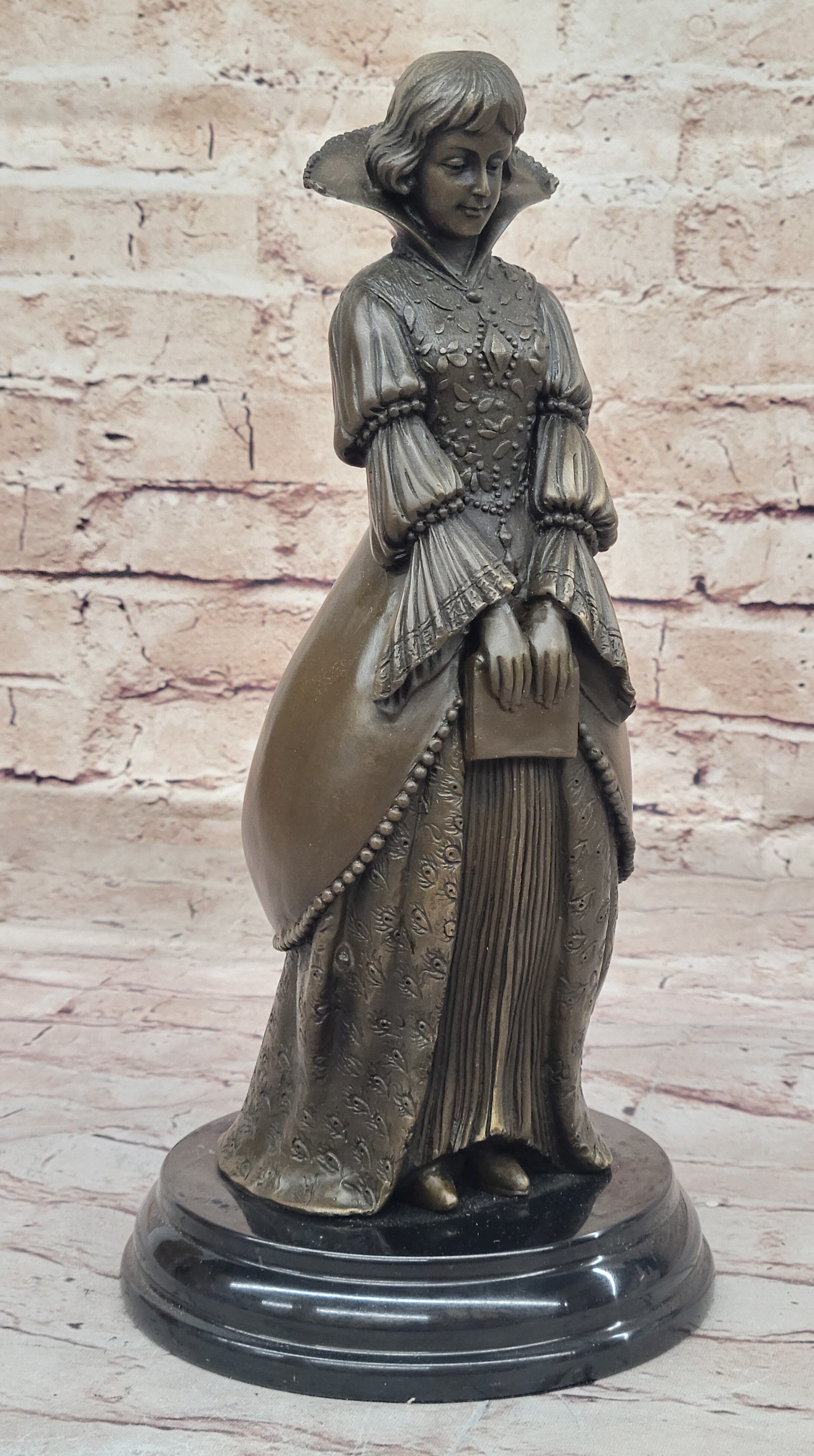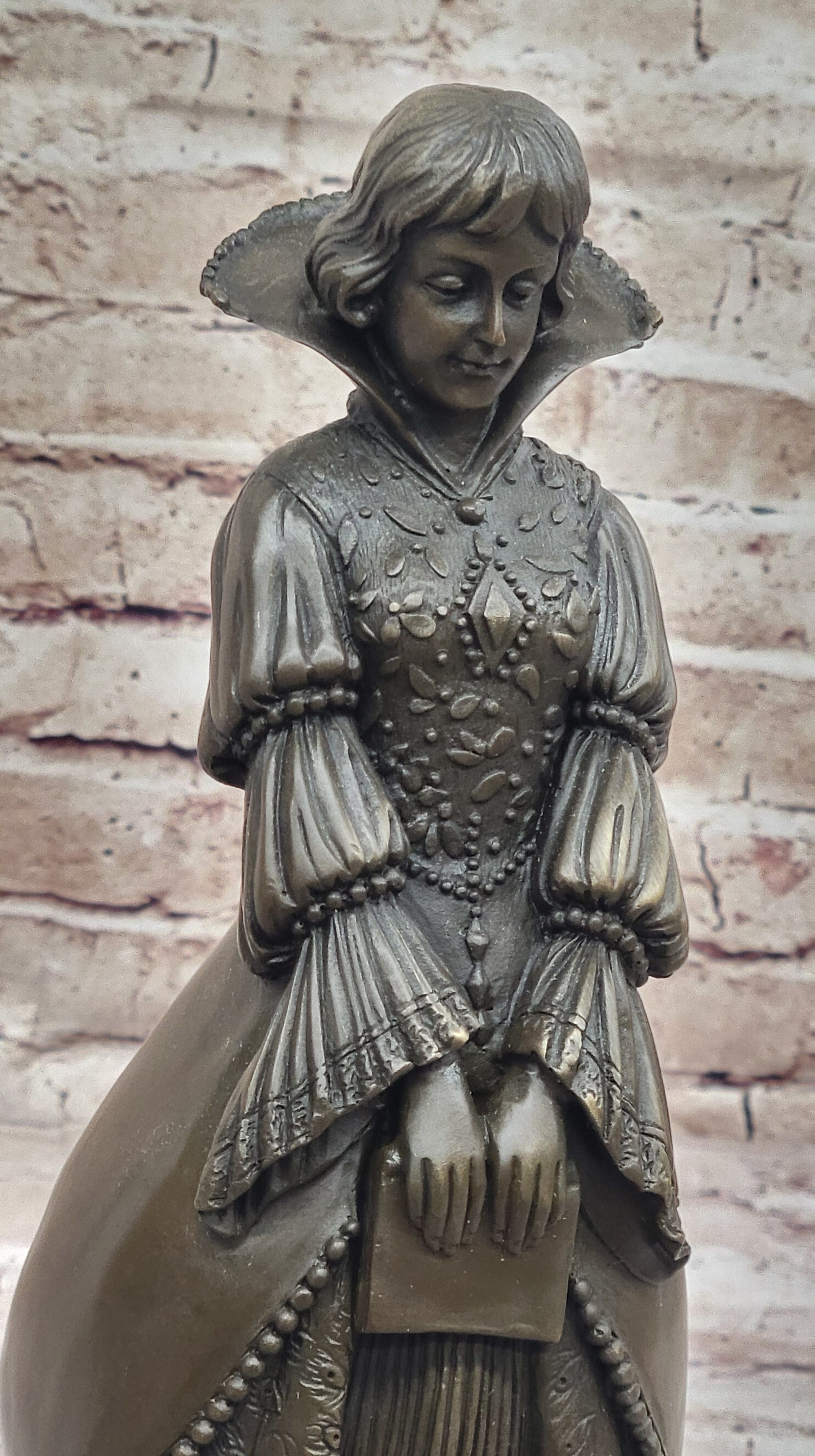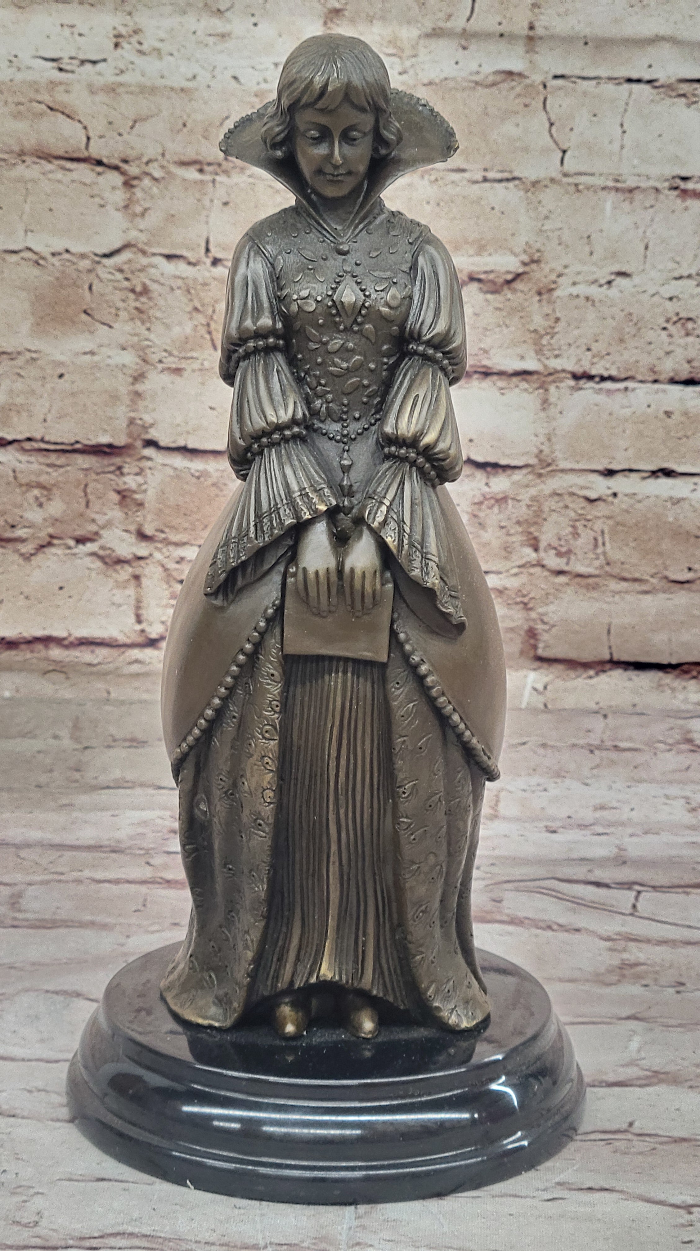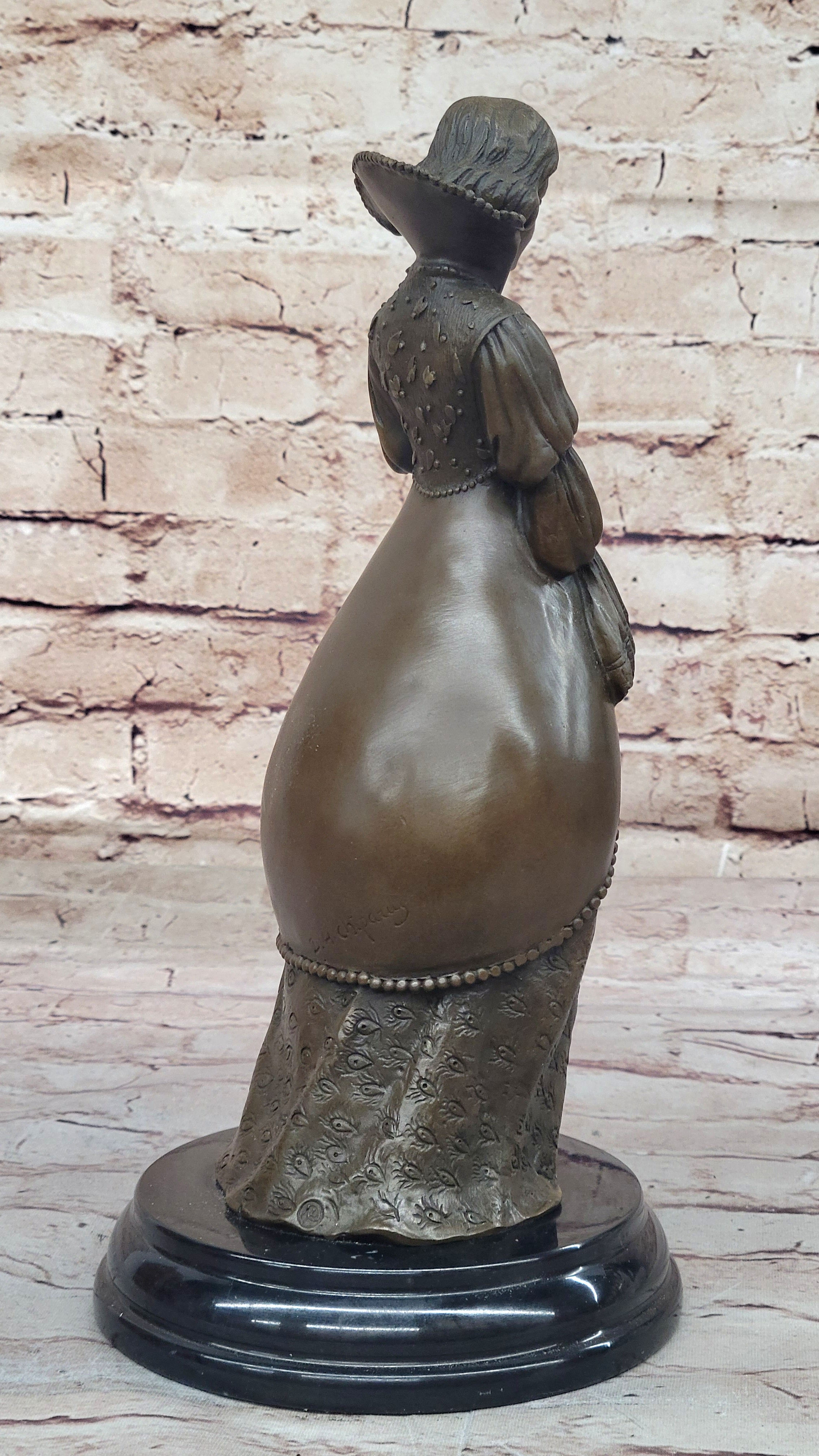 Demure Modest Religious Woman Hot Cast Bronze Sculpture on Marble Base
