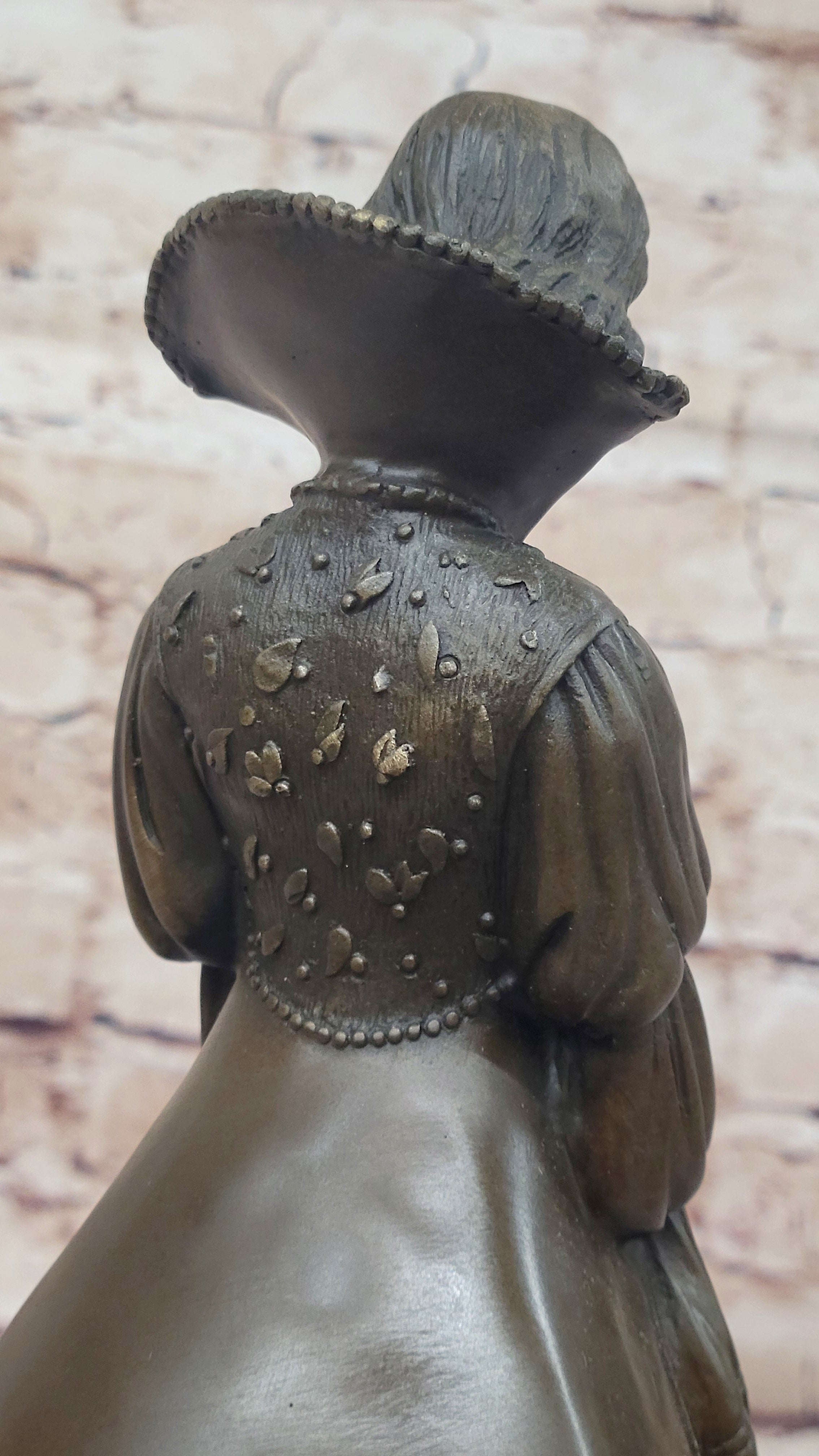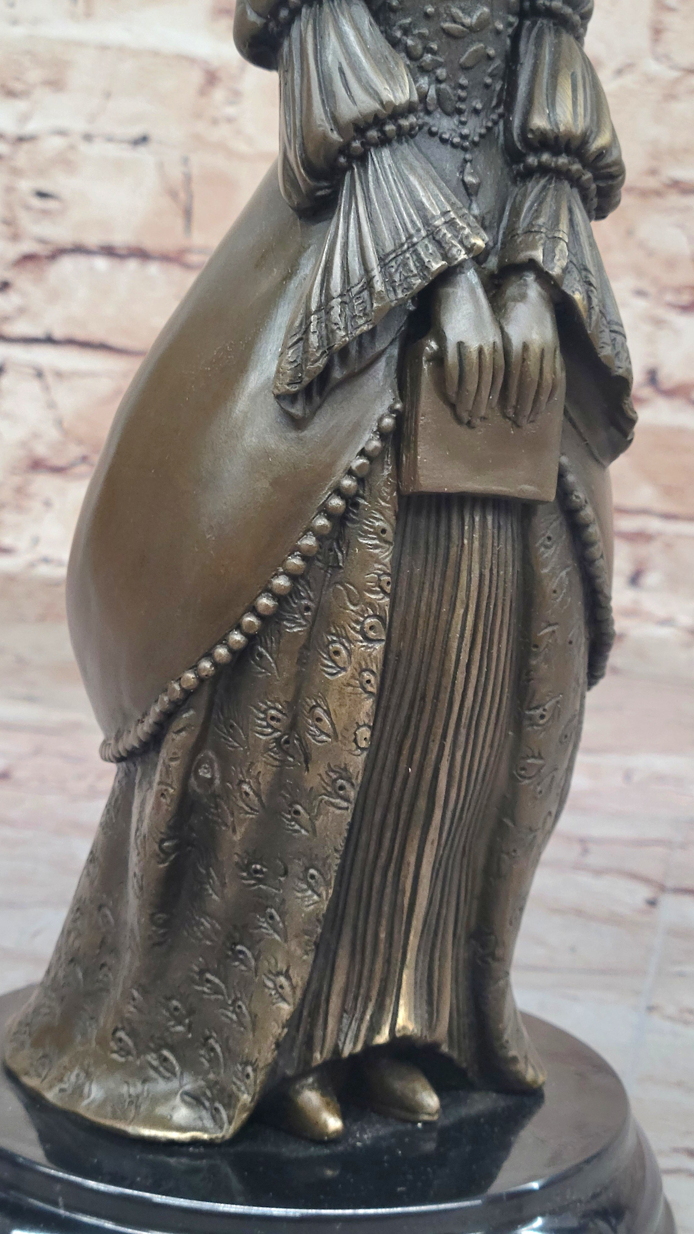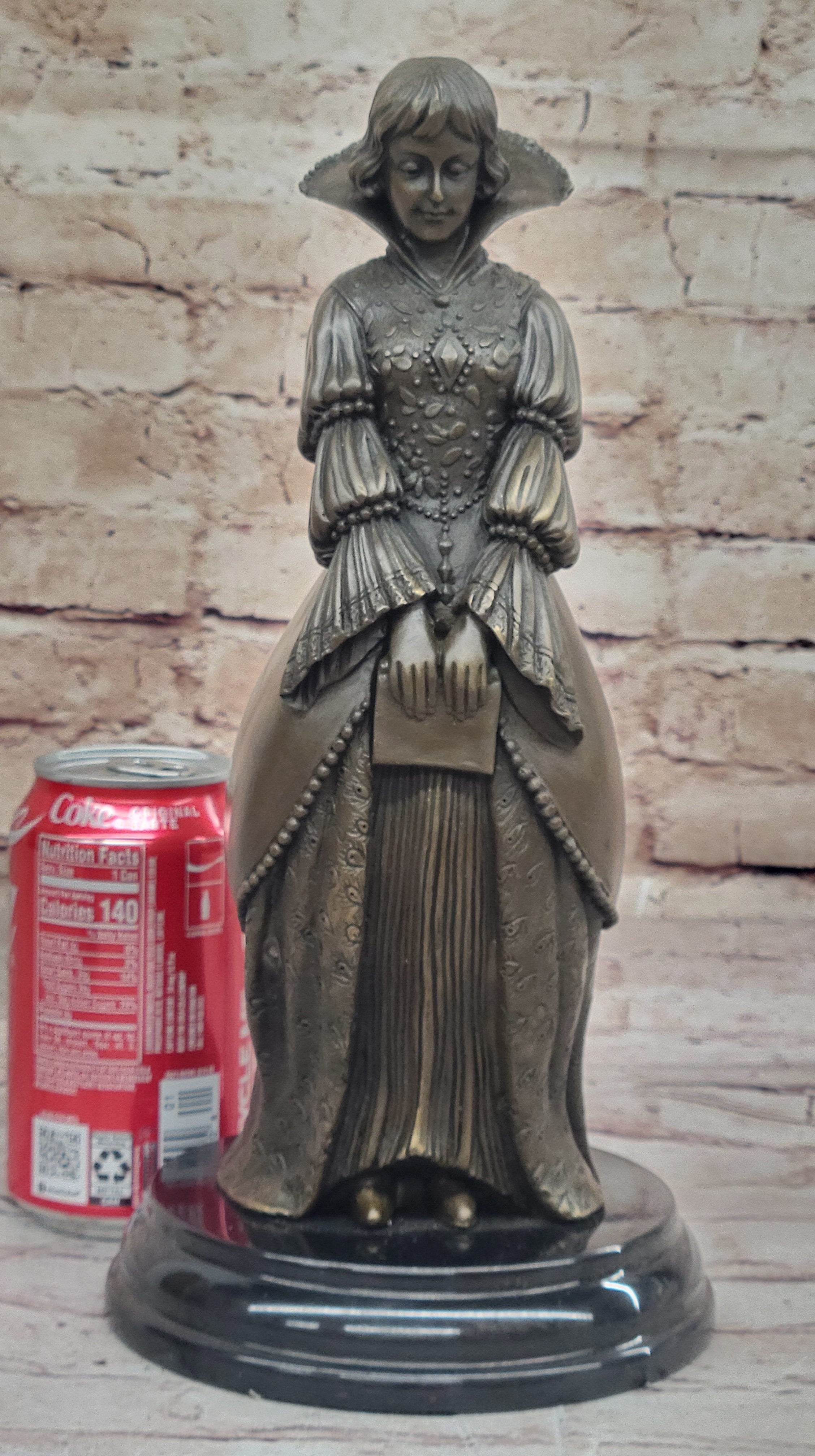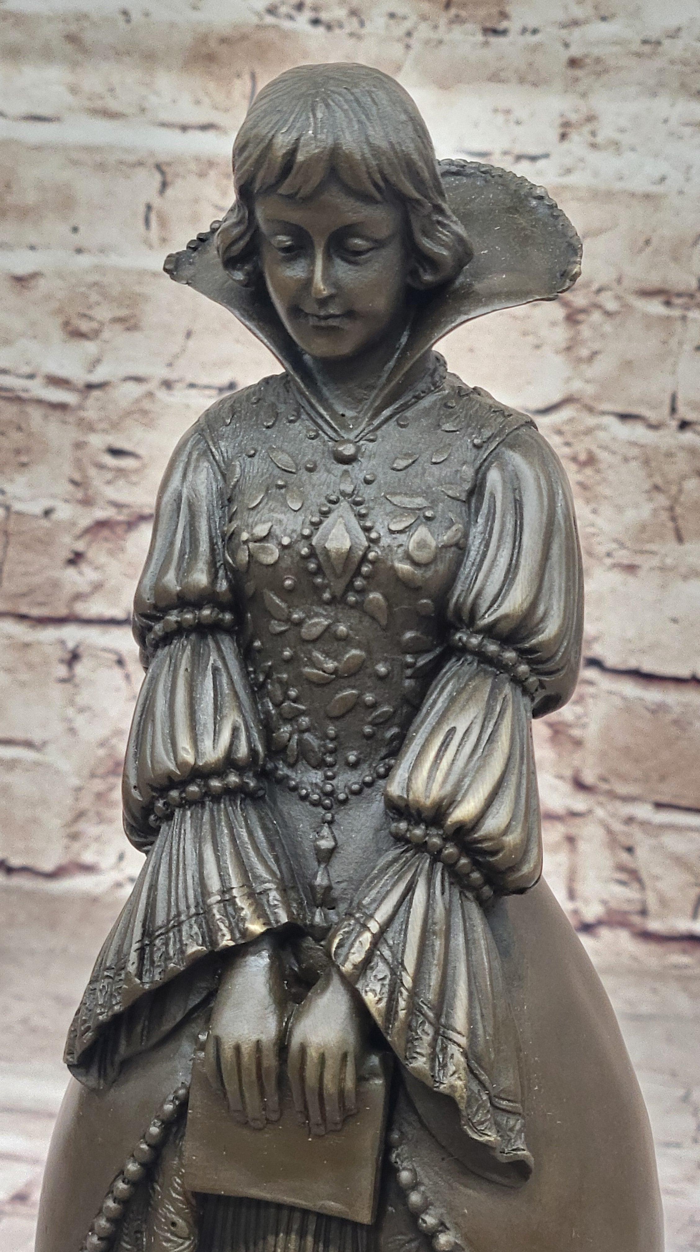 Demure Modest Religious Woman Hot Cast Bronze Sculpture on Marble Base