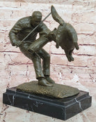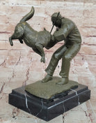 The statue is mounted on a sleek black marble base, offering both contrast and elegance to the earthy bronze, this sculpture is an ideal addition to any collection celebrating animals, training, or fine figurative art.Bronze Dimensions with Marble Base: Height 9.5" X Width 8.5"