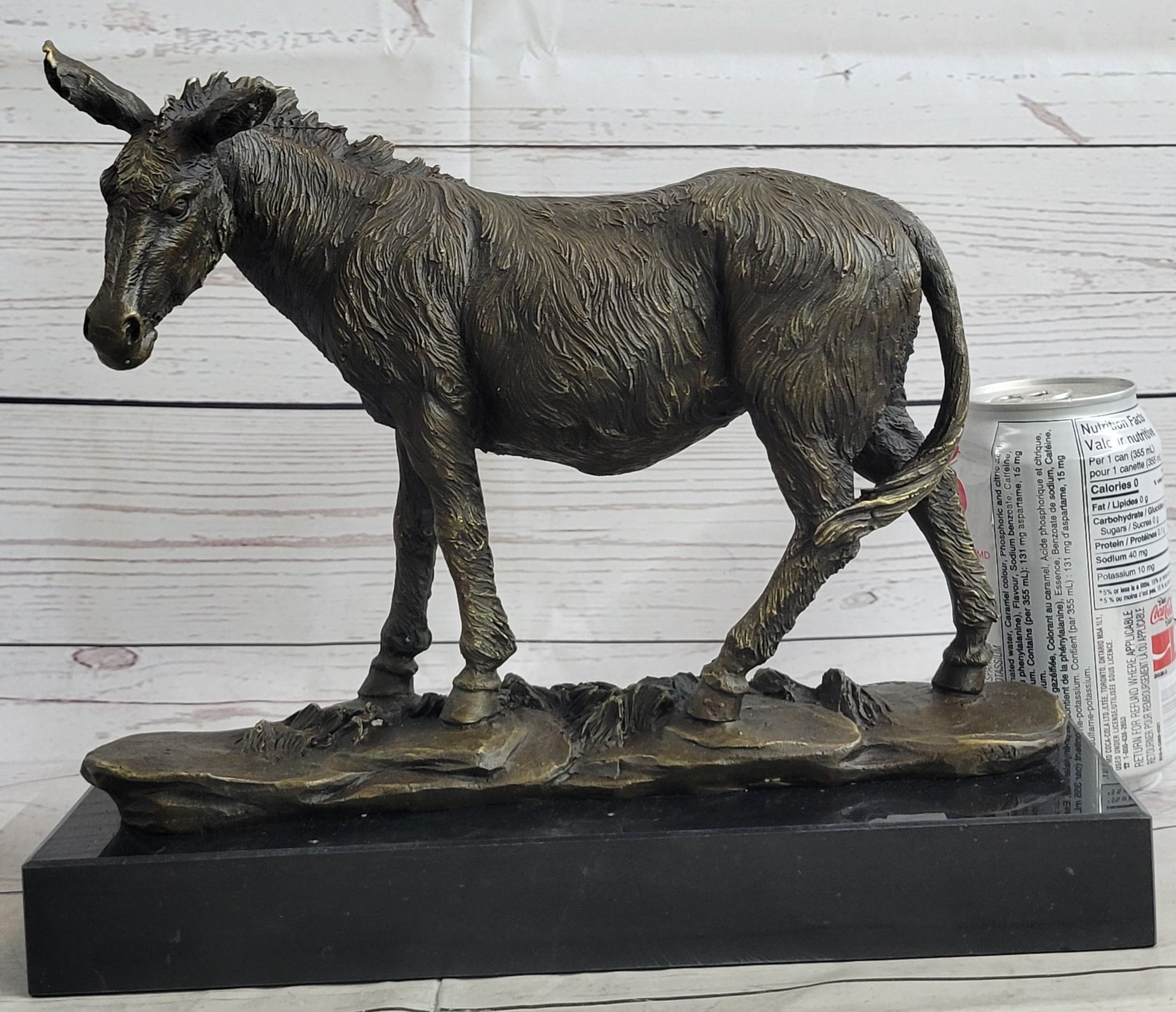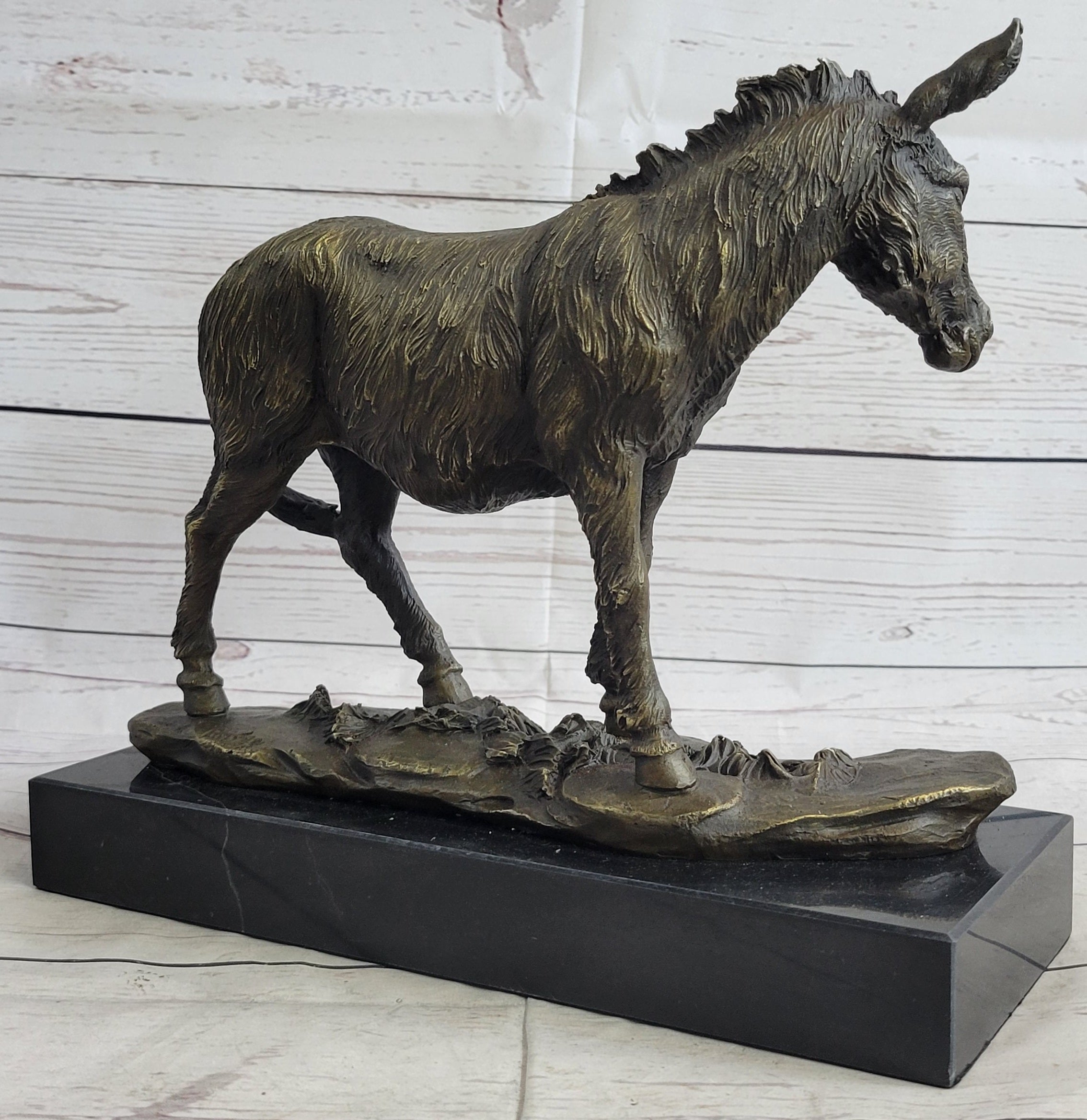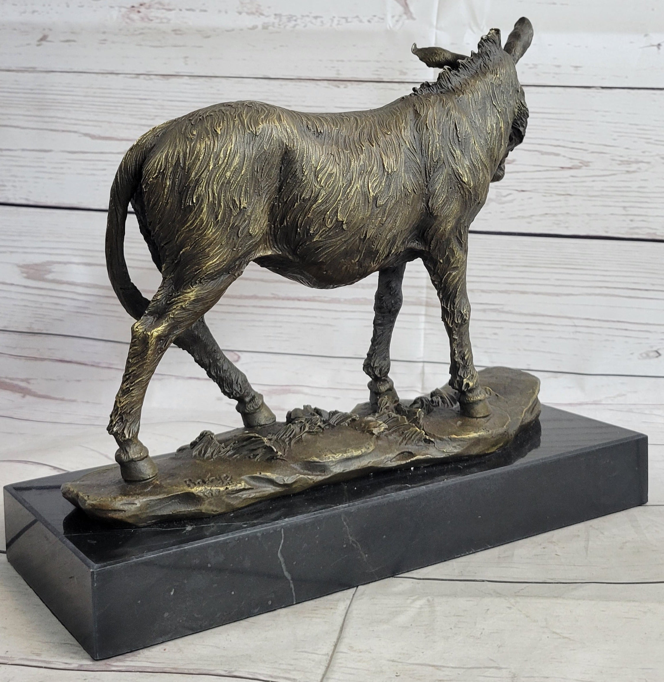 Donkey Mule Ass Bronze Statue Sculpture Figure on Marble Base Signed Barye