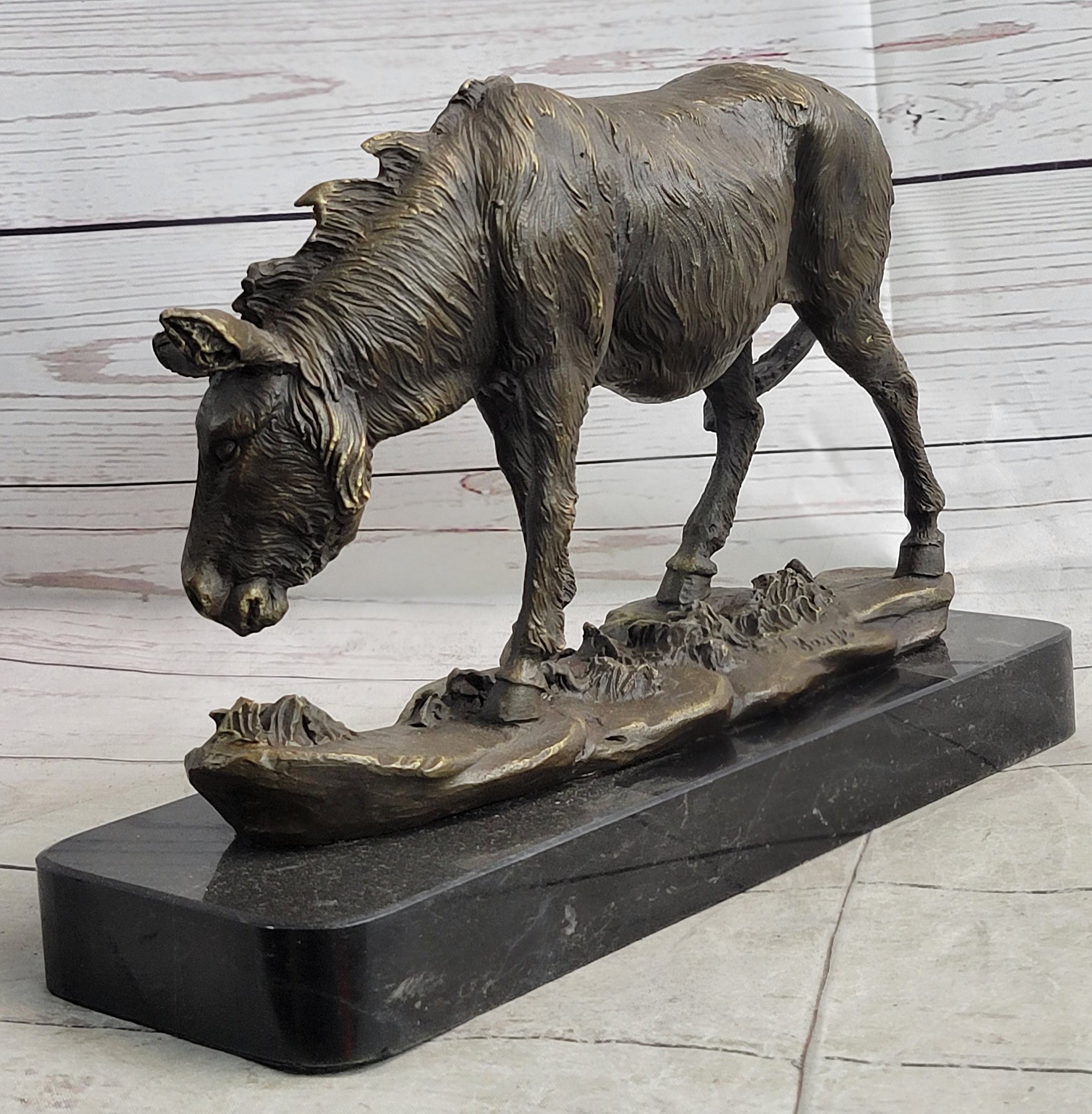 Donkey Mule Bronze Statue Sculpture Handmade Art Figure by Barye on Marble Base
