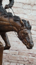 Crafted with precision and skill, the sculpture employs the time-honored "Lost Wax Method," a technique renowned for preserving intricate details and nuances in bronze art. The result is a stunning two-tone brown patina that enhances the aesthetic appeal, adding depth and warmth to the sculpture. The choice of a black marble base not only provides stability but also complements the overall composition, allowing the artwork to stand out while maintaining a harmonious balance with its surroundings. This carefully considered presentation elevates the sculpture's visual impact, making it a standout piece in any collection.