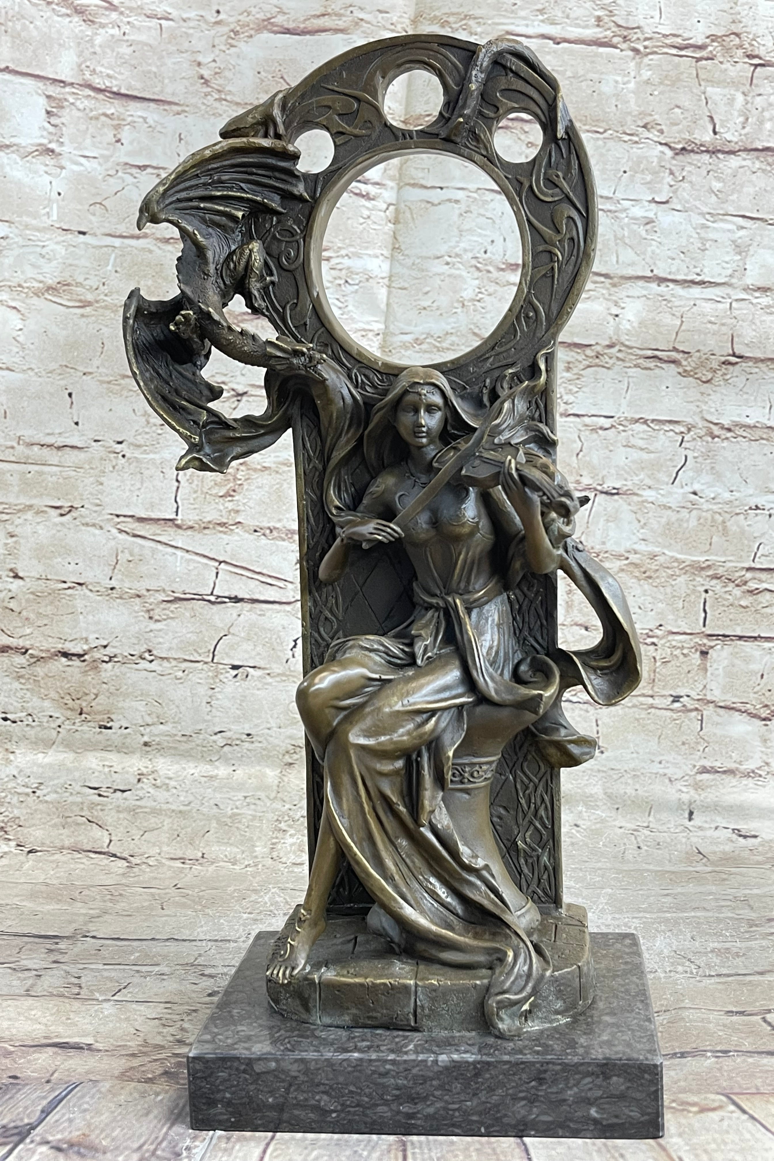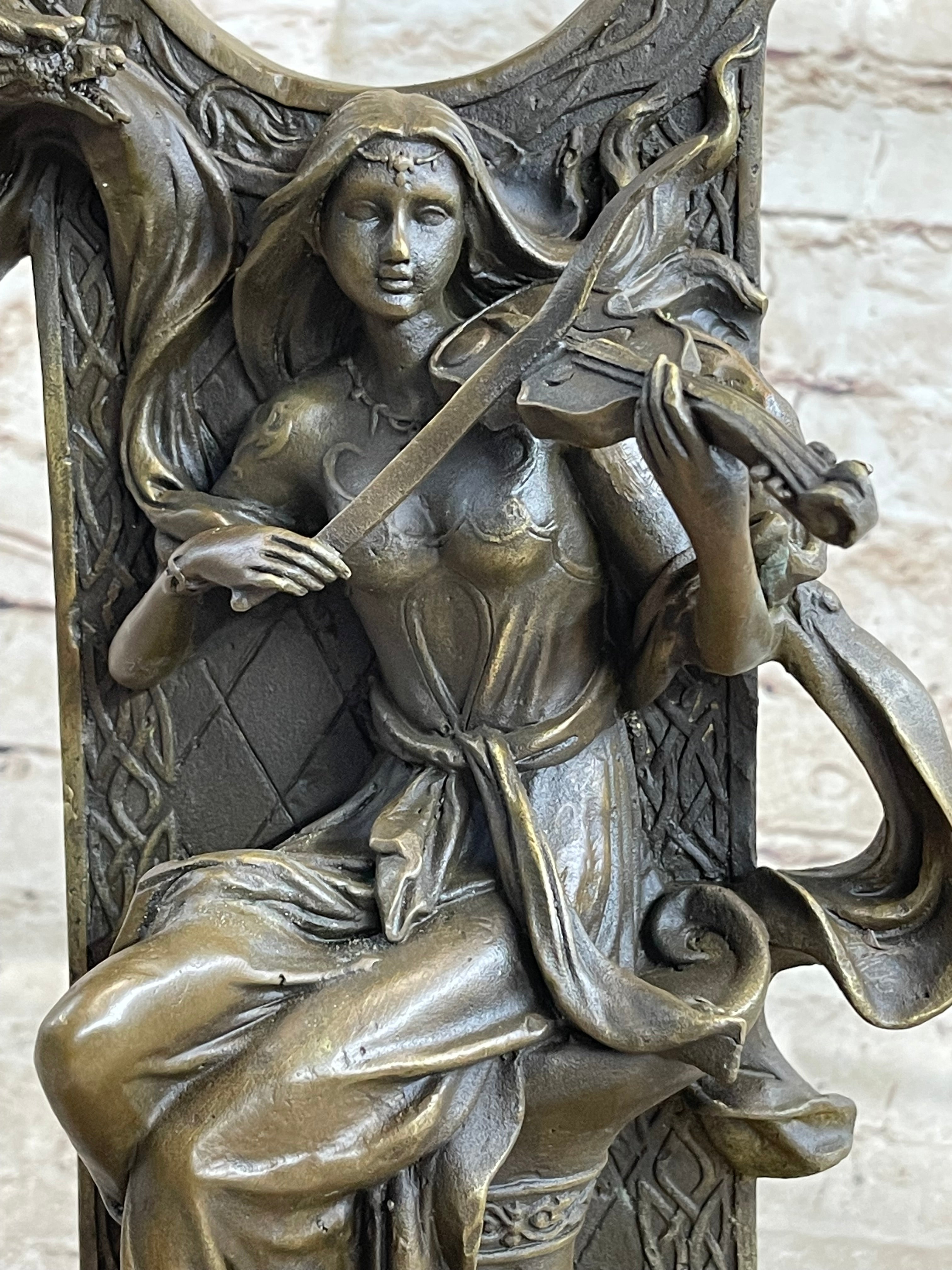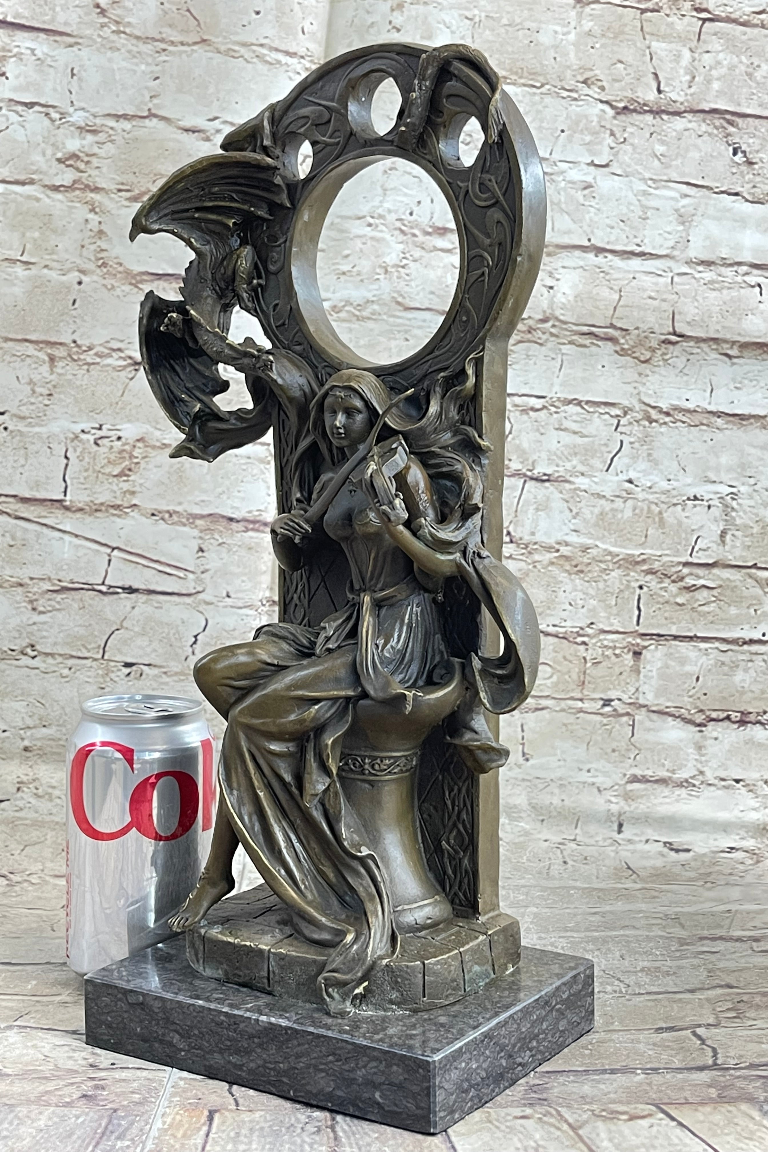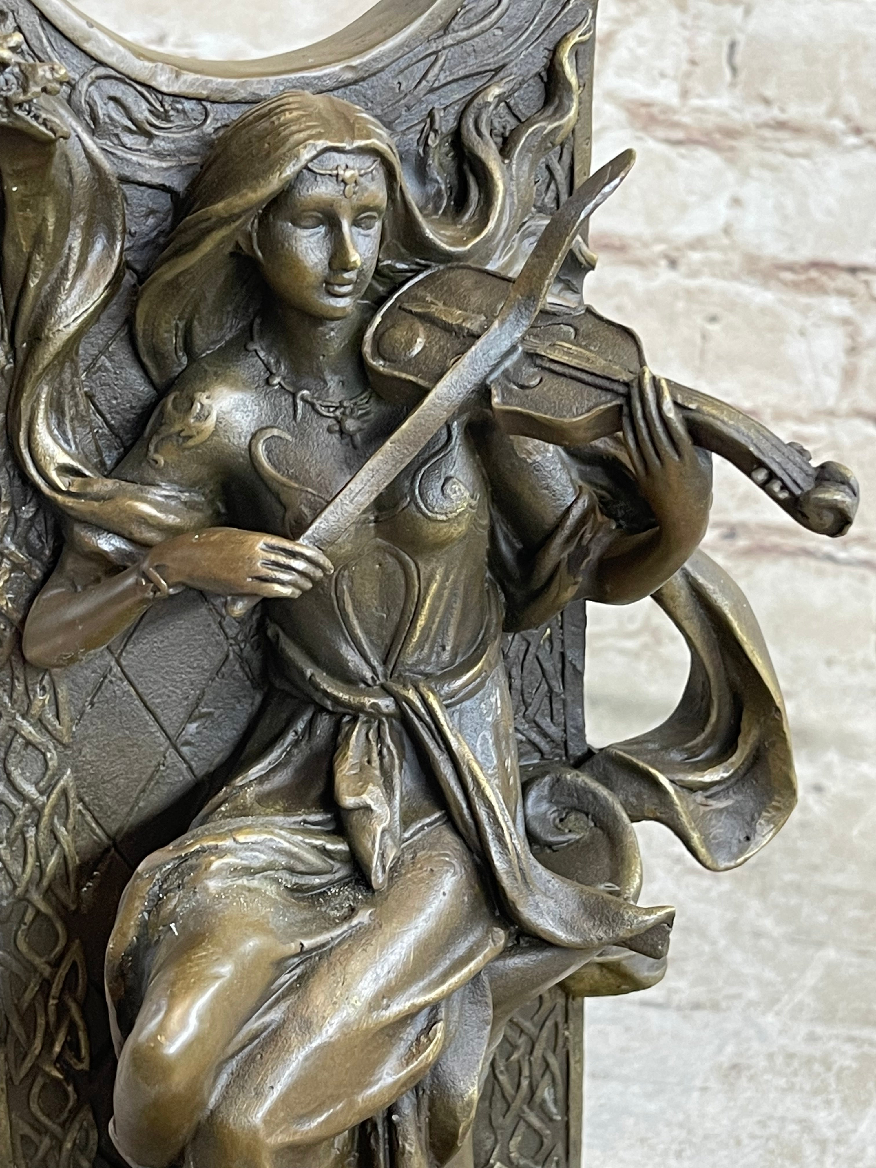 Dragon Girl Playing Violin - Bronze Sculpture Statue Fantasy Art