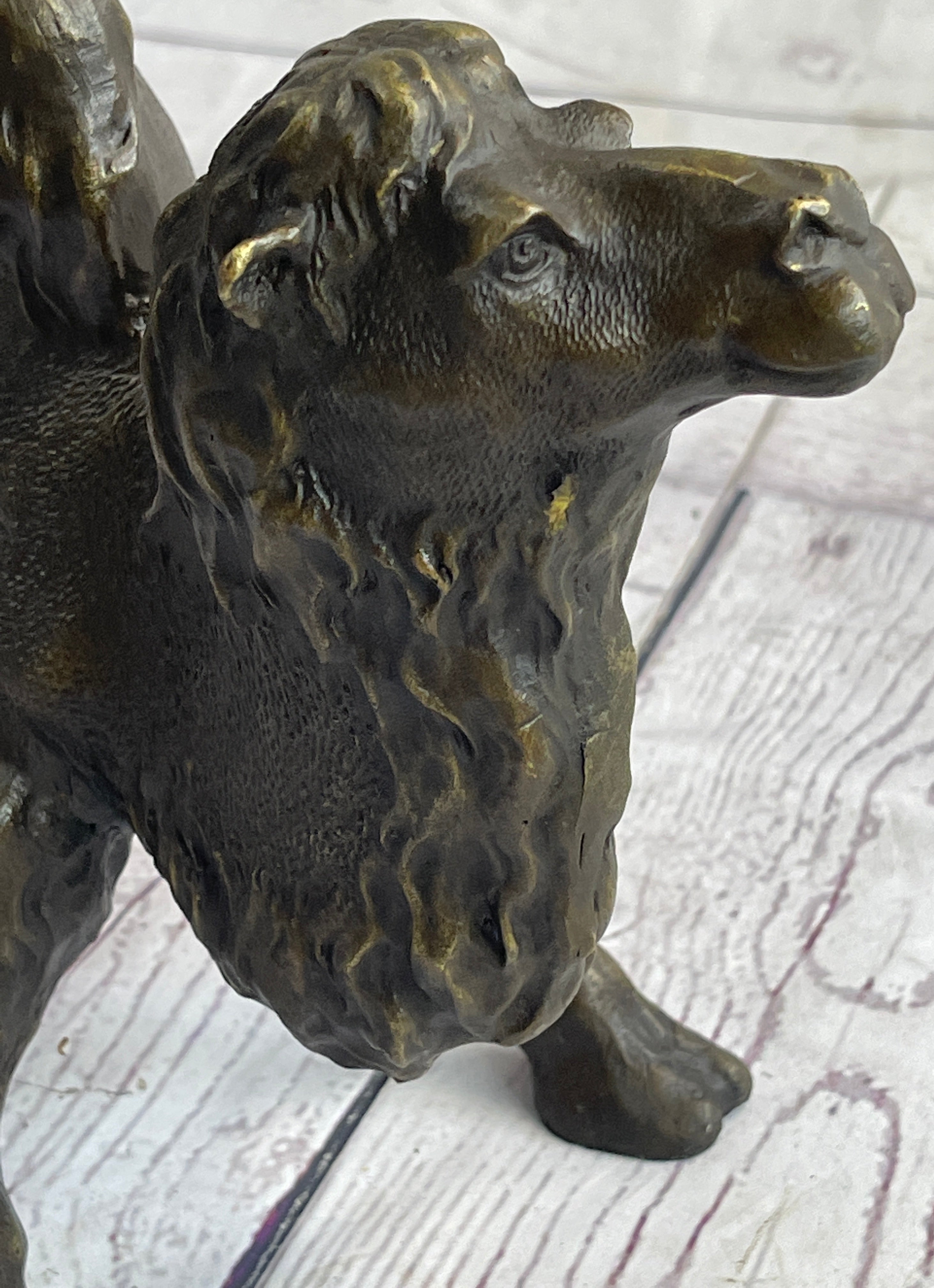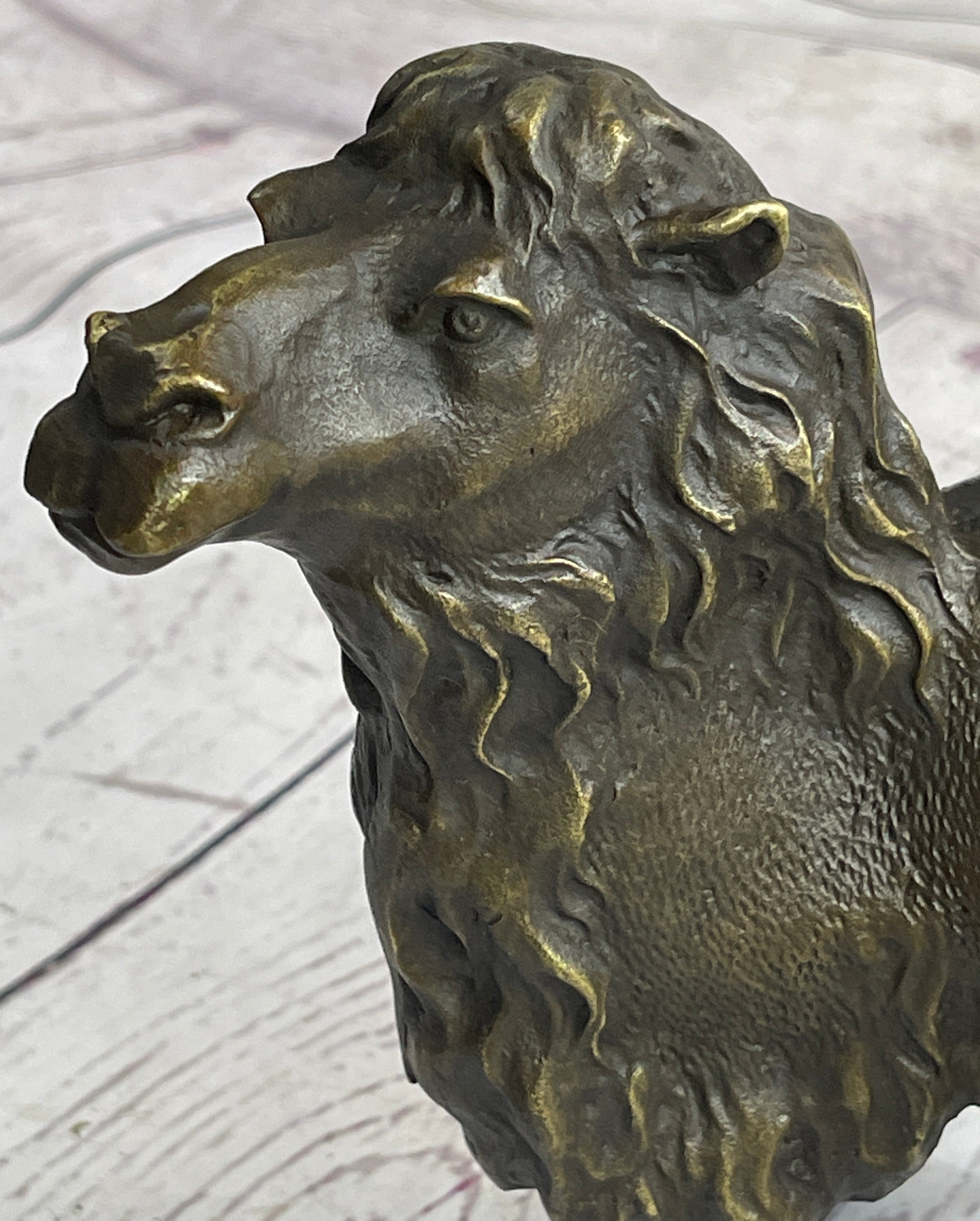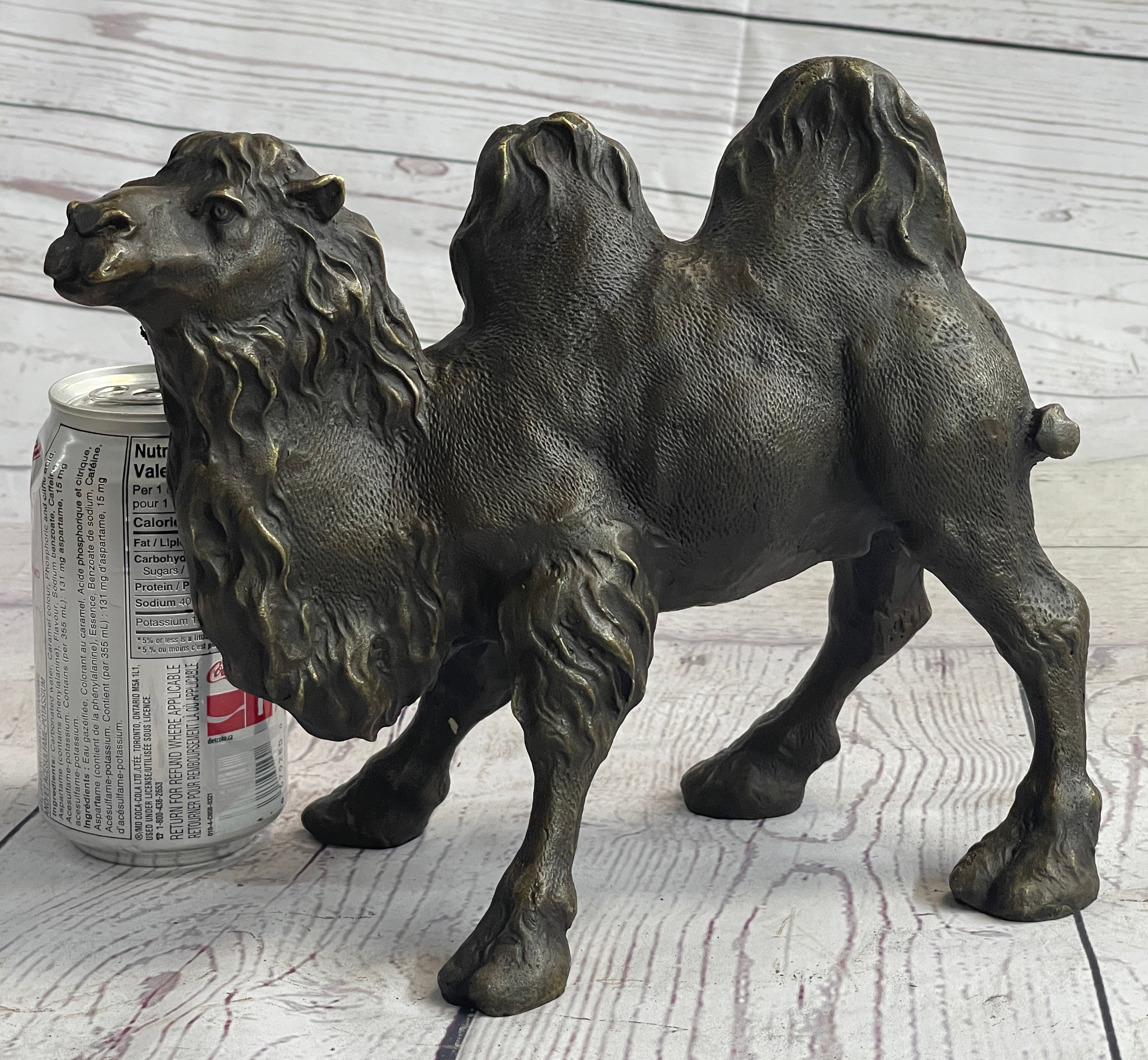 Presenting the striking "Standing Camel" sculpture, a captivating representation of the regal desert dweller. Crafted with meticulous attention to detail, this solid bronze casting by European Bronze Finery stands as a testament to both artistry and nature. The sculpture portrays the camel's commanding presence with remarkable accuracy, capturing its inherent grace and strength in every curve and contour.
