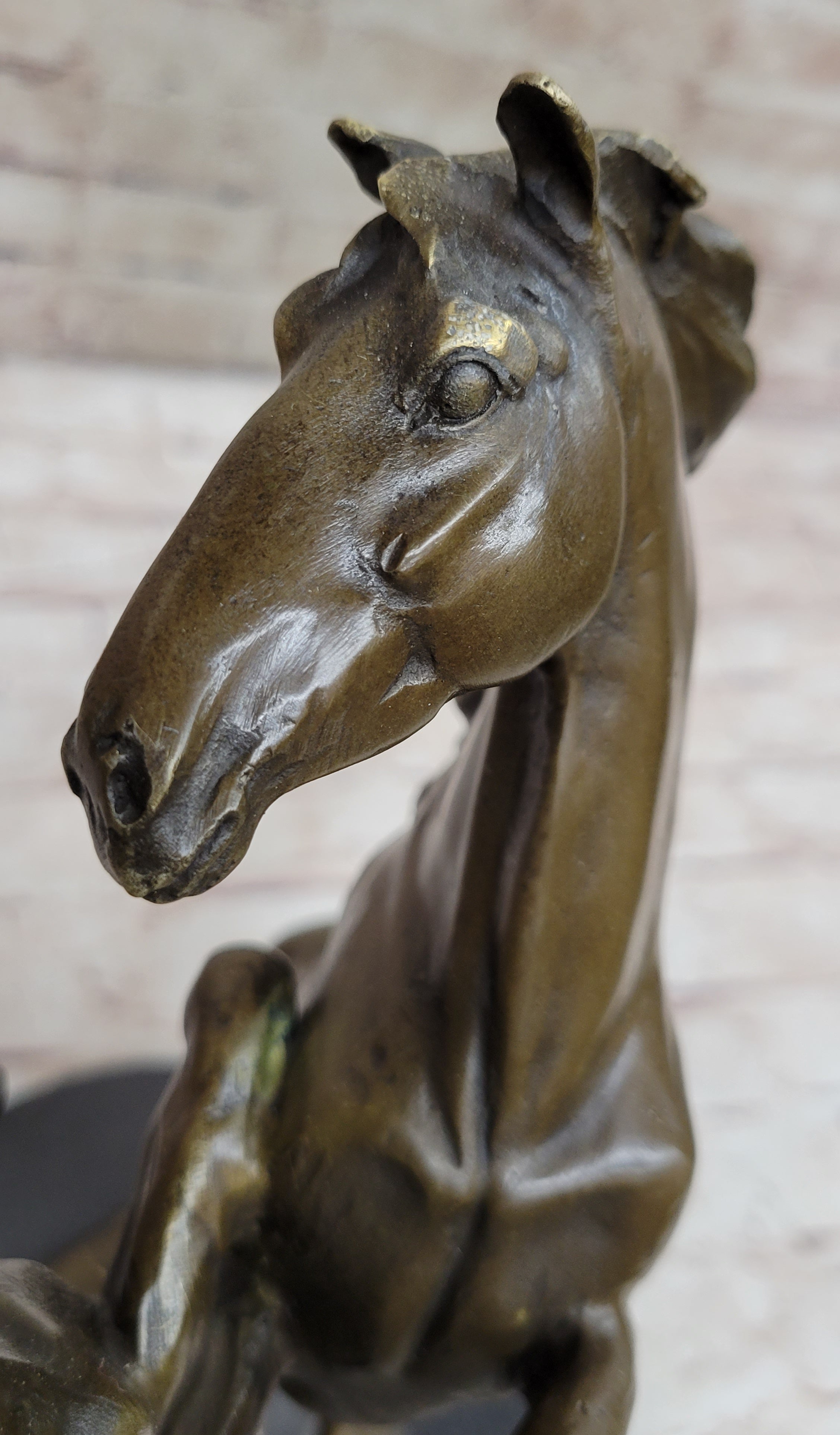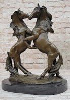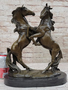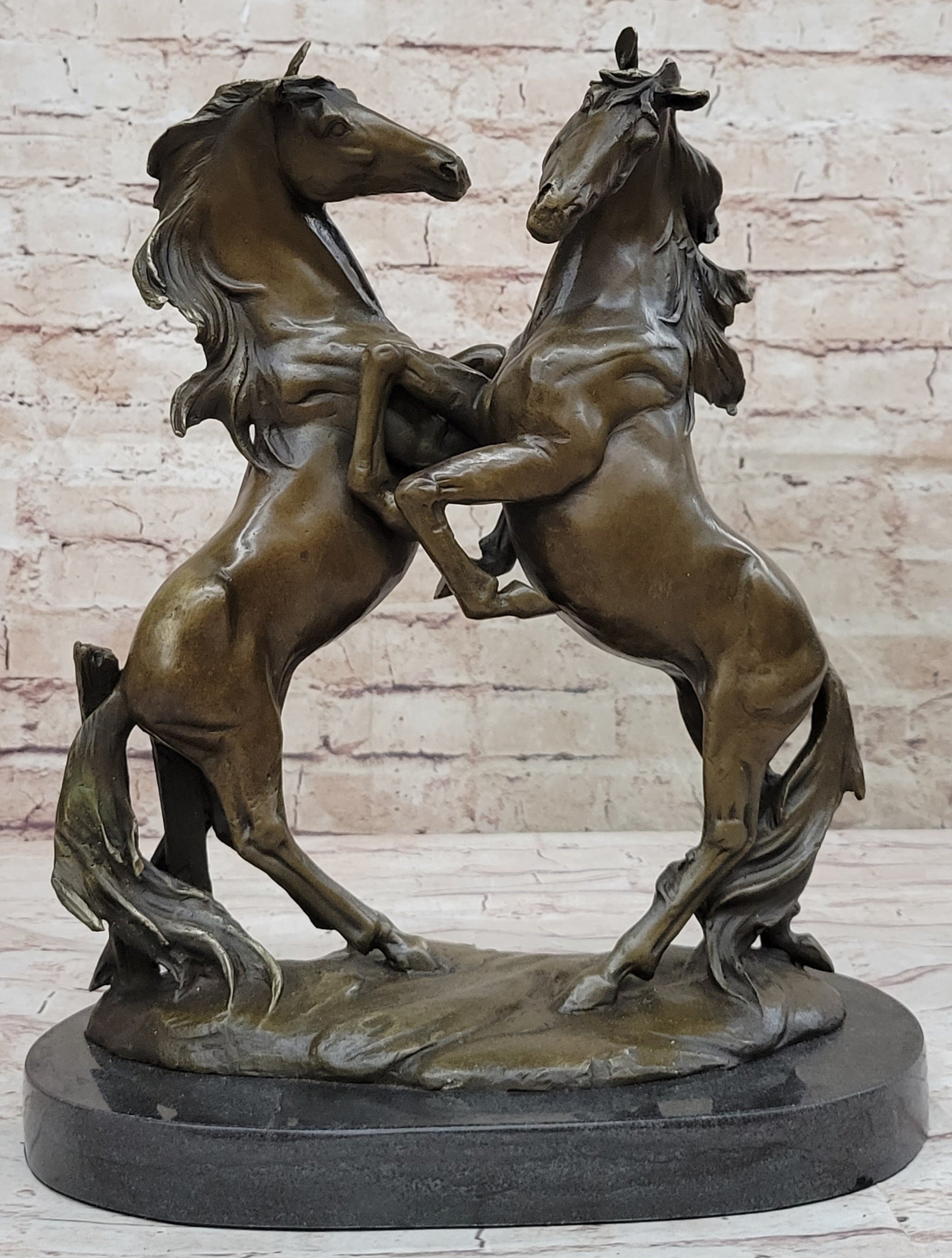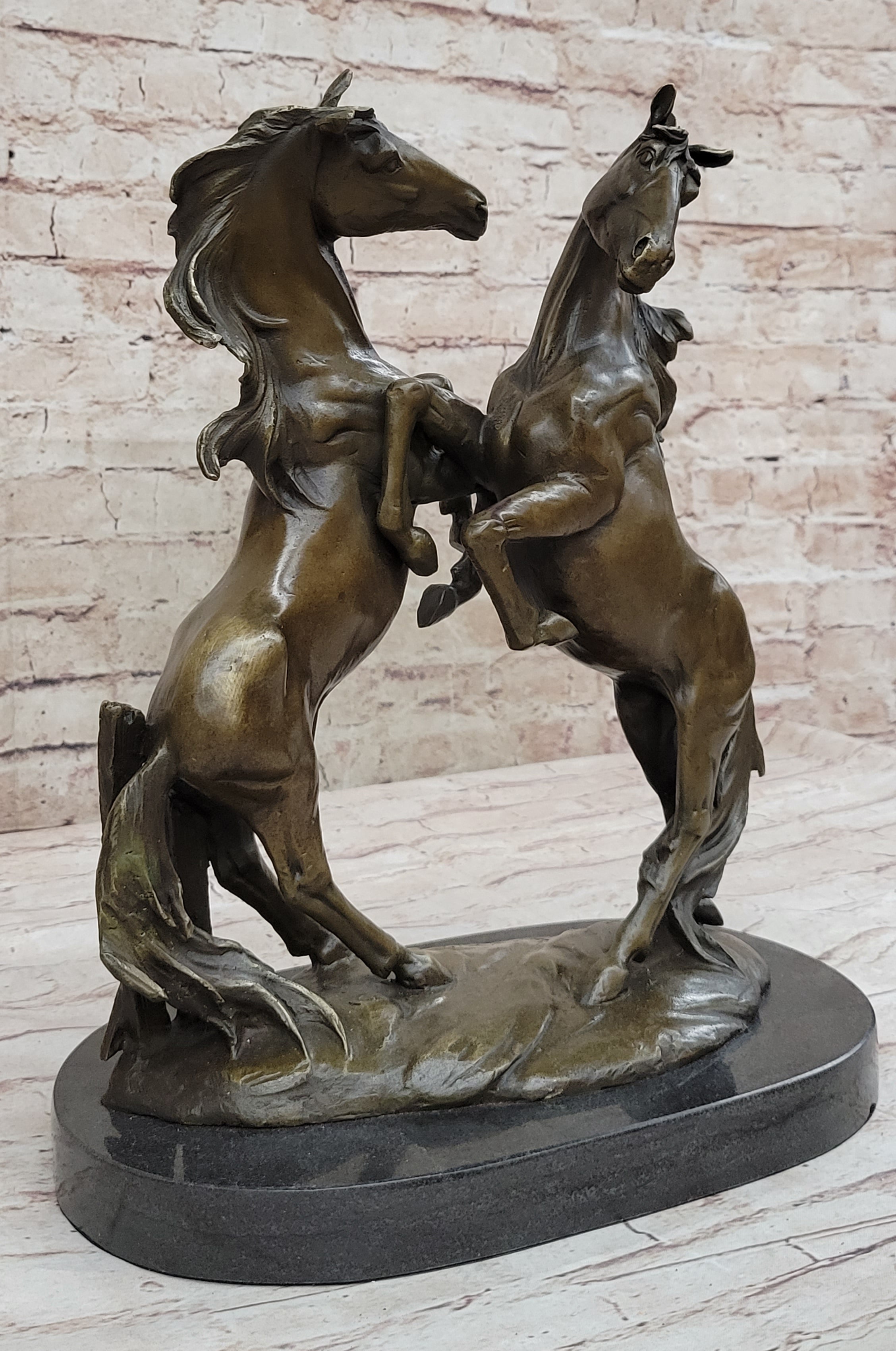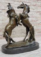 Dueling Stallion Horses Hot Cast Bronze Sculpture Statue Decor Original Art on Marble Base