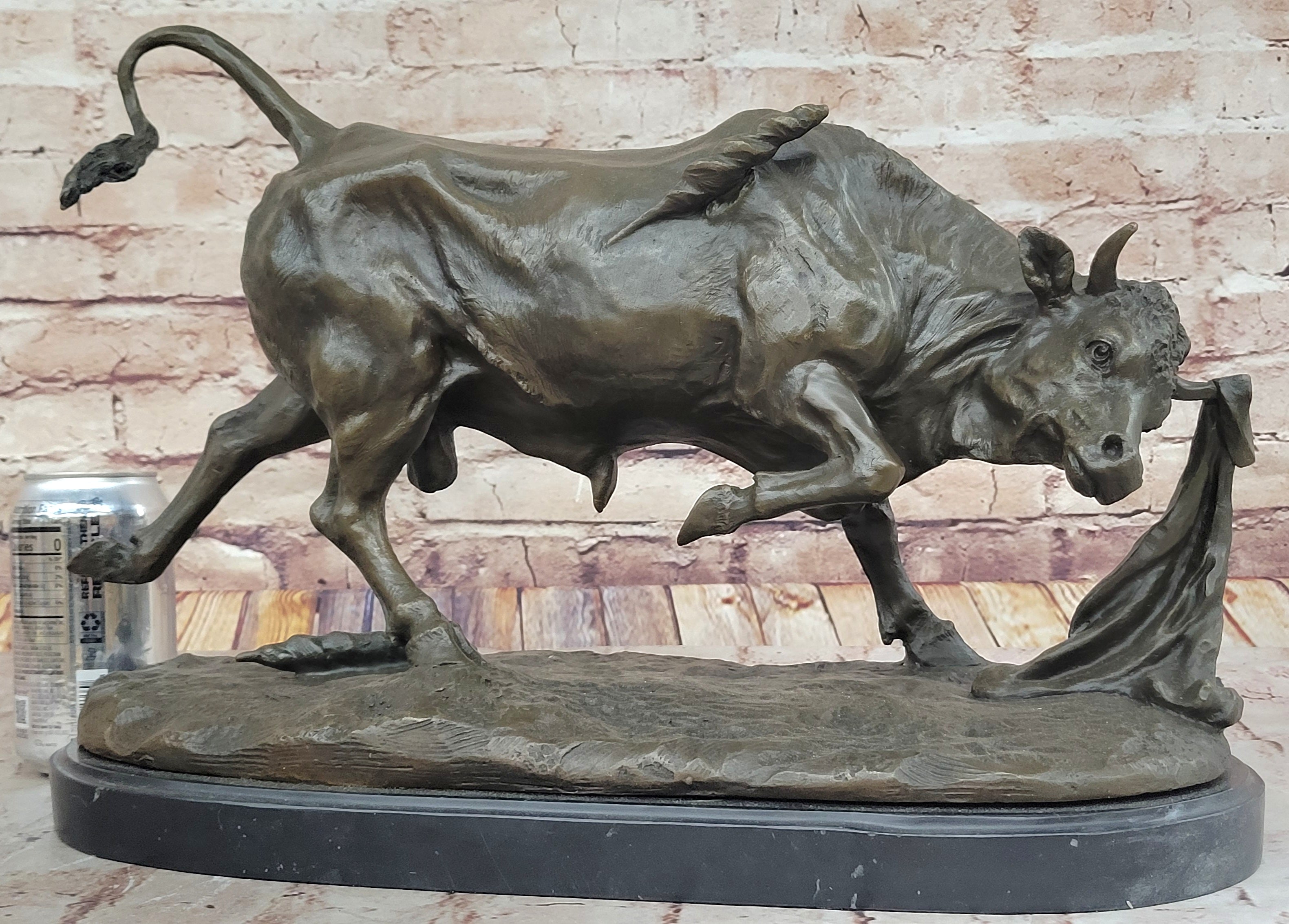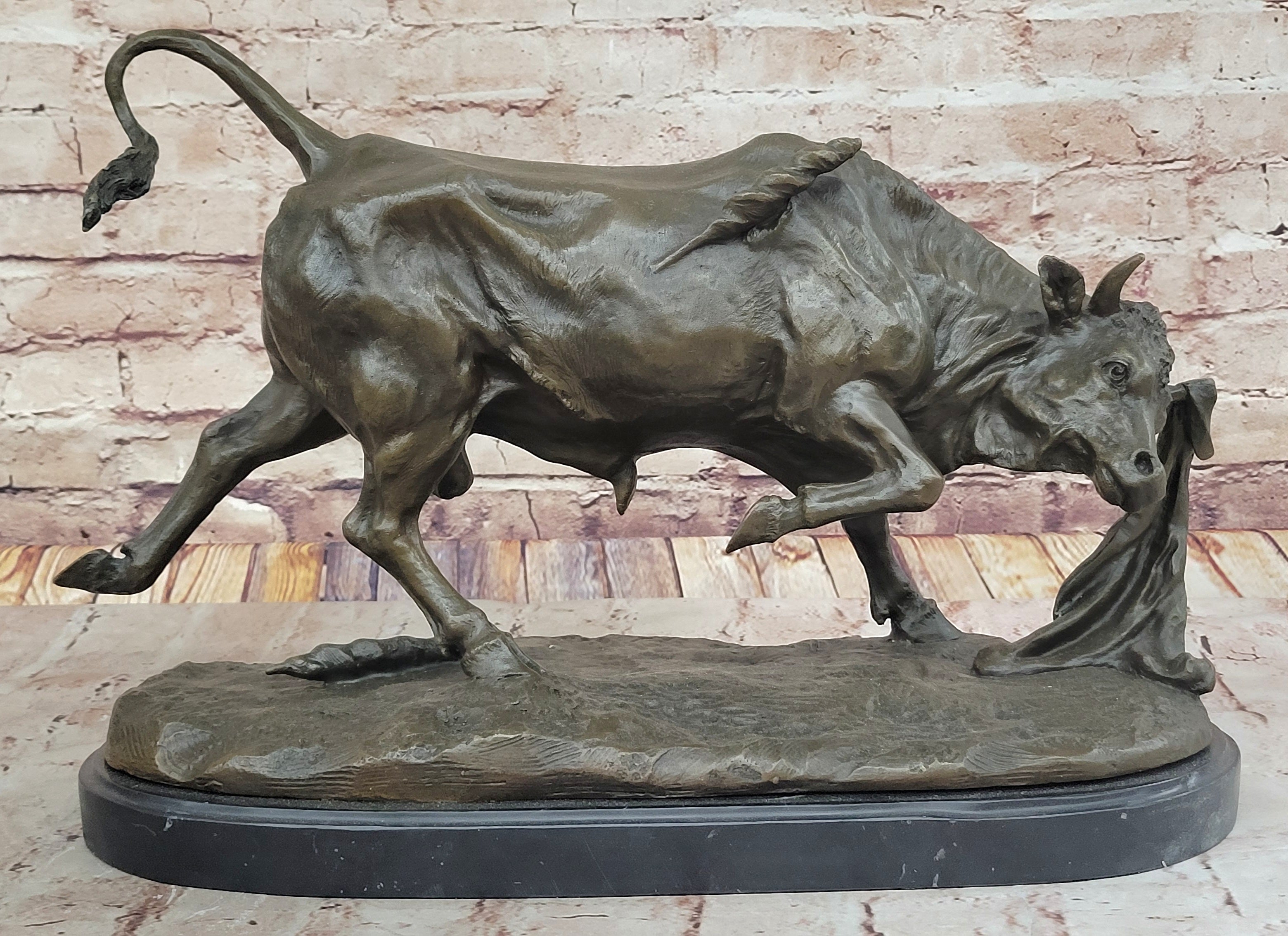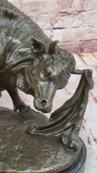 Dynamic Bronze Bull Sculpture by Comeolera – Charging Bull with Cape on Oval Base