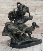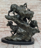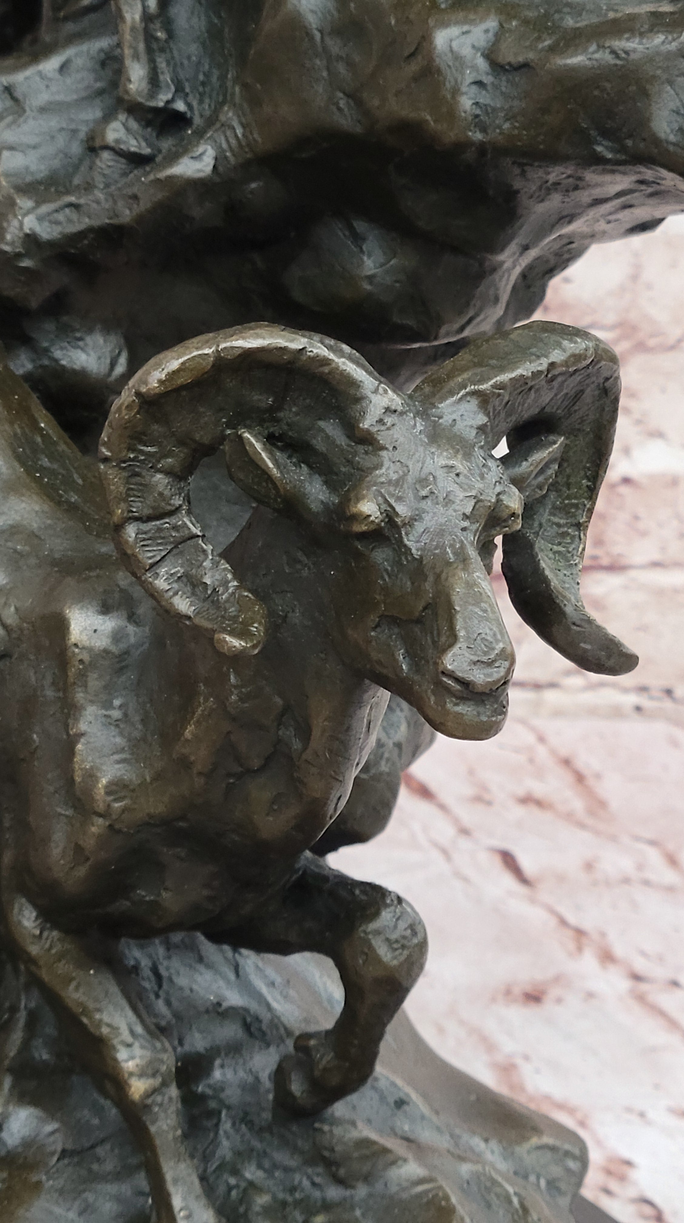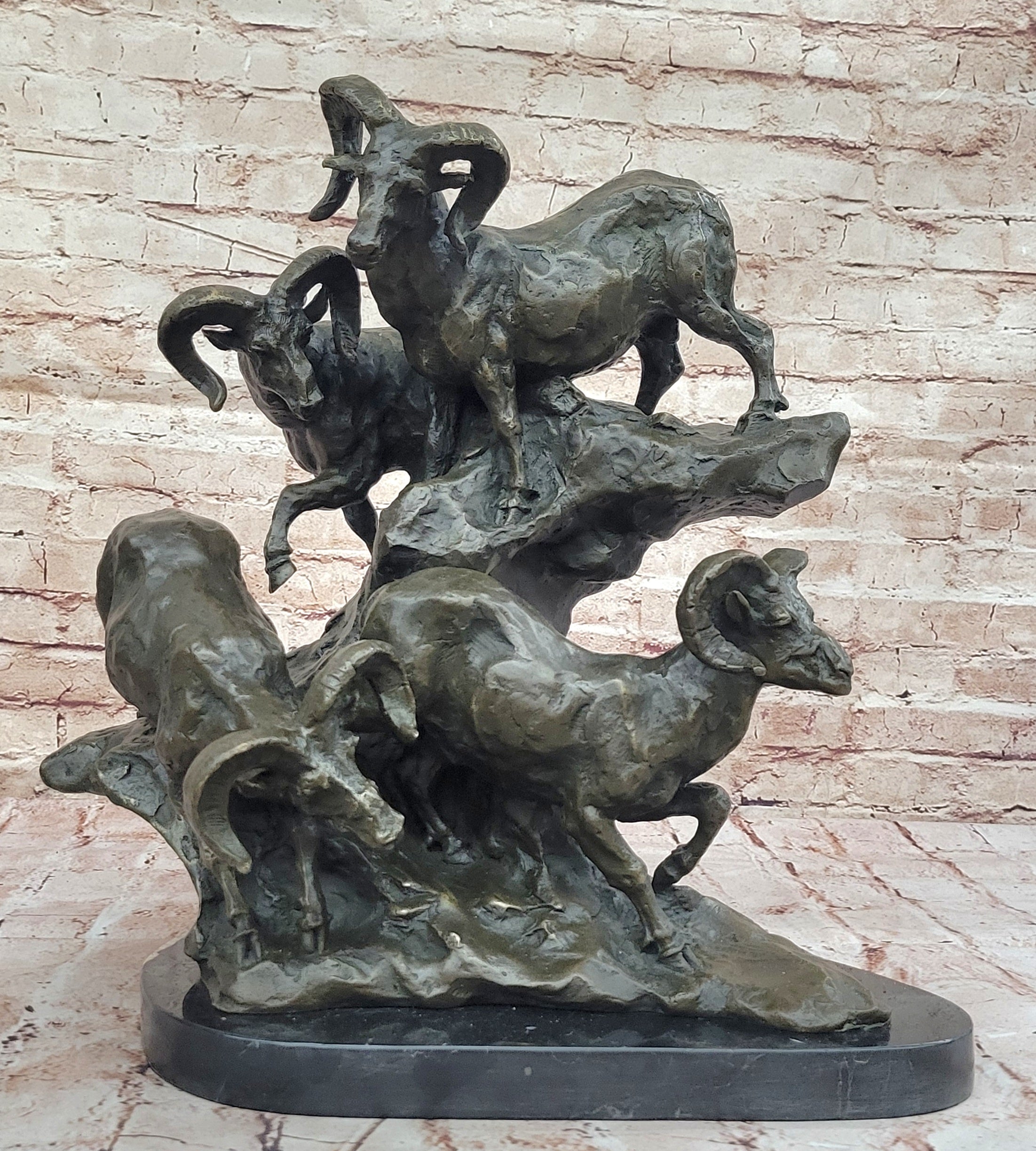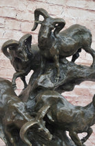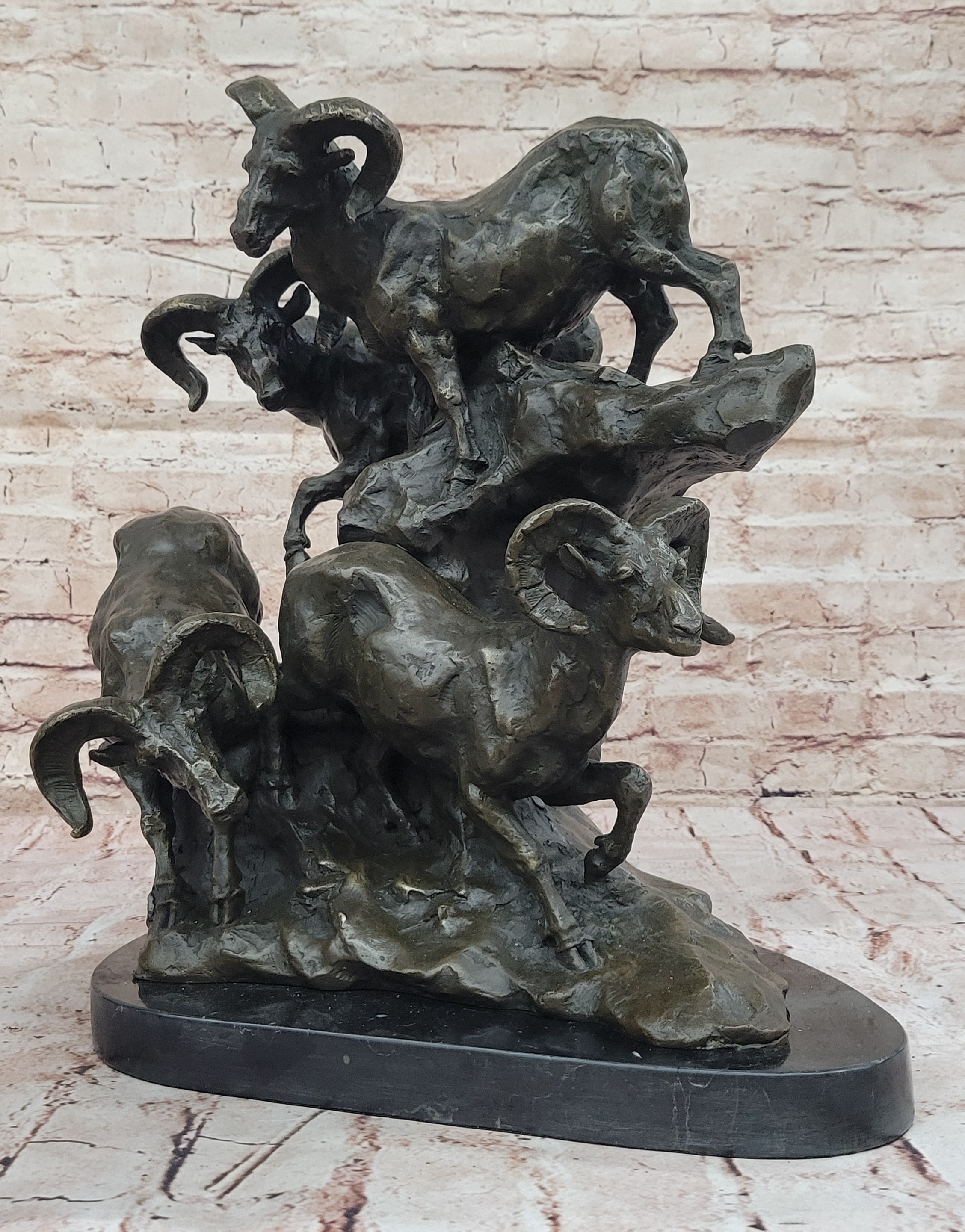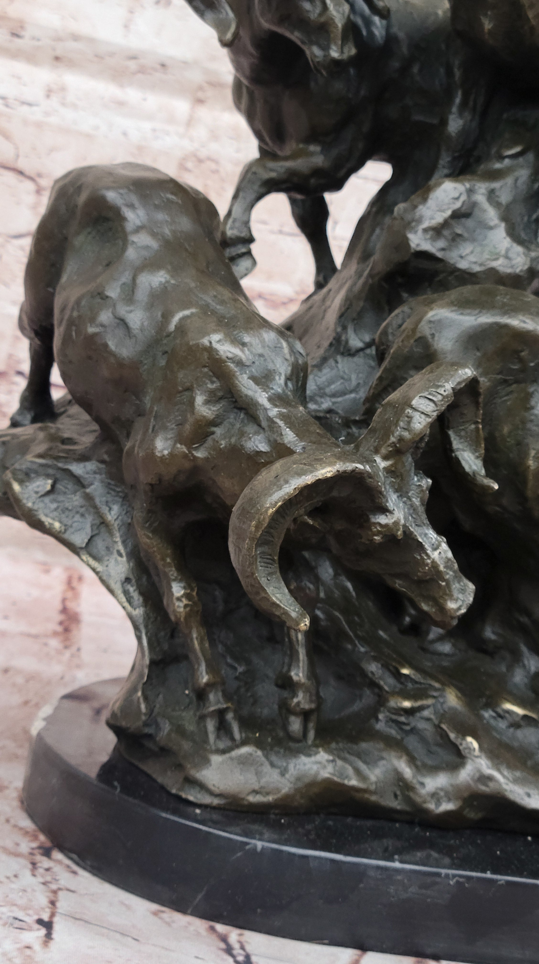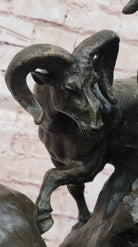 Dynamic Bronze Sculpture of Rams on Rocky Outcrop – Wildlife Scene on Marble Base