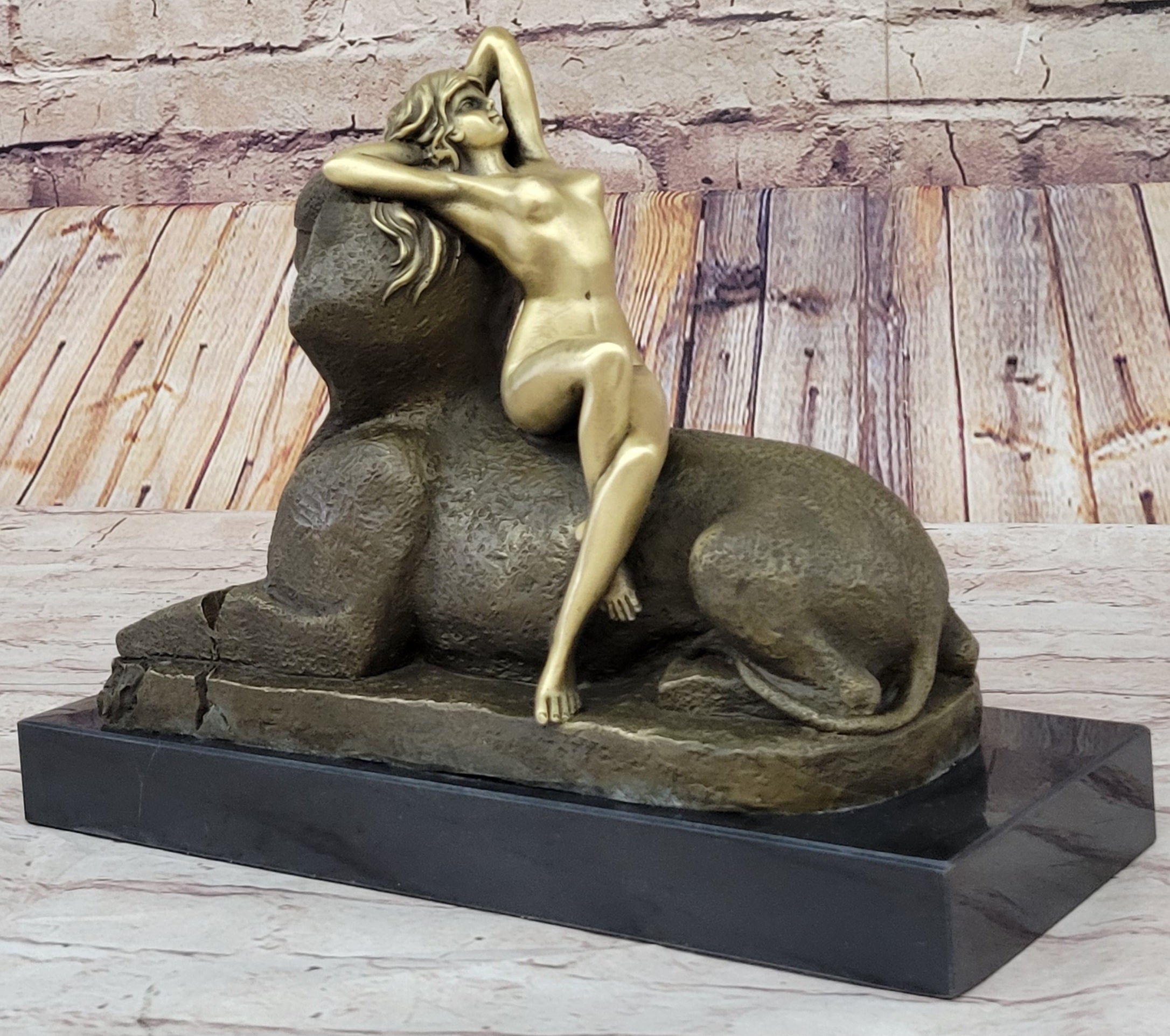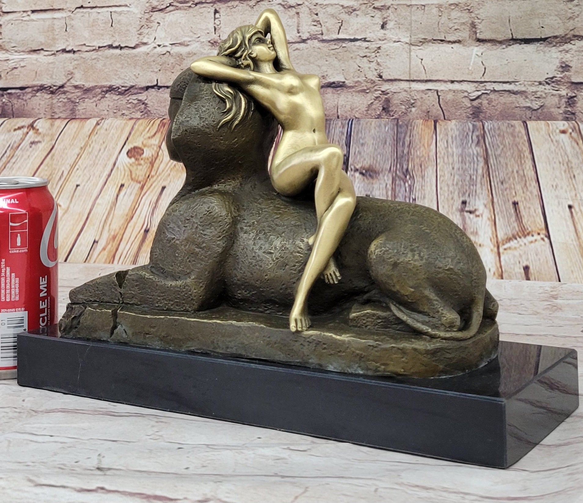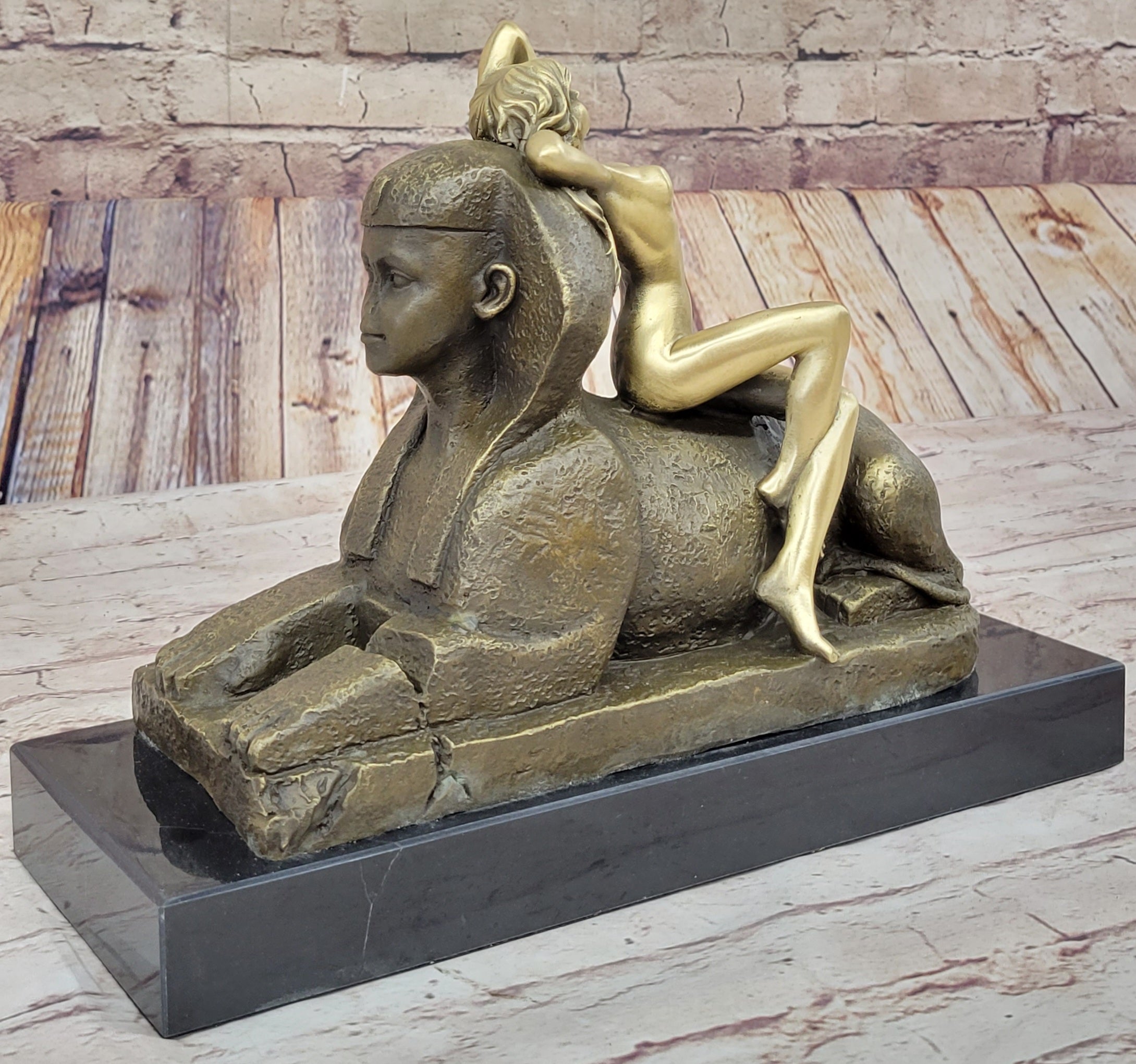 The artist has rendered every detail with meticulous care, ensuring that the curves, expressions, and textures are captured with refined precision. The figure's relaxed posture and serene expression invite viewers to linger on the interplay of form and meaning, while the sphinx provides an intriguing counterpoint that deepens the work’s narrative. Such intricacies make this sculpture especially desirable among collectors who appreciate art imbued with historical resonance and delicate craftsmanship.