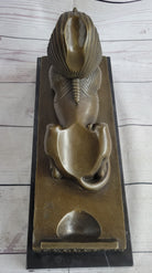 Egyptian Sphinx Bronze Sculpture Statue Miniature Replica Handmade Signed Milo 8" x 13"