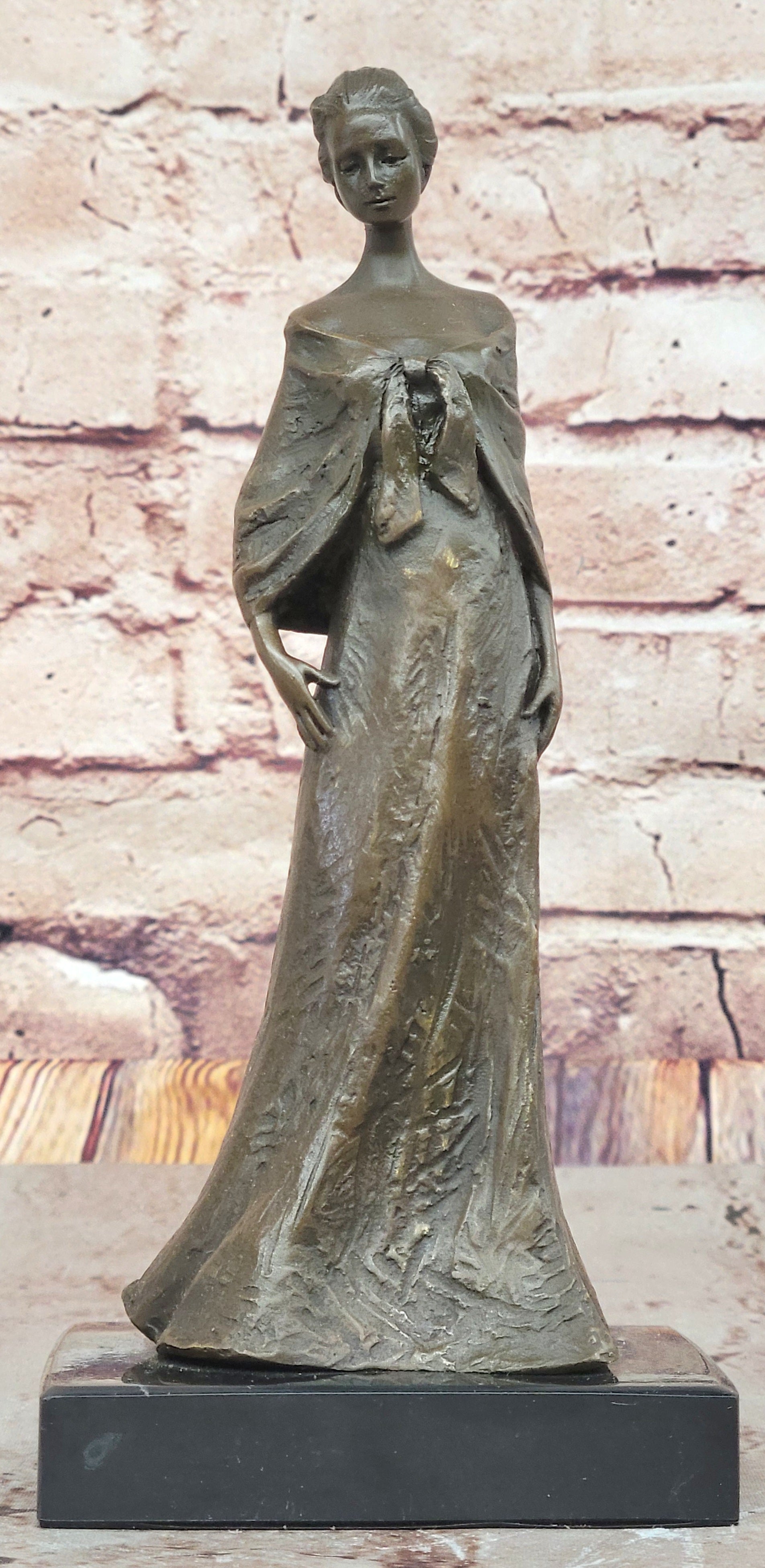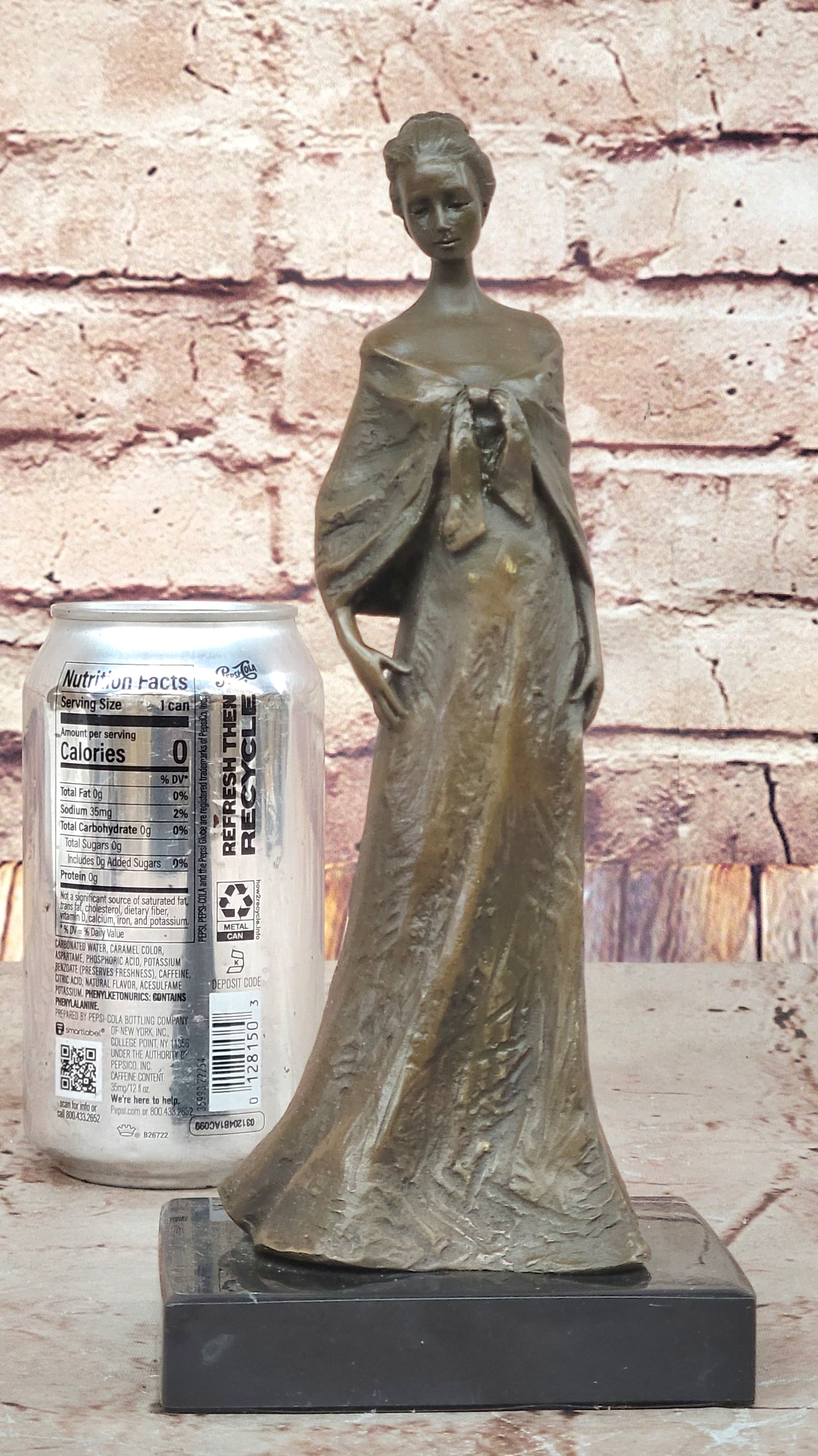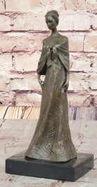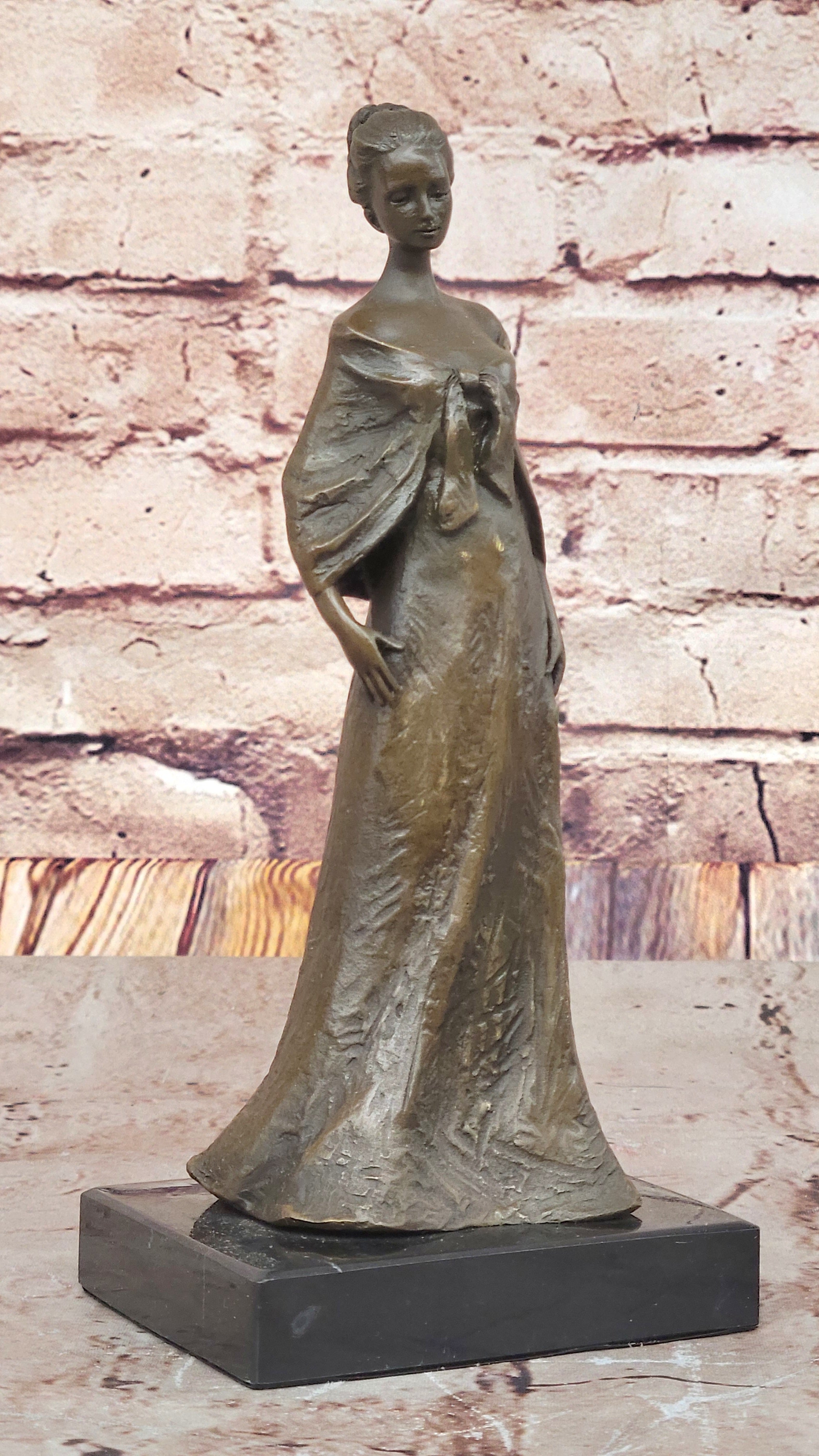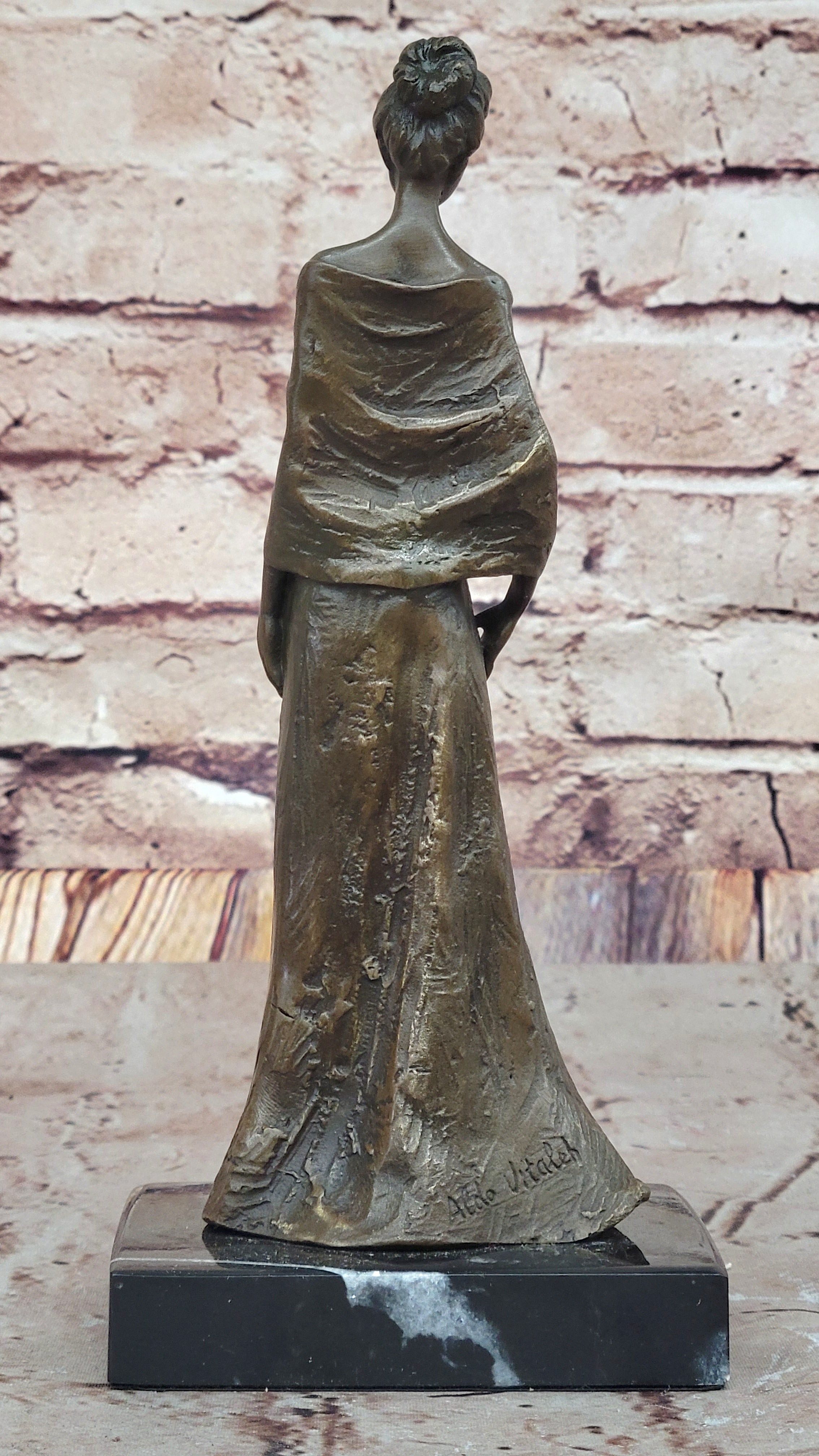 Elegant Bronze Lady Sculpture – Classic Figurine in Flowing Gown on Marble Base