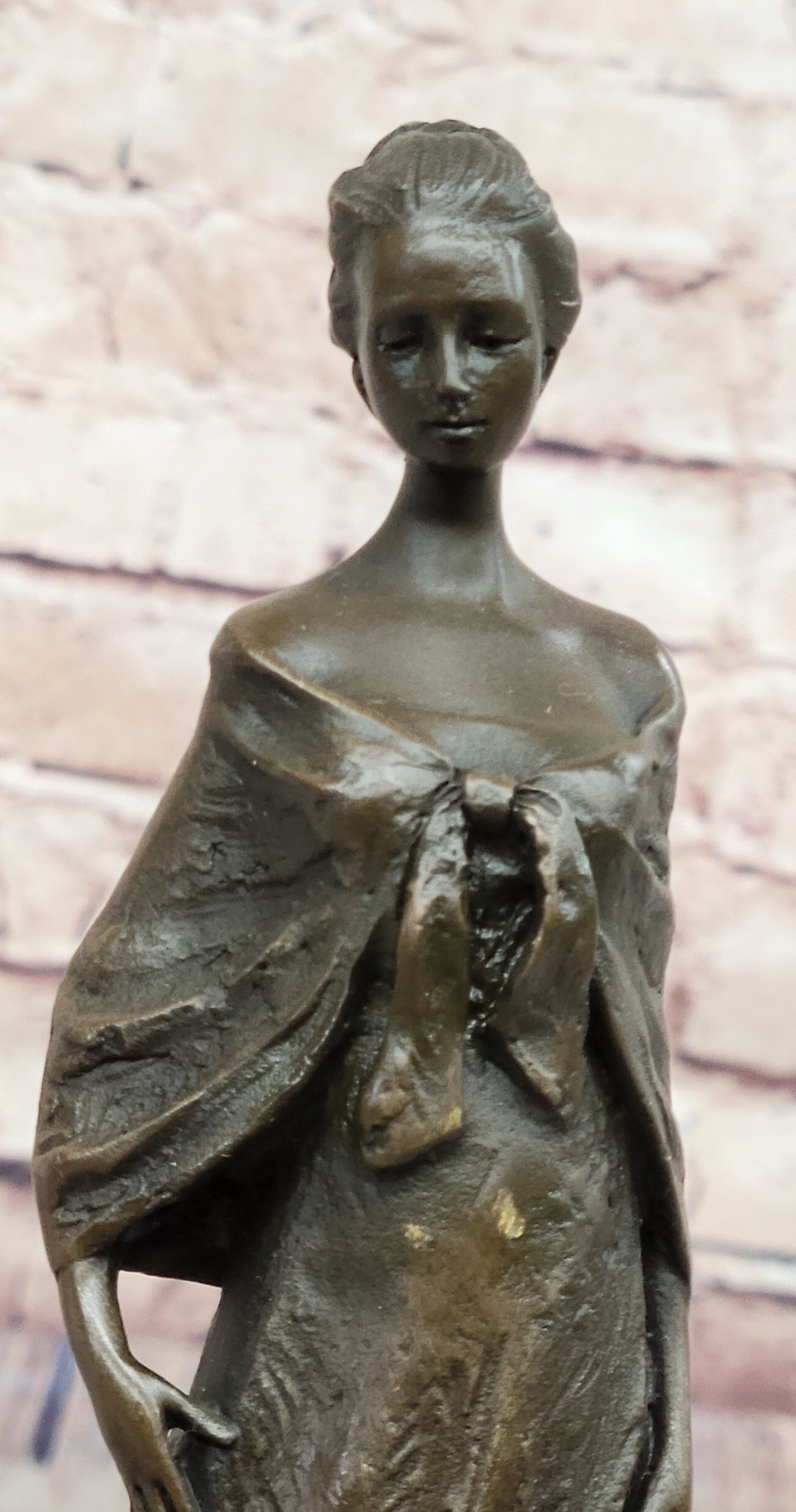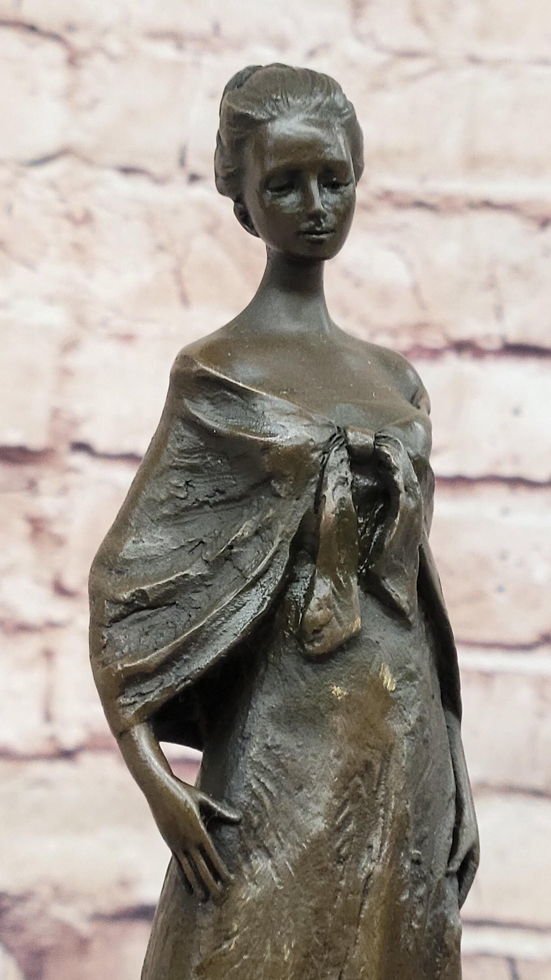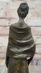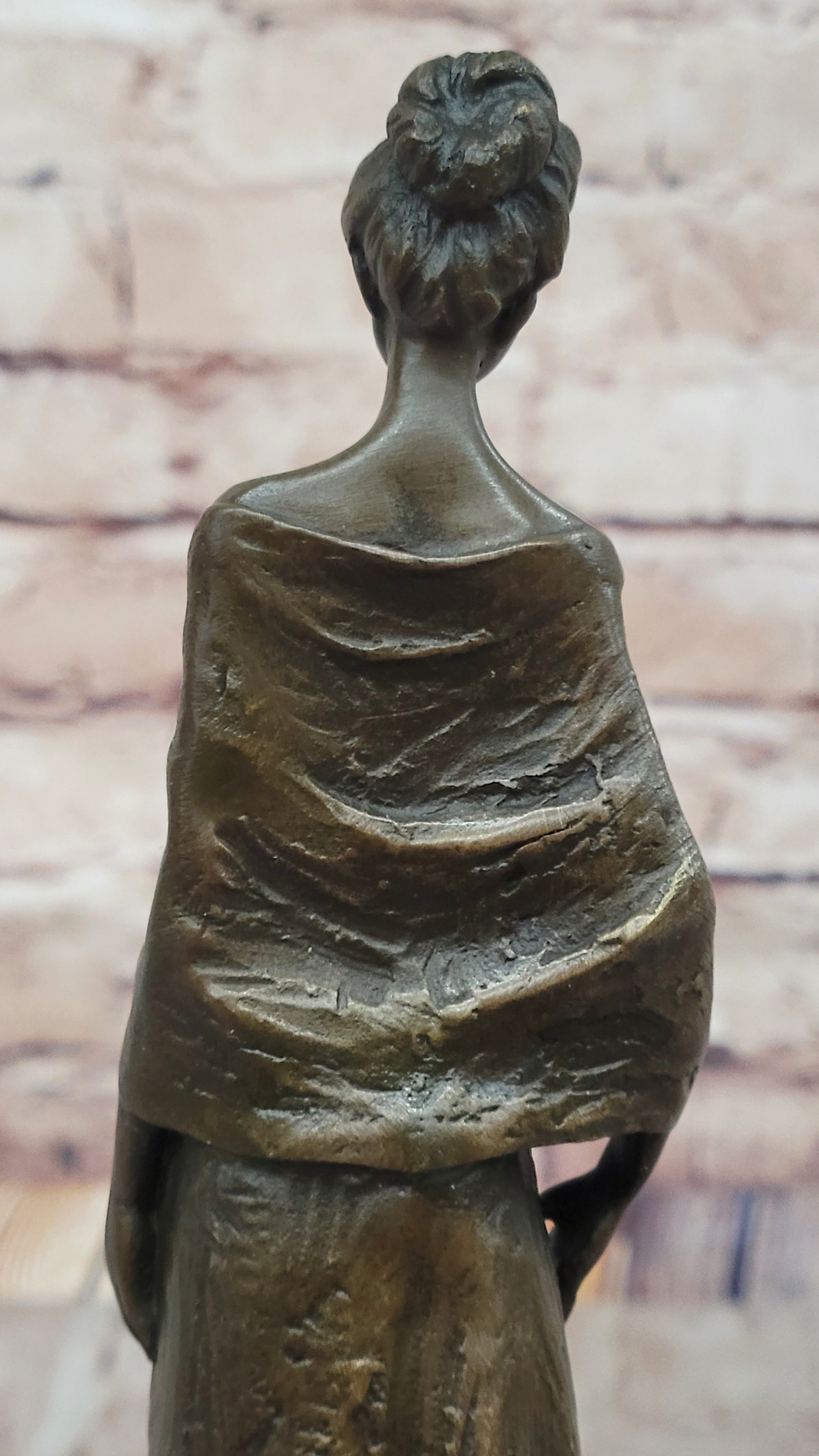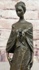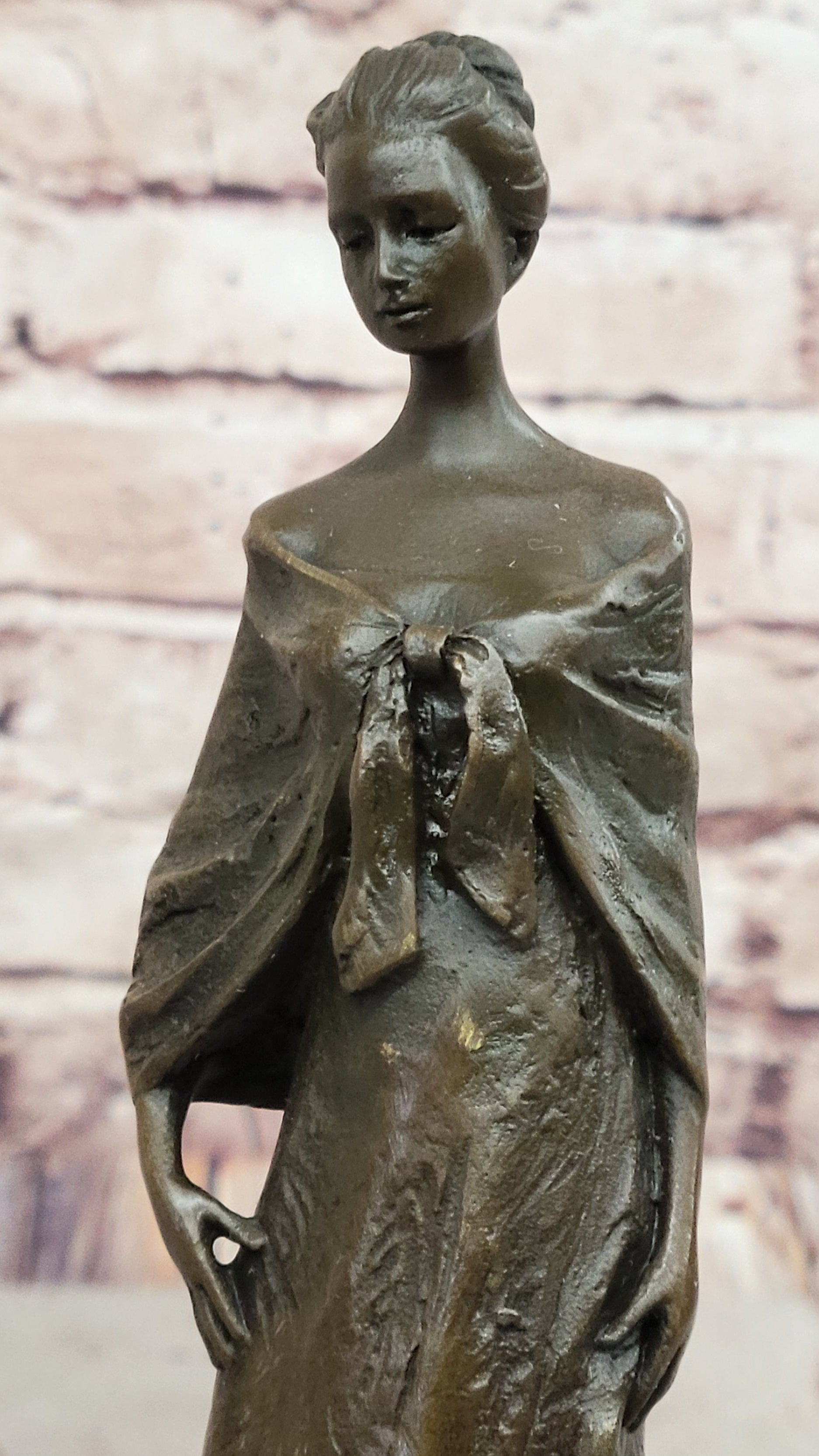 Elegant Bronze Lady Sculpture – Classic Figurine in Flowing Gown on Marble Base