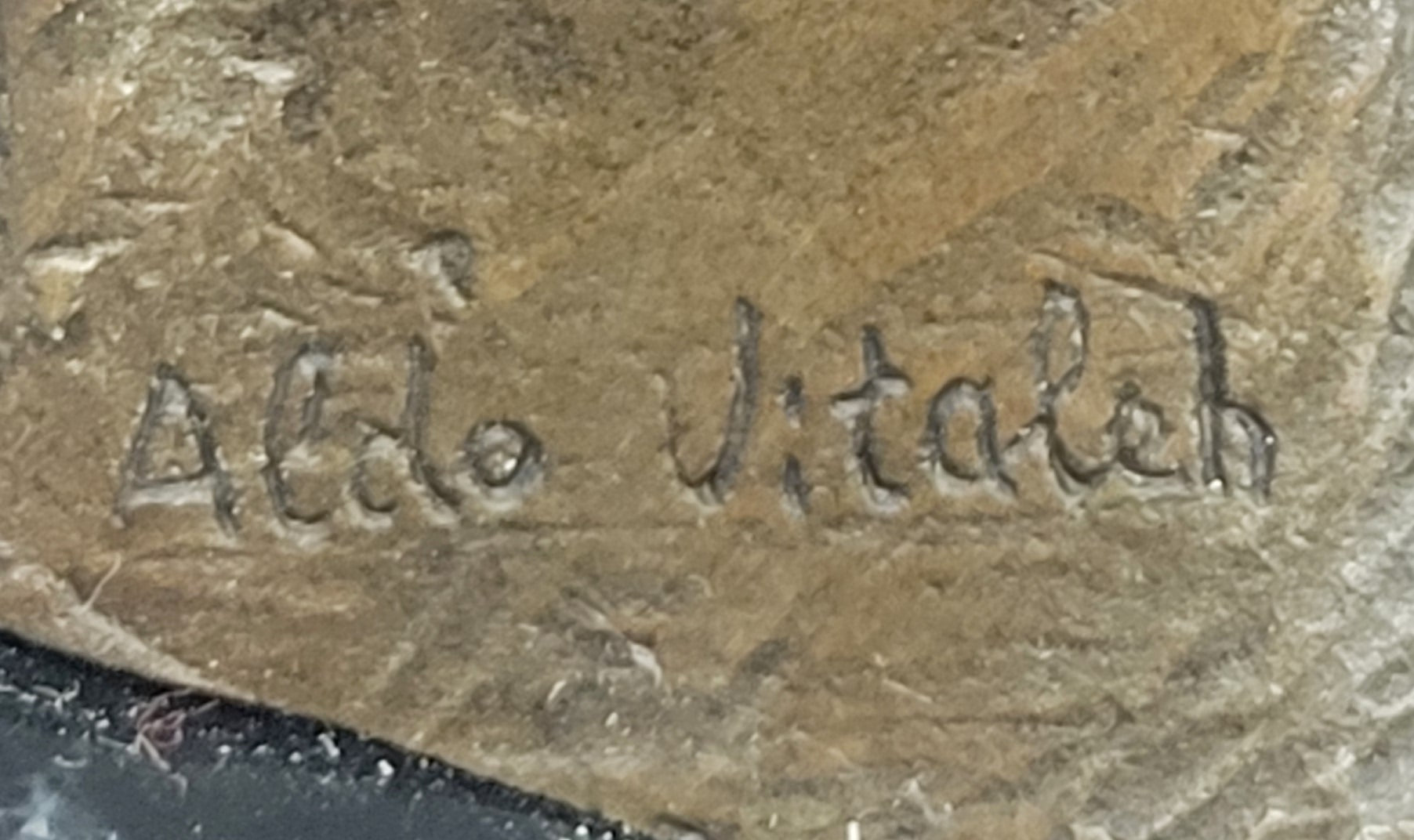 Mounted on a marble base, this exquisite piece stands as a testament to the artist's skill and vision. The signature of the esteemed artist Aldo Vitaleh adds further value and authenticity to this remarkable sculpture. Bring a touch of beauty and tranquility to your space with this mesmerizing work of art.Bronze Dimensions with Marble Base: Height 8.5" X Width 4"