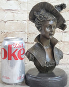 ELEGANT GIRL WITH DRESS HAT BRONZE SCULPTURE STATUE ART DECO MARBLE BASE FIGURE