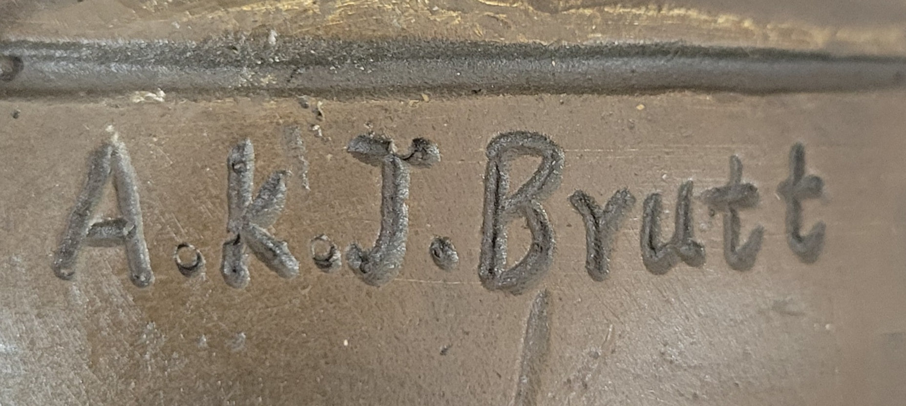 Phryne ia cast in one piece and is solid through out. smooth finish ,perfect in every detail, even down to her tiny fingernails. She stand semi nude with a nonchalant expressions if daring you to turn away. Was exhibited in 1893 at the world's Columbian exposition in Chicago, in north court of the central pavilion in the art gallery building. his is a beautiful bronze sculpture and was cast using the "Lost Wax Method" it has a beautiful brown patina and is mounted on a marble base and is signed by artist Brutt.Bronze Dimensions with Marble Base: Height 17.5" x Width 6"