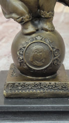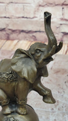 Elephant Balancing on a Ball Bronze Sculpture Statue Figure on Marble Base