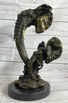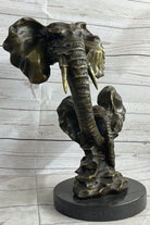 Elephant Family Abstract Bronze Bust Statue Sculpture Head Signed Modern Art 16" x 13"