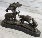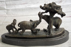Elephant Family on the African Savannah Bronze Metal Statue Sculpture Decor Art