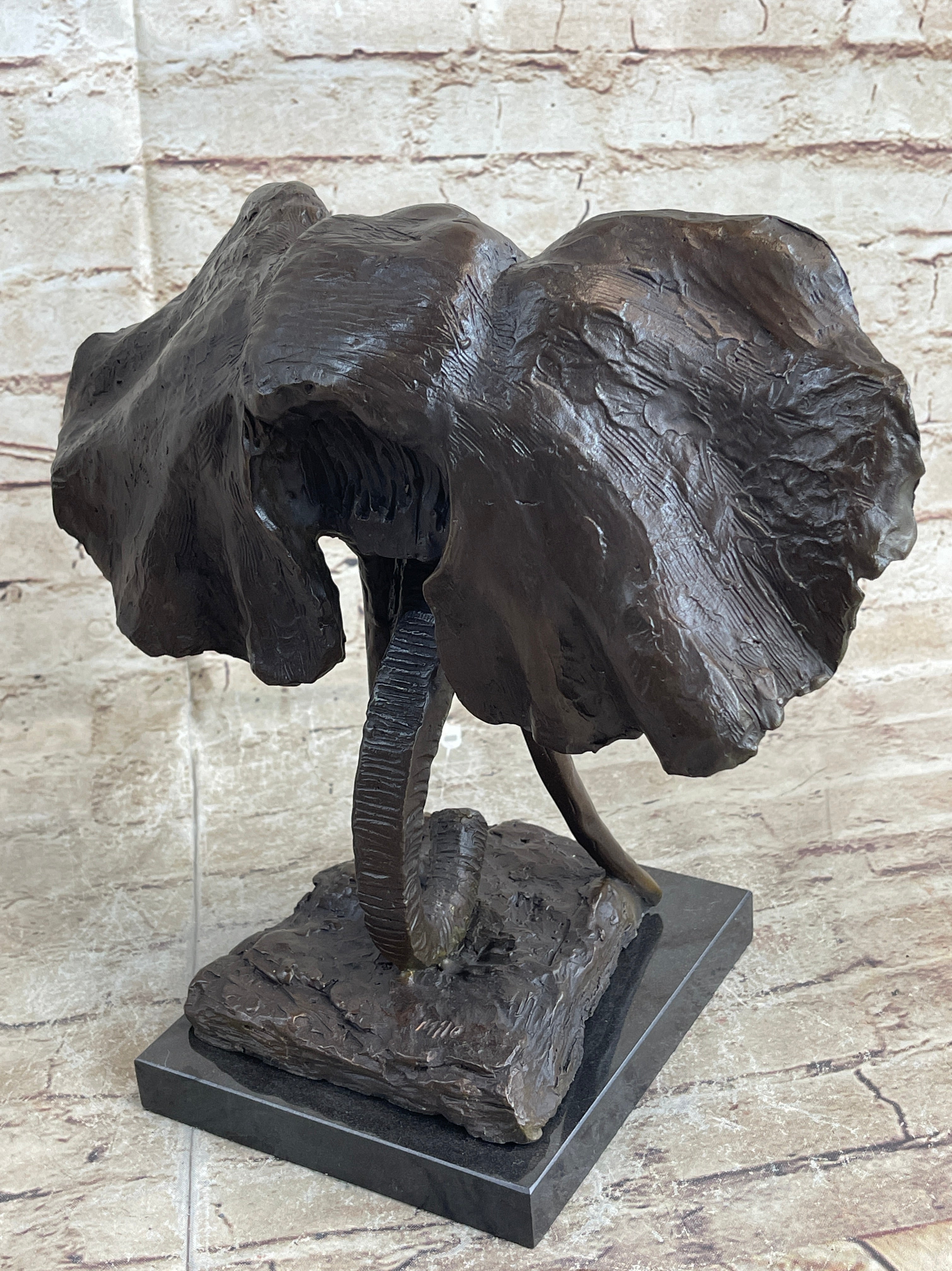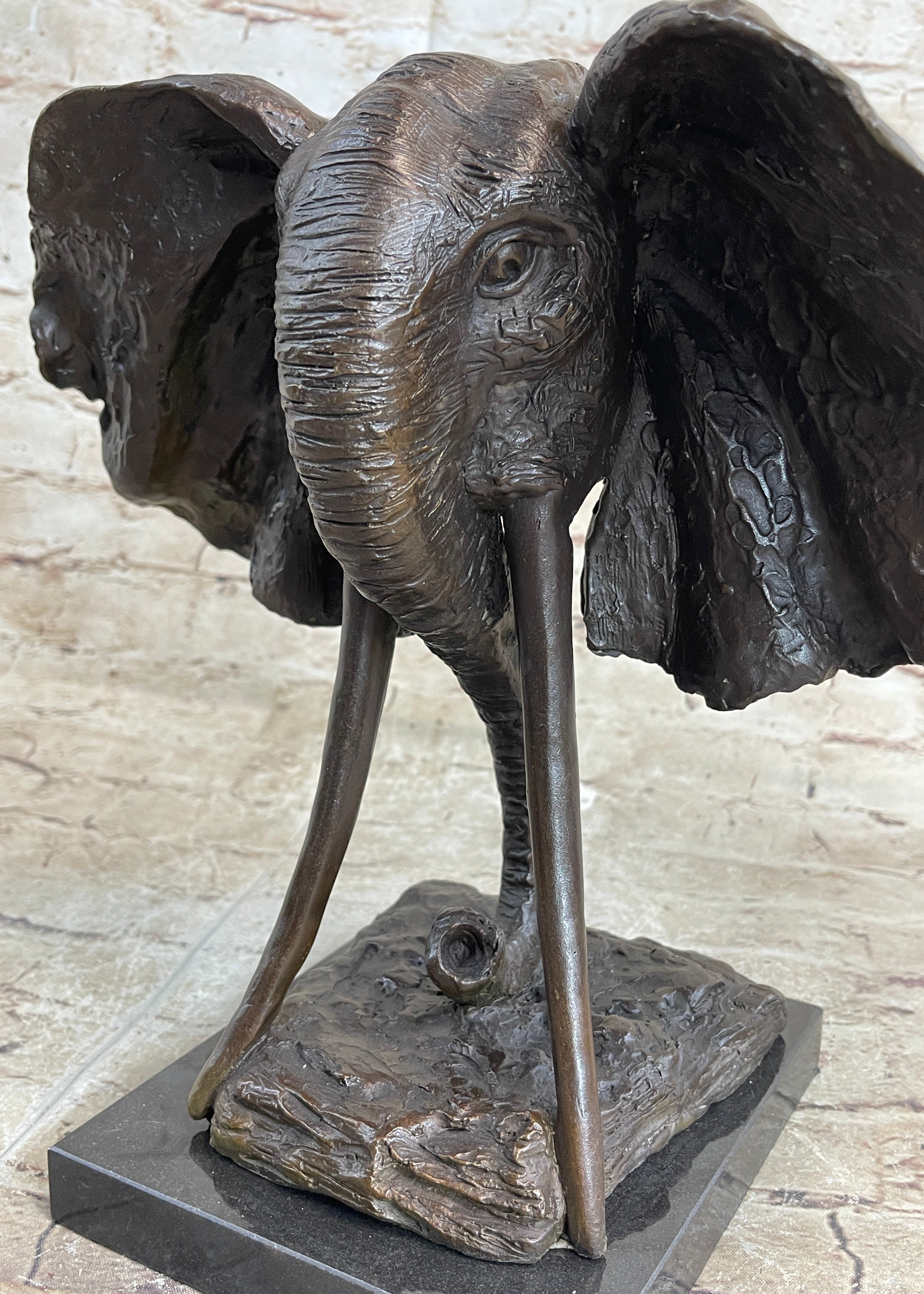 Elephant Head Bronze Metal Bust Statue Sculpture Figure Decor Signed Original Art Marble Base