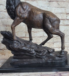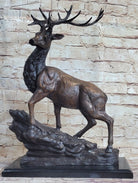 Elk Reindeer Caribou Stag Buck Wildlife Bronze Statue Sculpture on Marble Base