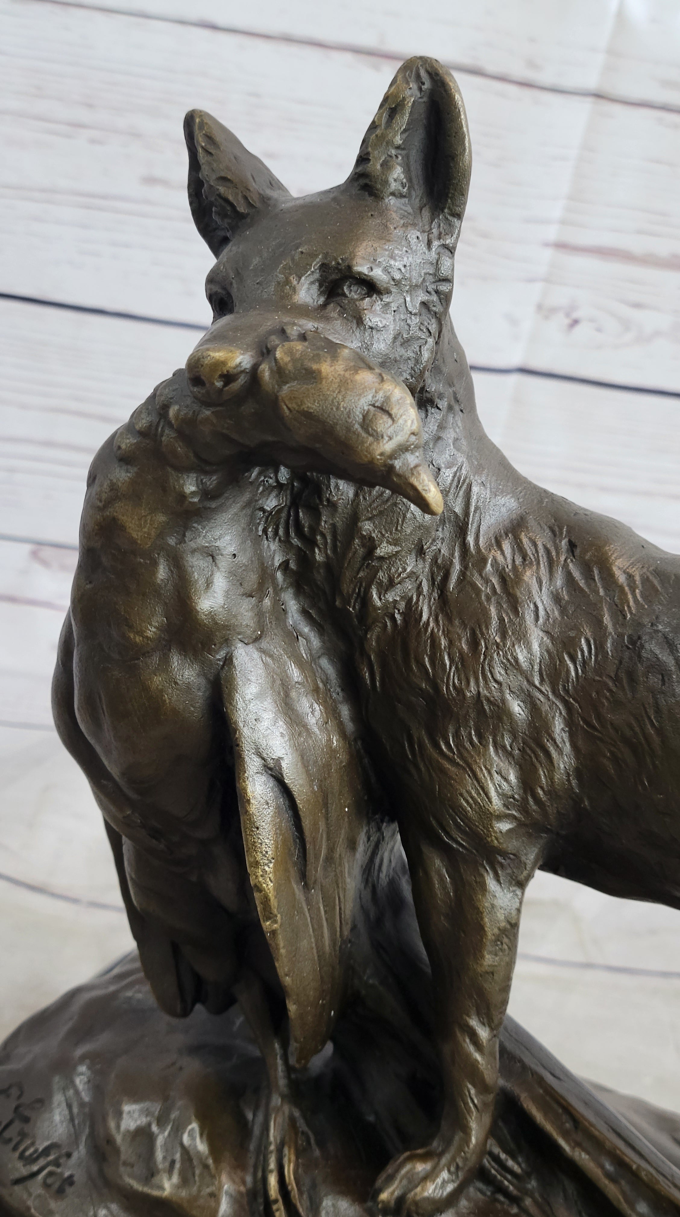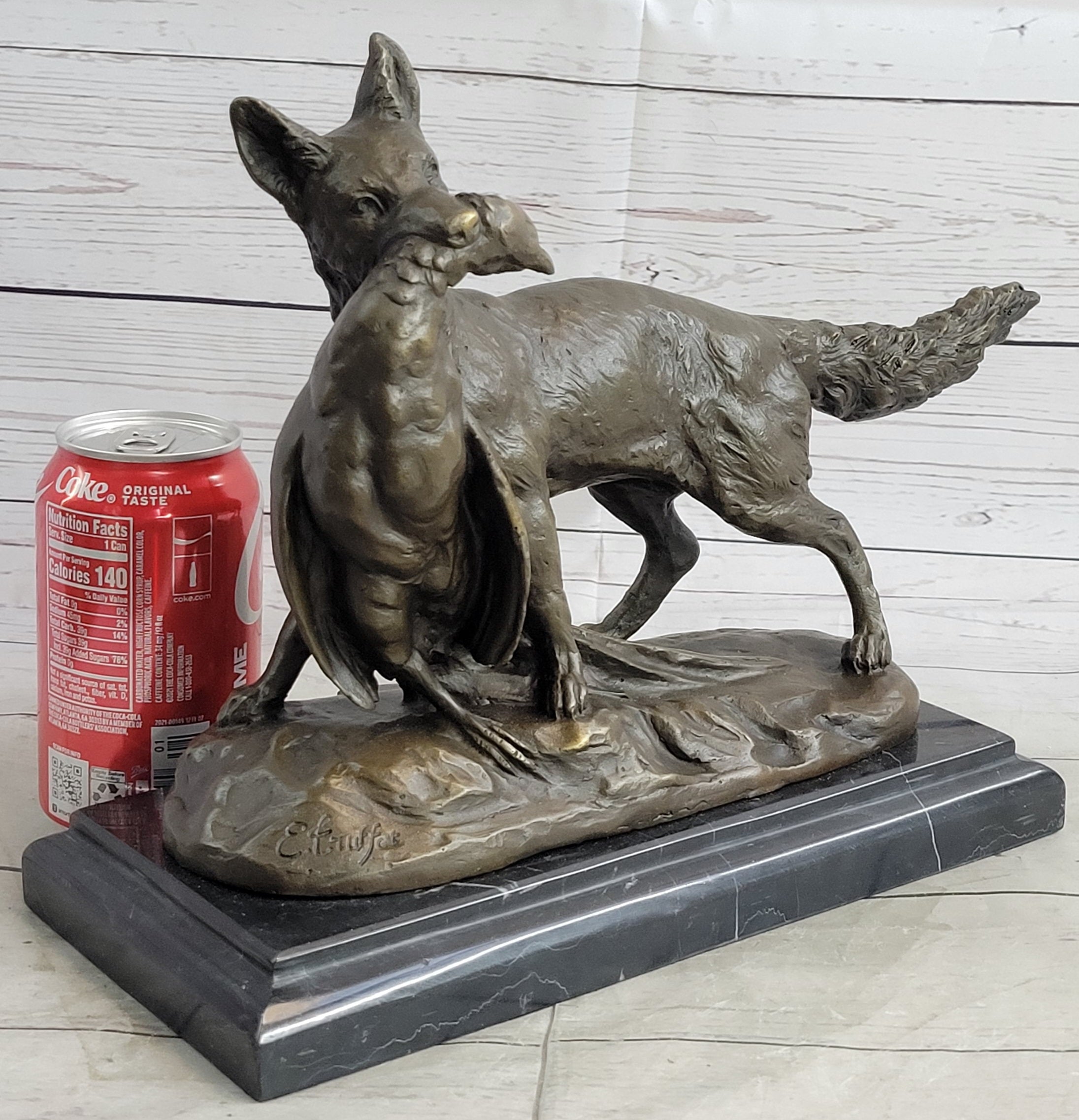 Hailing from Europe and certified as pure bronze, this sculpture is a part of a tradition that sets the standard in hand-cast bronzes through the superior Lost Wax Process. The process allows for the faithful reproduction of the original object, making it a preferred method for casting bronze sculptures in the world's finest museums, galleries, and premier collections. As an art form, this sculpture not only pays homage to Truffot's artistic prowess but also reflects the enduring appeal of bronze as a medium for capturing the beauty of nature and wildlife.Bronze Dimensions with Marble Base: Height 10" X Width 12"