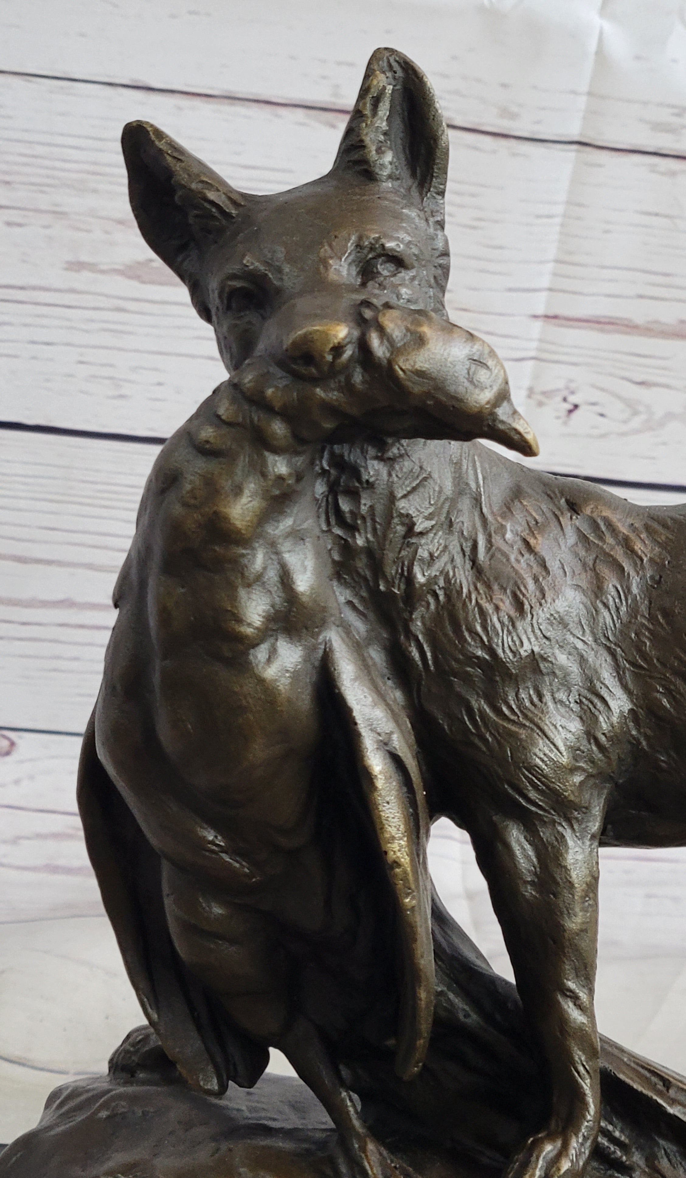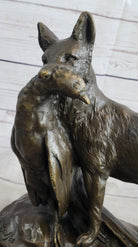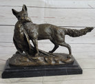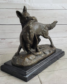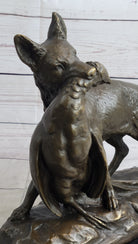 EMILE TRUFFOT POACHER FOX & PHEASANT BRONZE STATUE SCULPTURE 10" X 3"