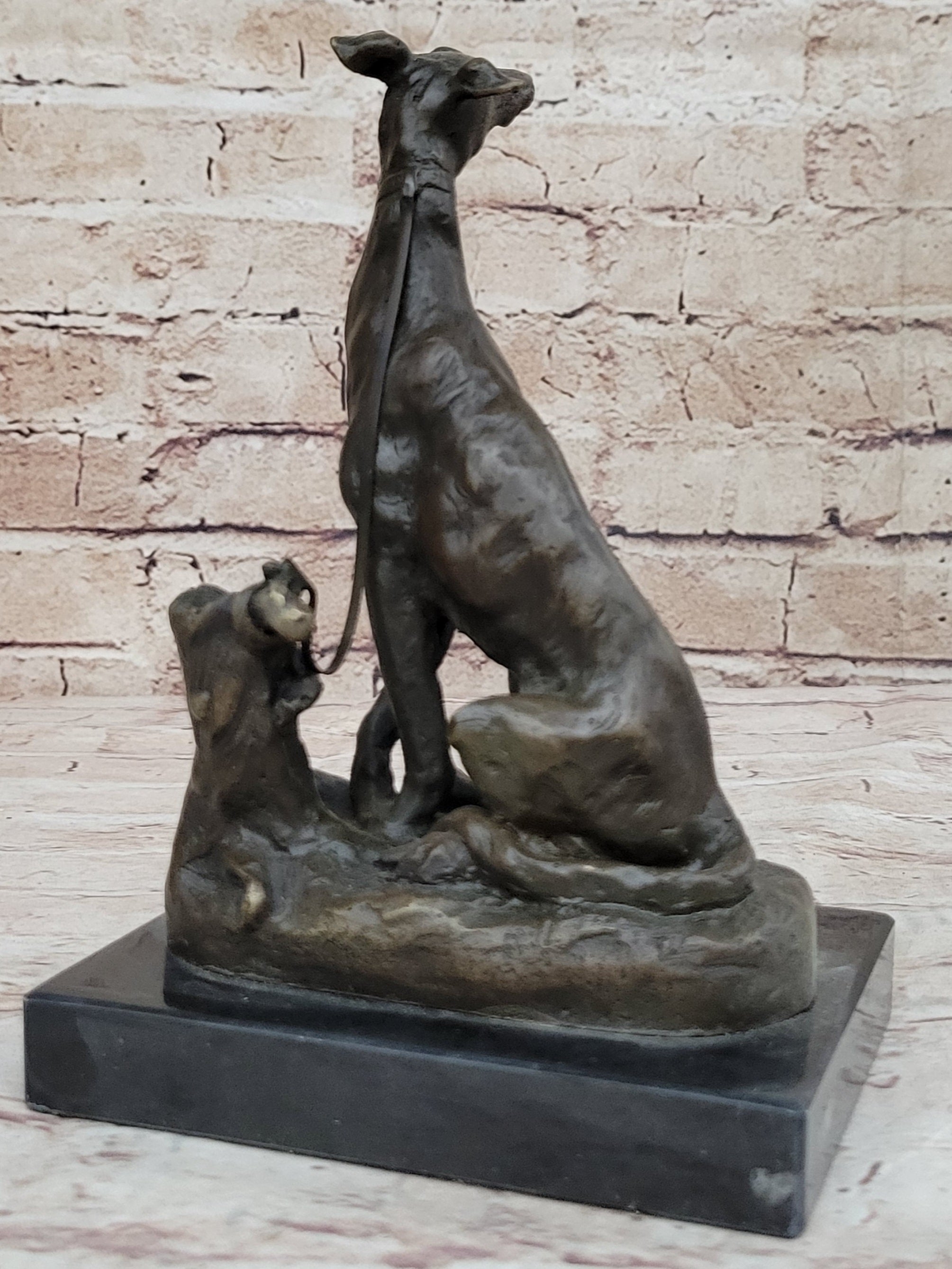 For collectors and art enthusiasts, this bronze greyhound figurine offers the opportunity to own a high-quality piece that pays homage to the work of a master sculptor. Its rich antique bronze looks and protective padded discs on the base make it a stunning addition to any art collection, as well as a tasteful decor piece for those who appreciate the beauty and grace of animal art.Bronze Dimensions with Marble Base: Height 7" X Width 6"