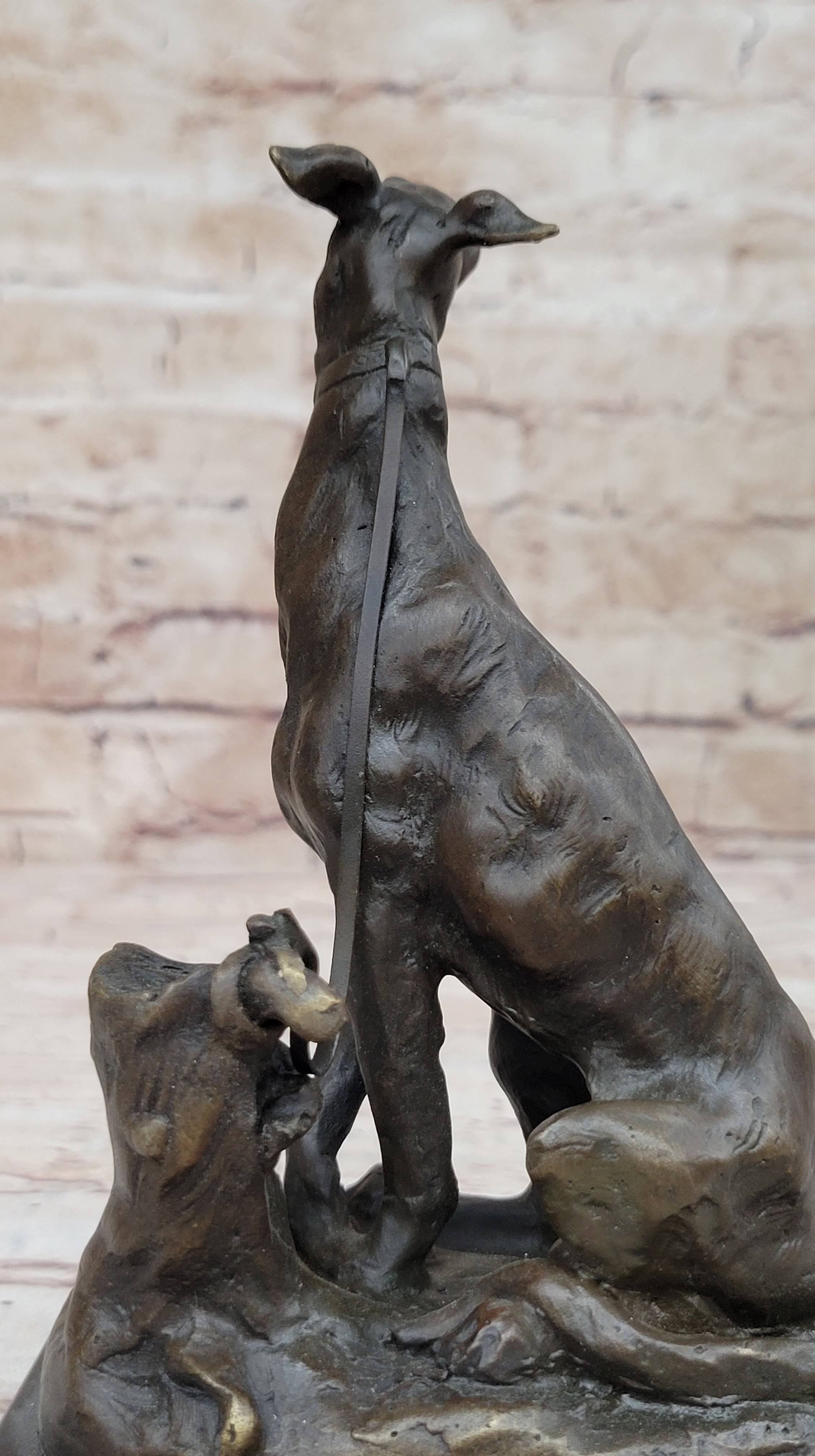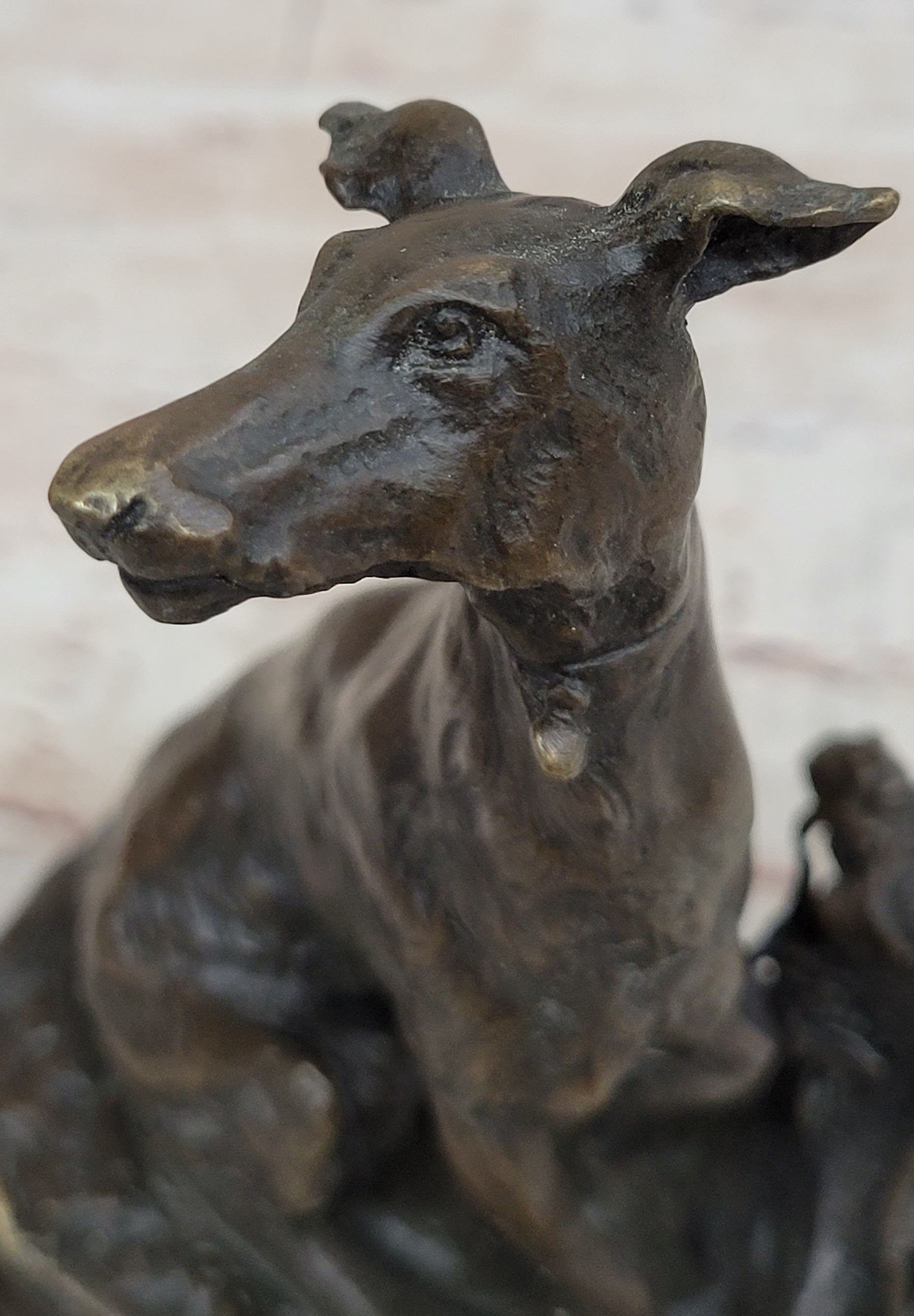 Emmanuel Fremiet Bronze Metal Greyhound Slender Dog Sculpture Statue Figure on Marble Base