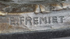 This exquisite bronze statue is a faithful reproduction of a work by the renowned 19th-century French sculptor Emmanuel Fremiet, celebrated for his exceptional animal-themed sculptures. Handcrafted with meticulous attention to detail, this sculpture captures the grace and majesty of a greyhound, one of his iconic subjects. The use of high-density sculpting solid bronze and a dark brown patina finish perfectly replicates the antique bronze aesthetic of the past.