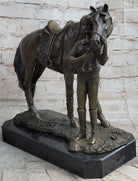 Equestrian Little Girl Child w/ Horse Bronze Statue Sculpture Figurine 11" x 12"