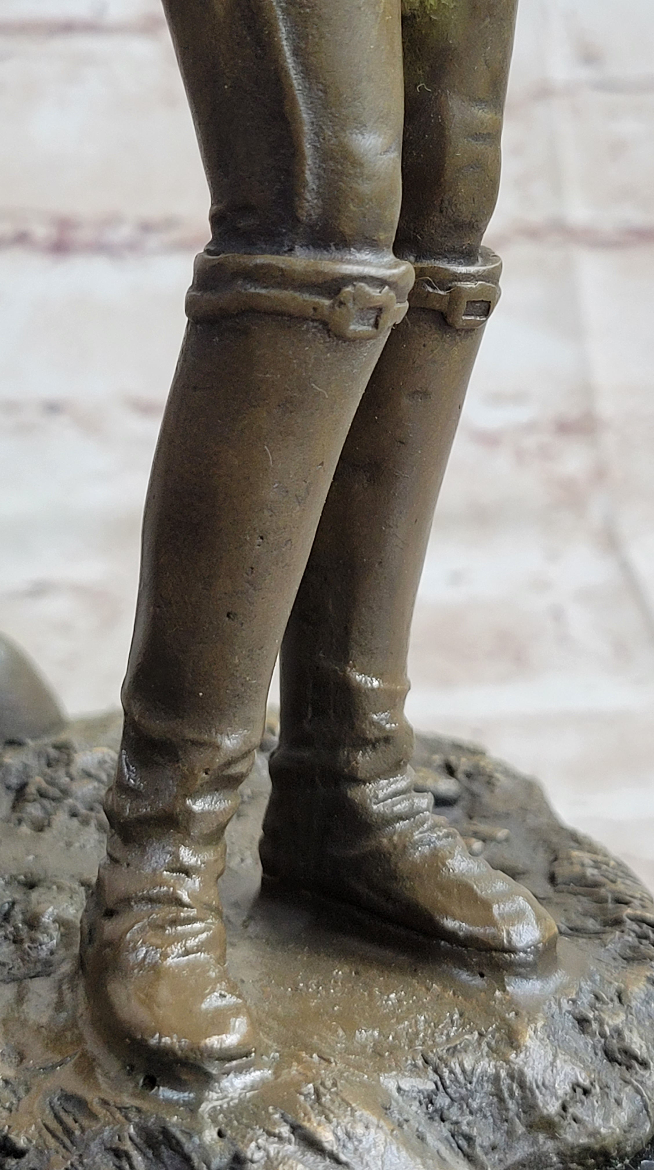 Handcrafted with meticulous care, this sculpture is a masterpiece of the ancient lost-wax casting method, ensuring that every detail is faithfully reproduced. The brown patina finish lends a timeless quality to the piece, enhancing the depth of its form. Resting atop a sleek black marble base, this sculpture stands as a symbol of the partnership and camaraderie between humans and animals.