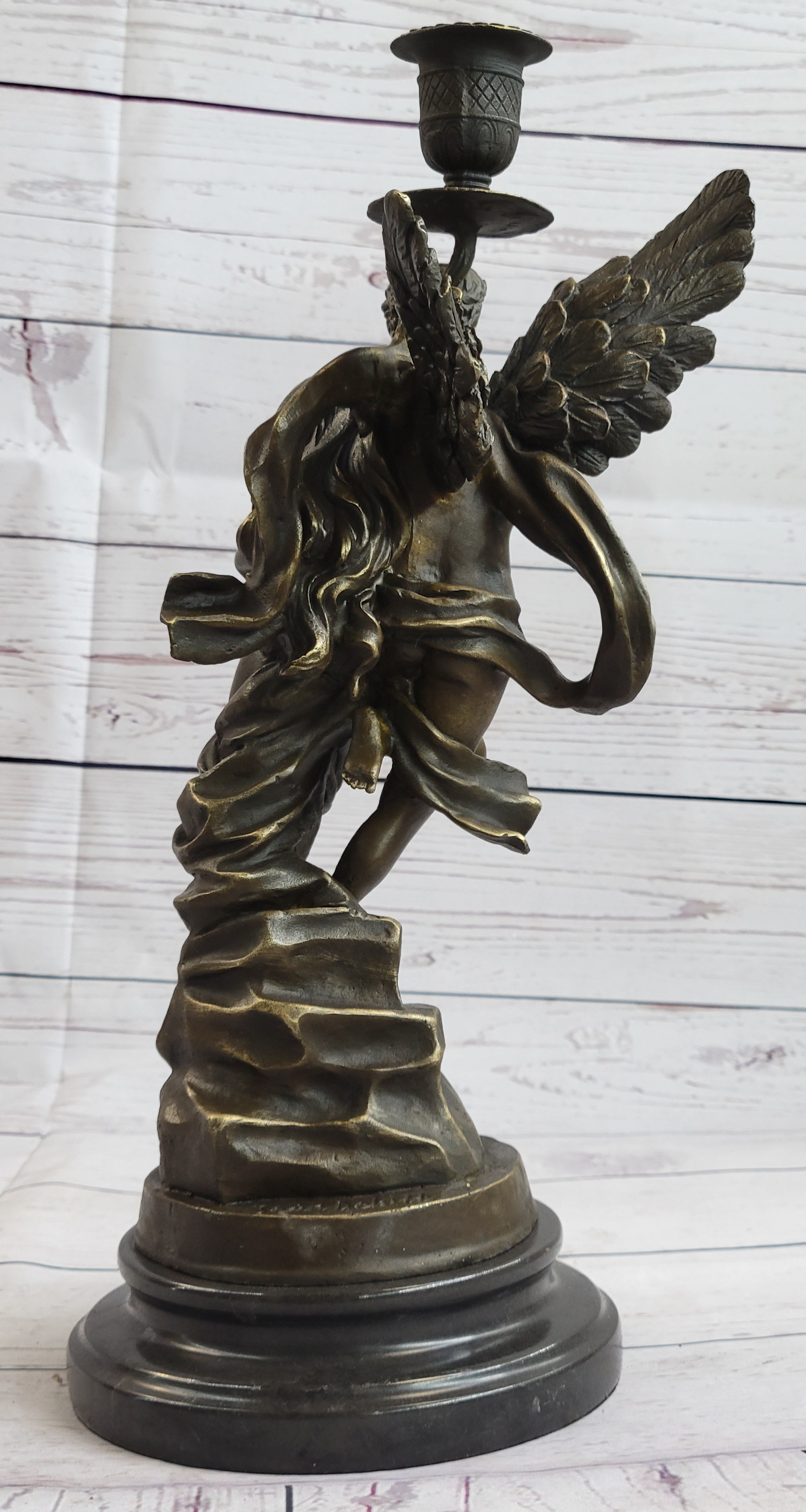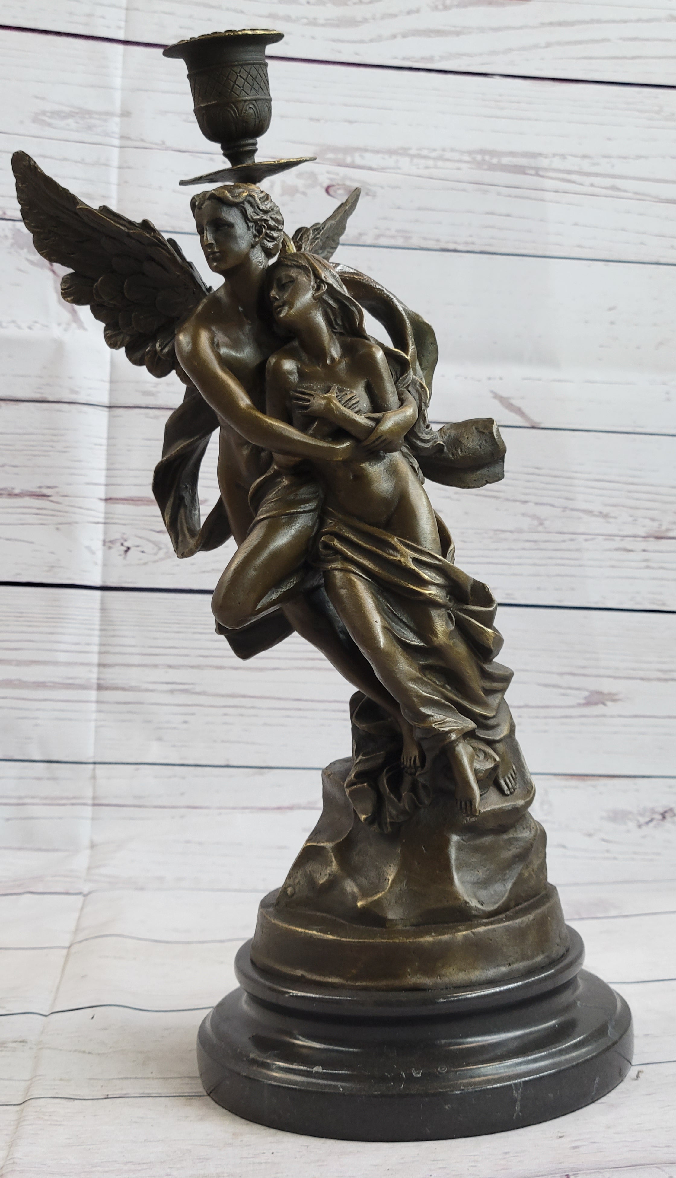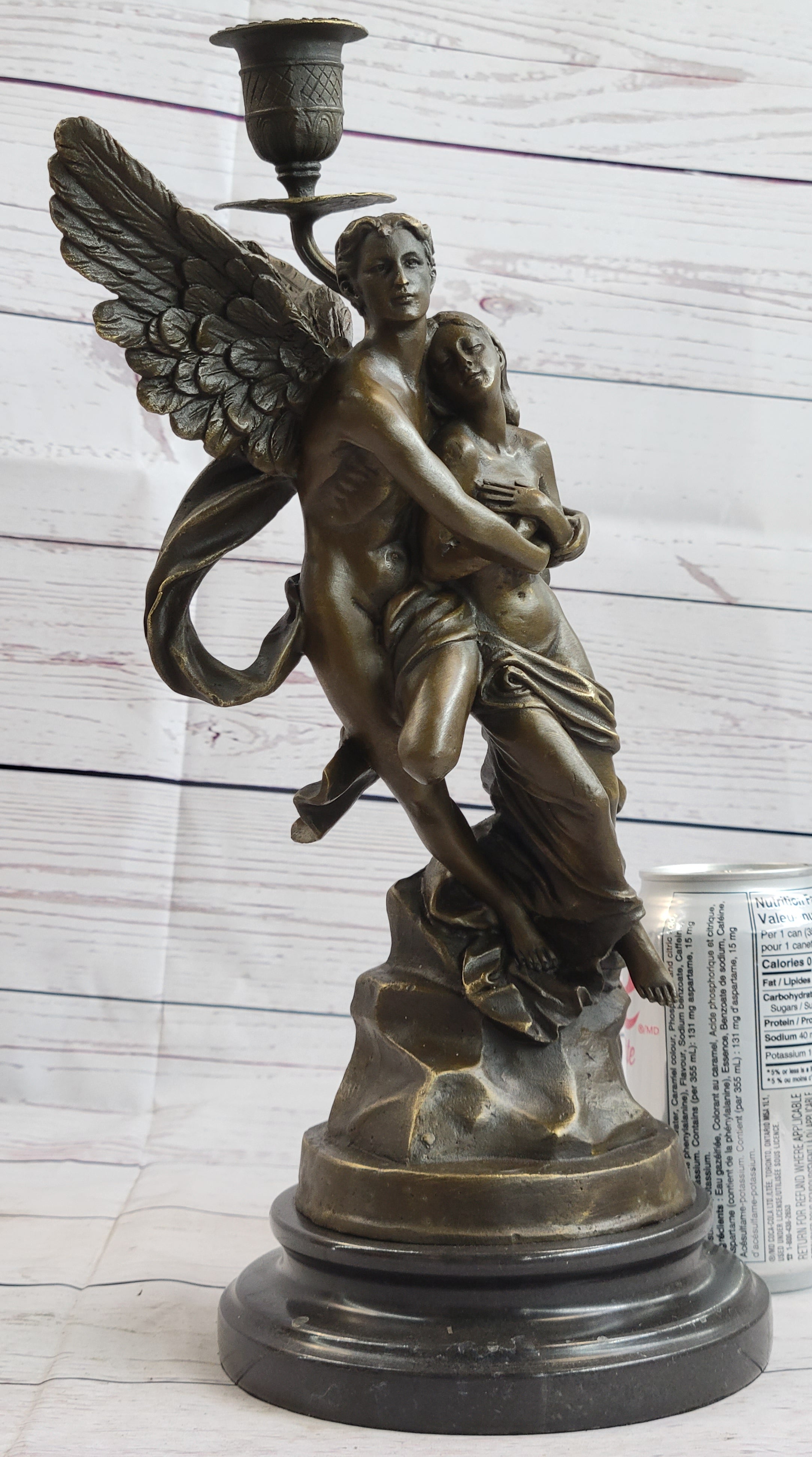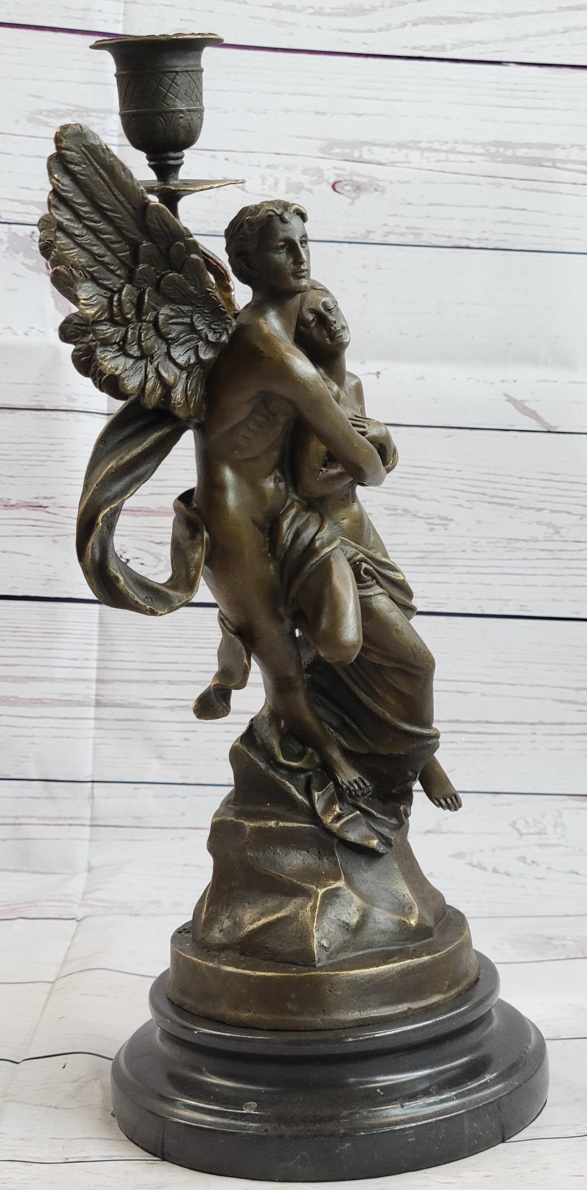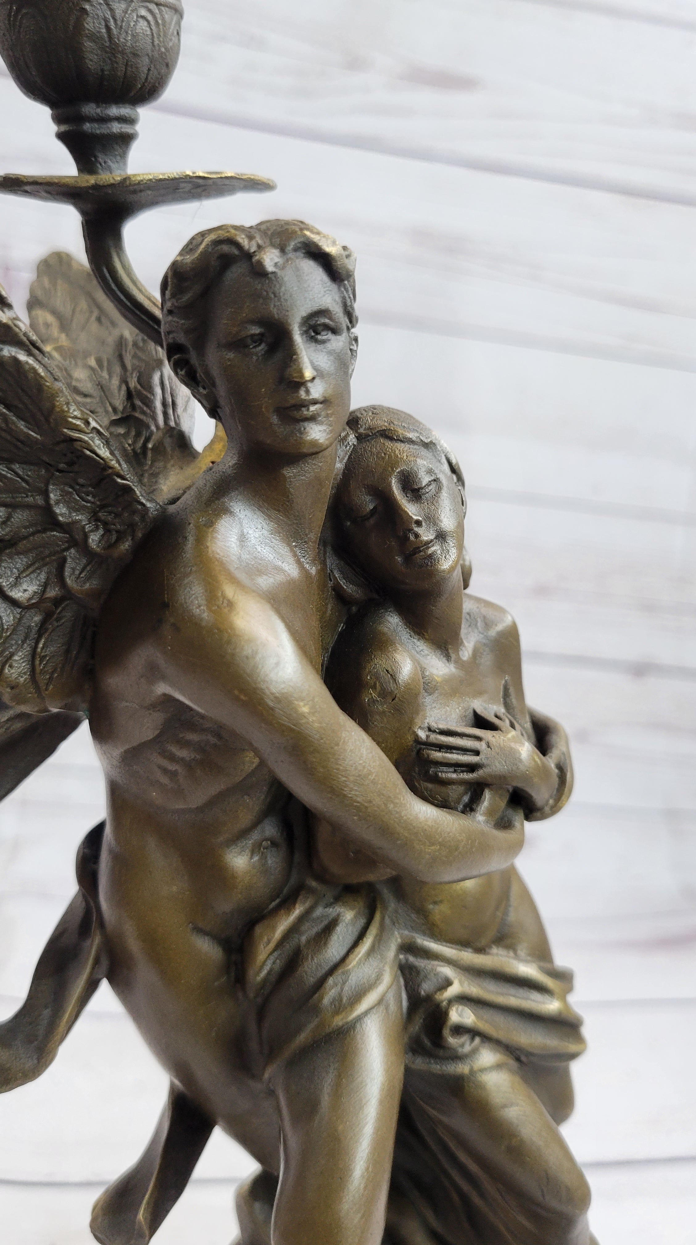 Eros and Psyche Romantic Candle Holder Bronze Sculpture Marble Statue Figurine