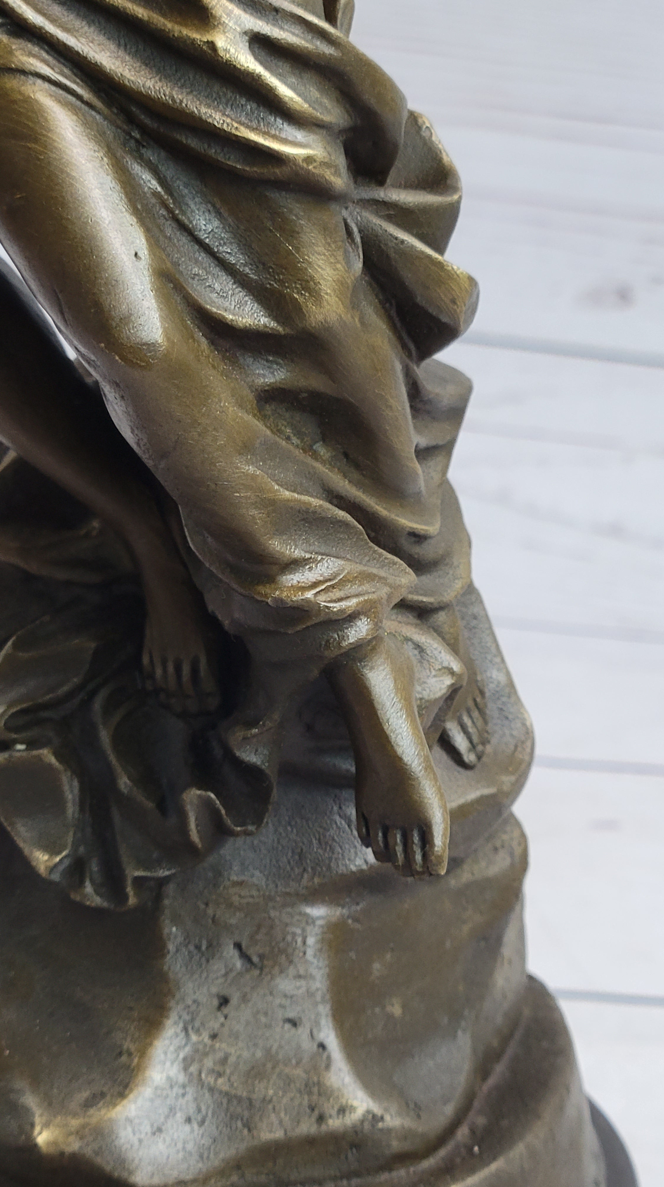 Not only is this sculpture a stunning work of art, but it also serves as a functional candle holder. The combination of its artistic beauty and practicality makes it a versatile piece that can be enjoyed in any space. Let the soft glow of candlelight enhance the enchantment and romance of this captivating bronze sculpture.Bronze Dimensions with Marble Base: Height 14" X Width 6"