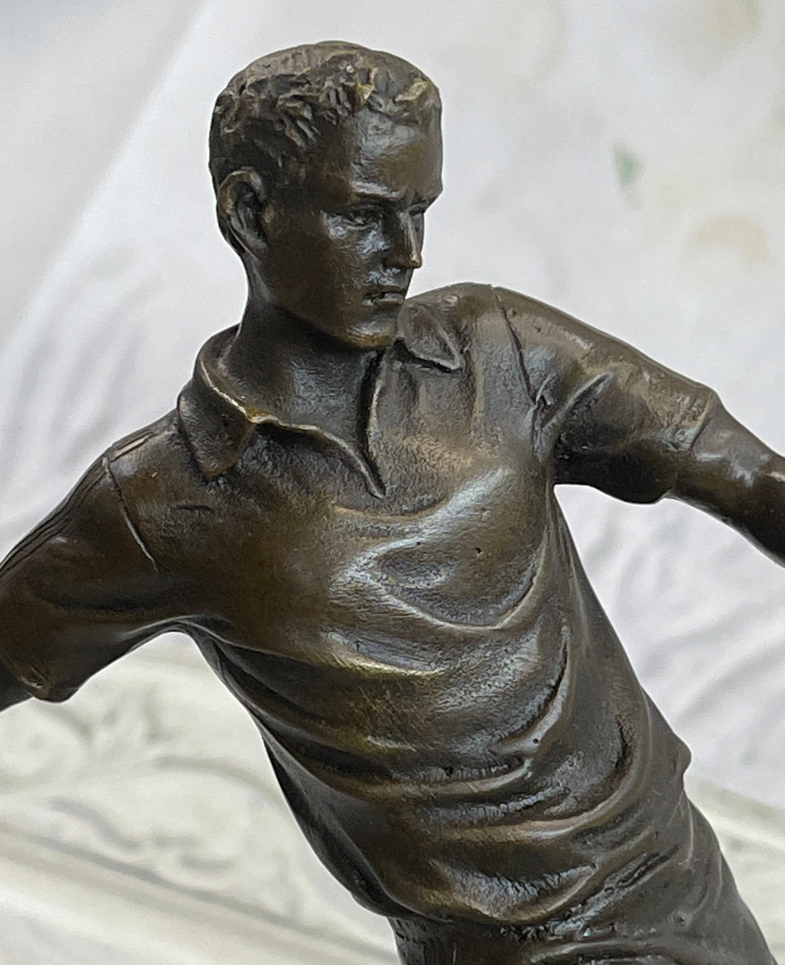 European Football Player Bronze Figurine Statue Figure Soccer Ball Hot Cast D