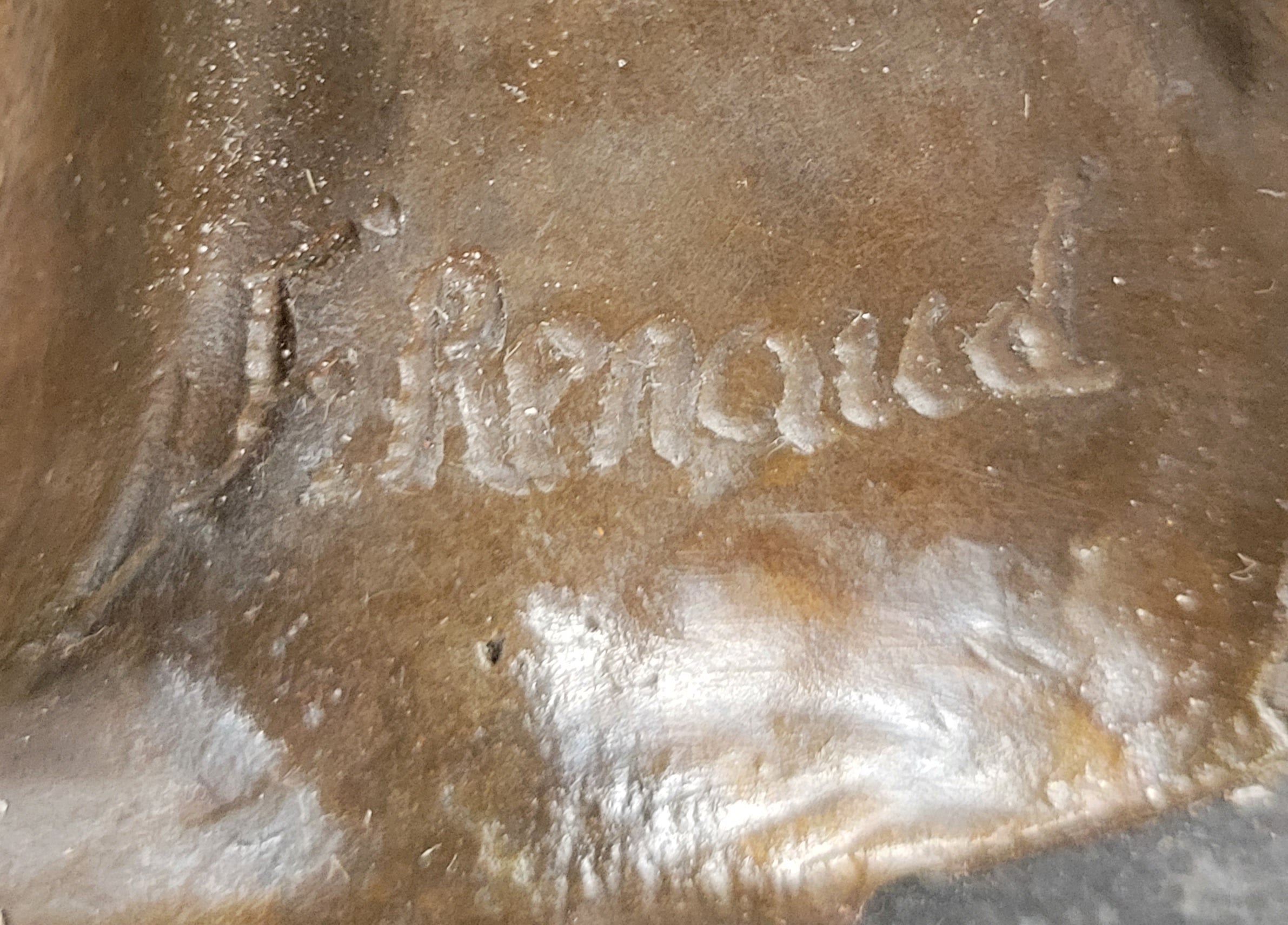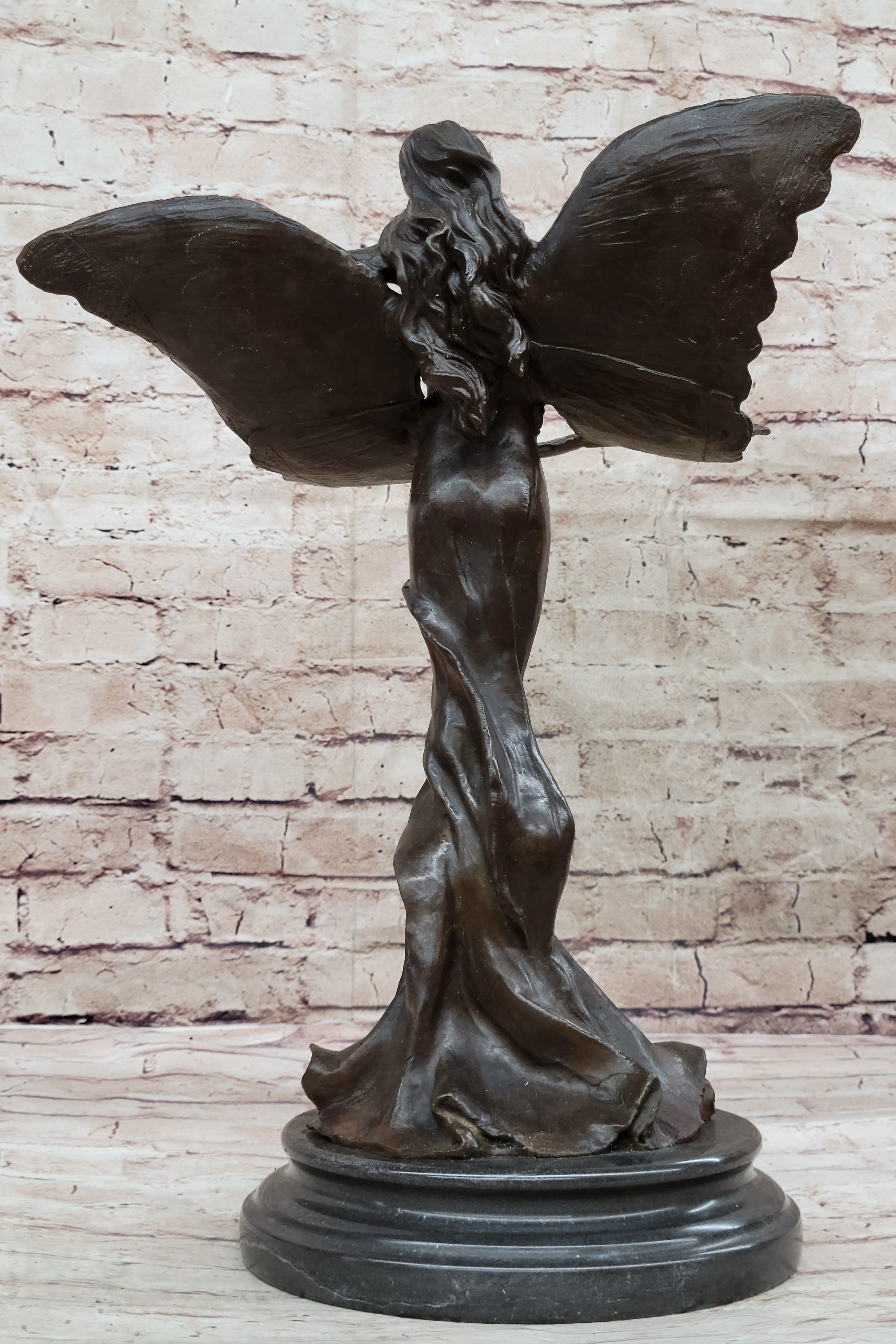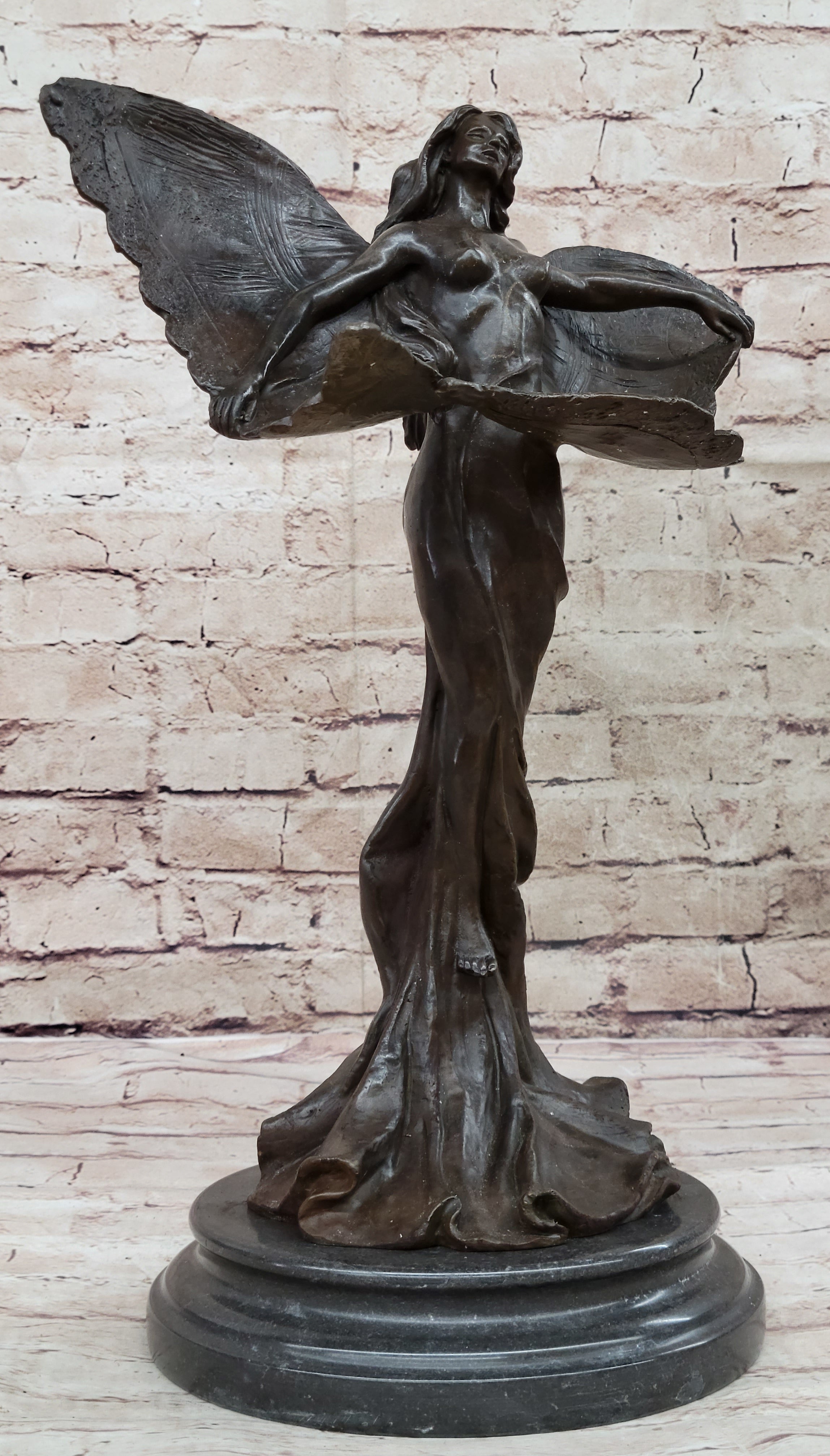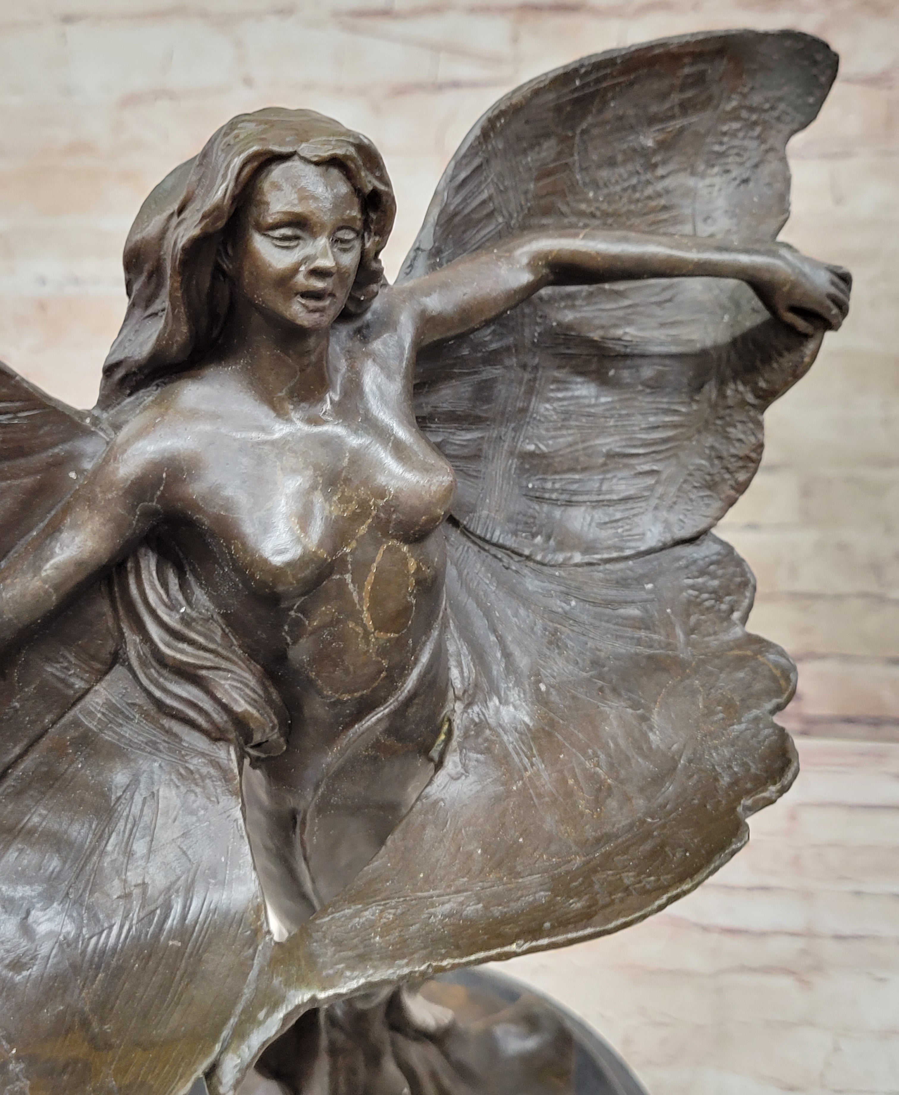 An Elegant Real Bronze Figure Of A Beautiful Nymph Rising From The Ground Between Two Outspread Butterfly Wings, With Vibrant Deep Brown Patina And Fine Hand Chased Surface Detail, Signed RenaudBronze Dimensions with Marble Base: Height 17" x Width 12"
