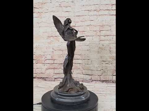 Fairy Angel Semi Nude Girl w/ Butterfly Wings Bronze Statue Sculpture Card Holder Decor