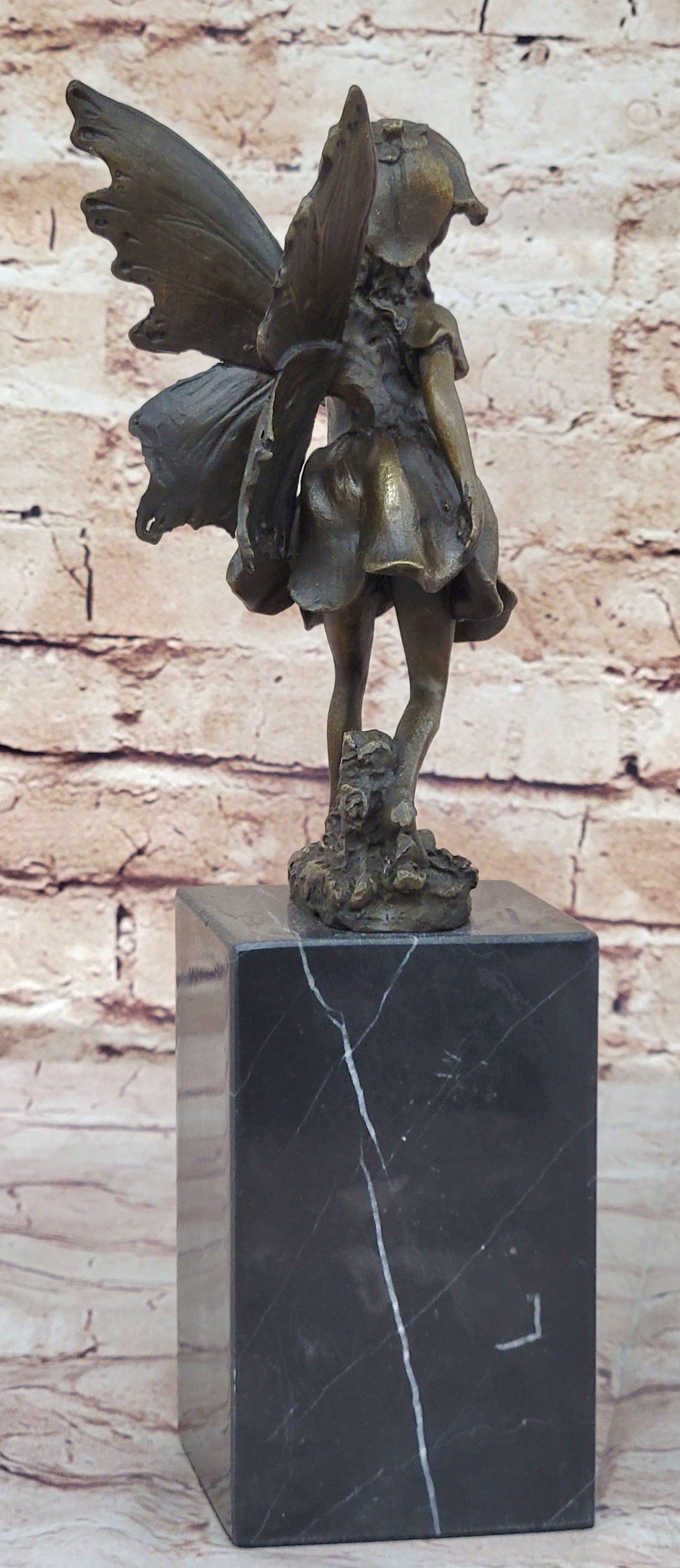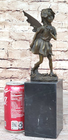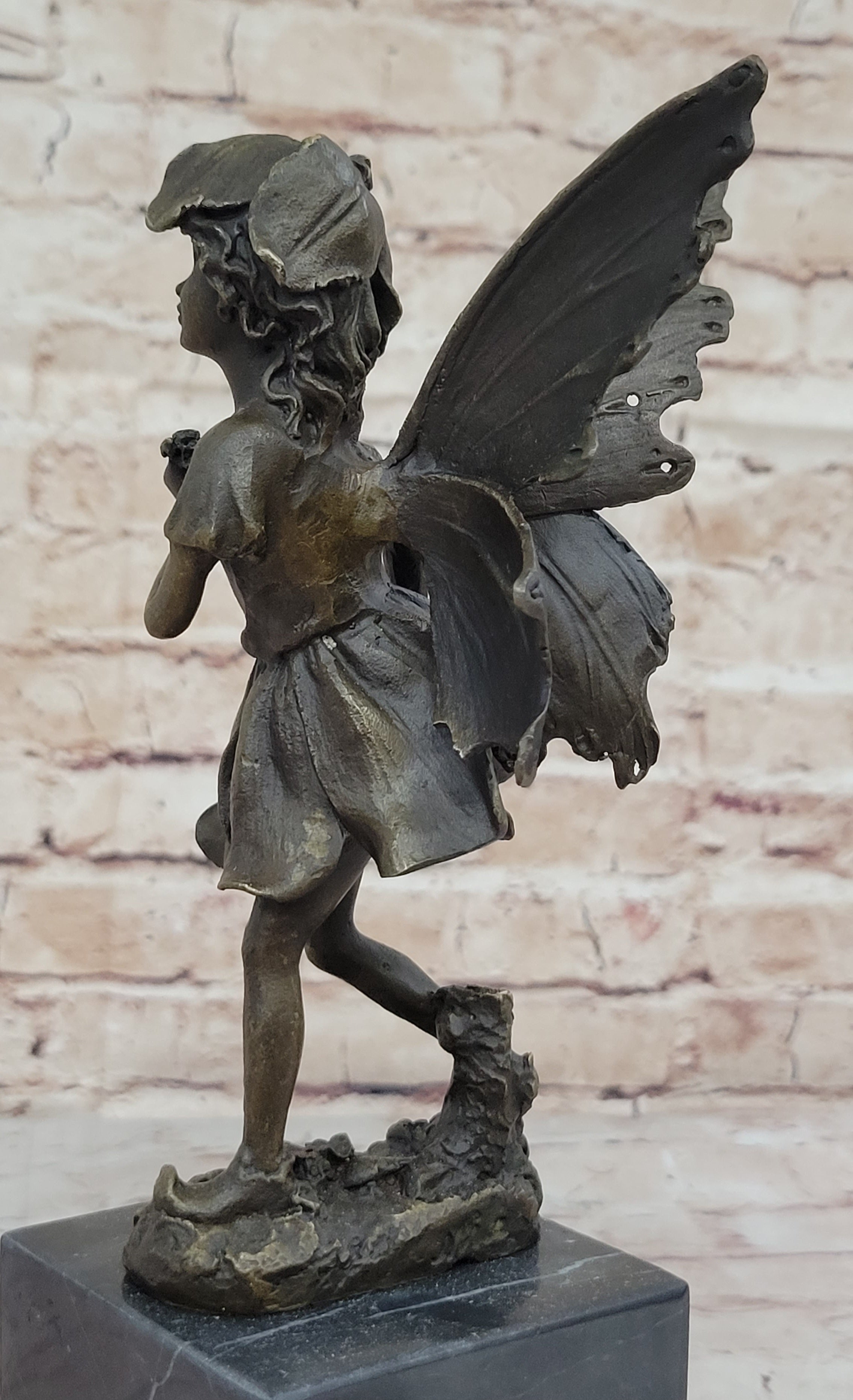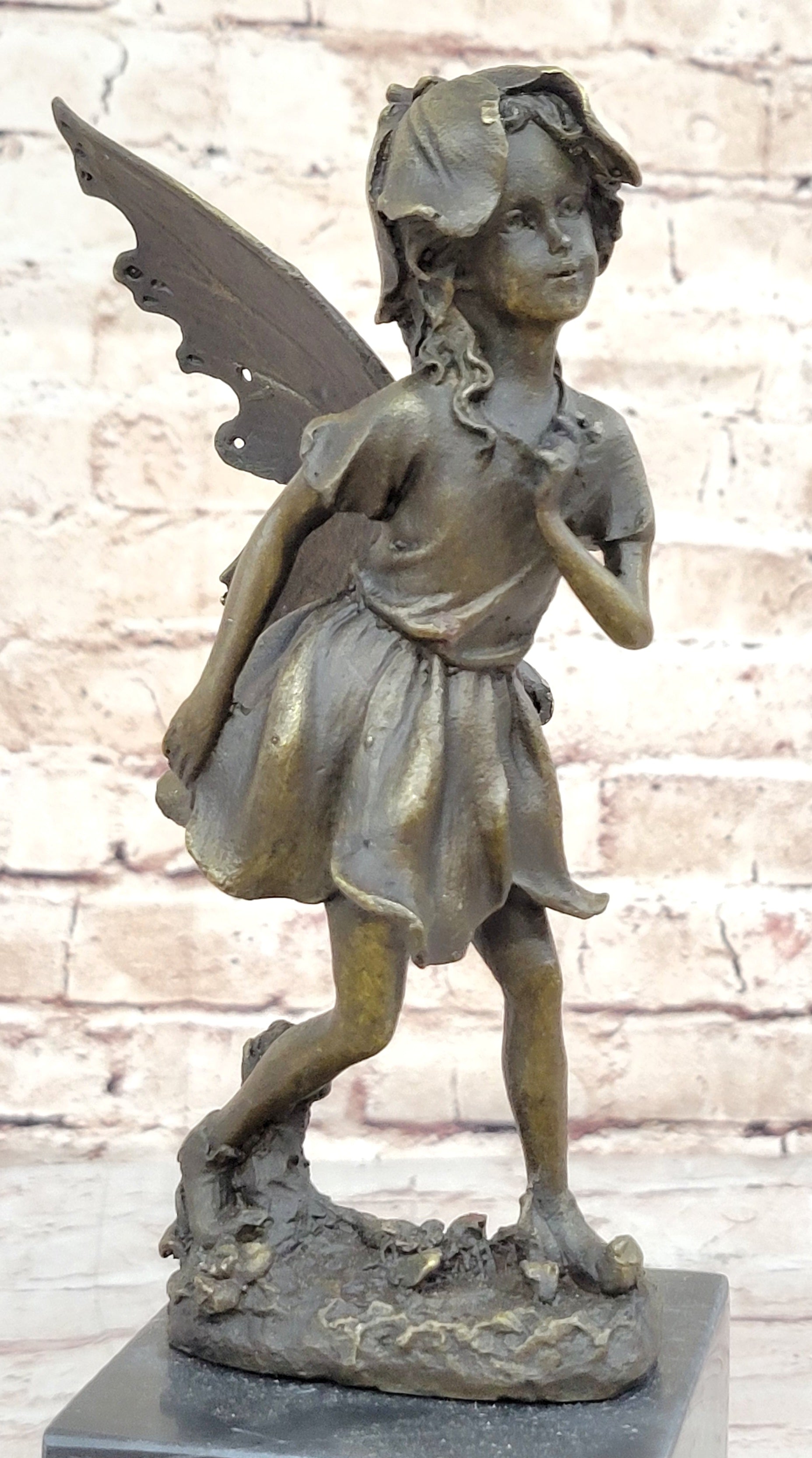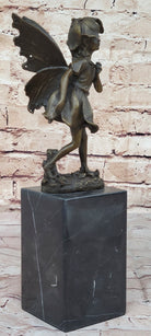 Handmade from 100% bronze, this sculpture was cast using the ancient "Lost Wax Method," ensuring exceptional detail and quality. It is mounted on a polished marble base, providing a sturdy and elegant foundation for the fairy's delicate form. Signed by the artist Milo, this piece is not only a beautiful decoration but also a testament to fine craftsmanship and artistic vision. This delightful fairy sculpture is sure to captivate hearts and spark the imagination, making it a treasured addition to any collection.Bronze Dimensions with Marble Base: Height 13" X Width 3"