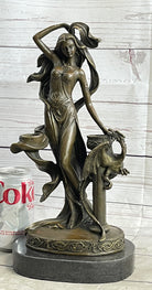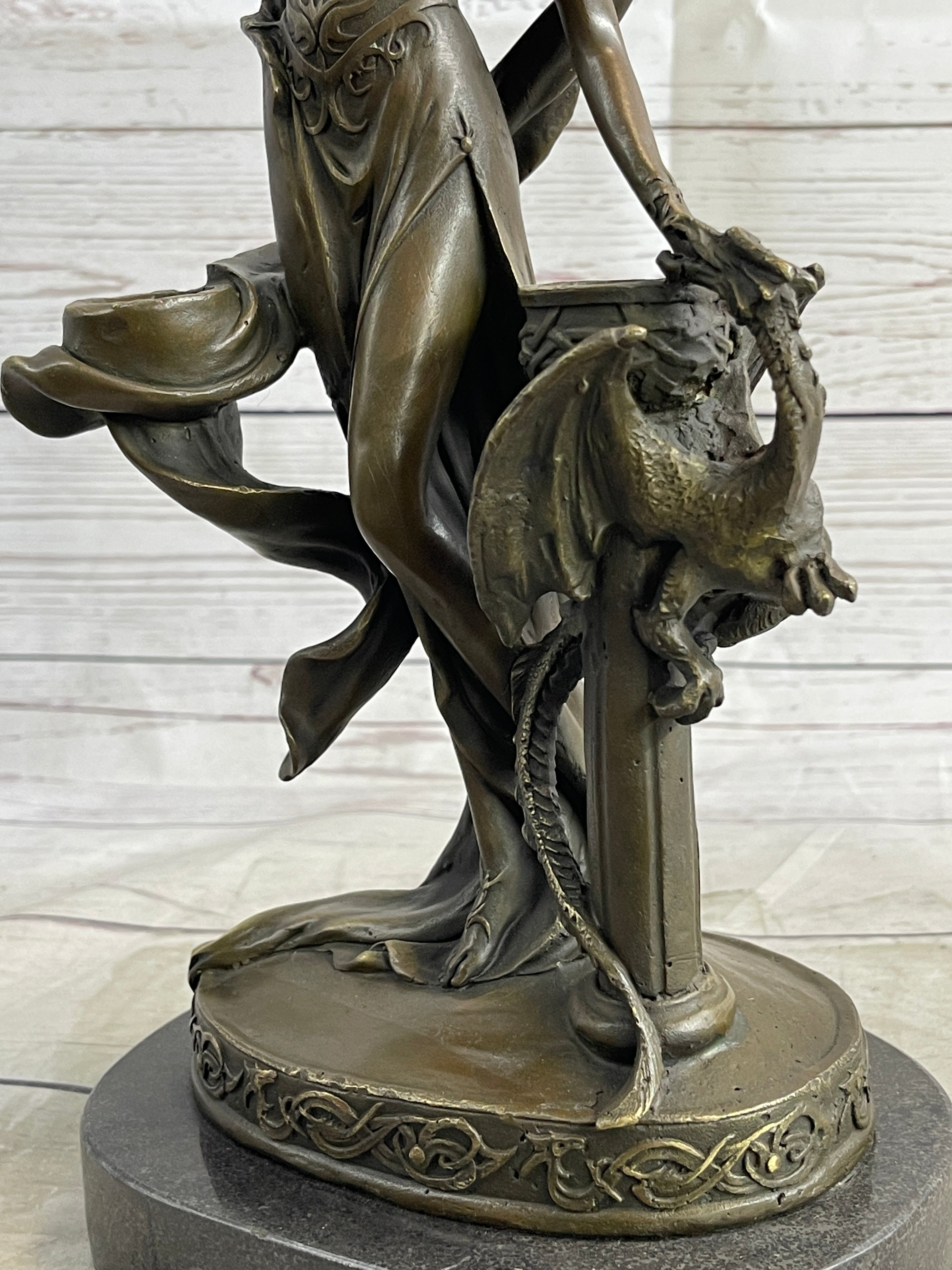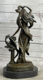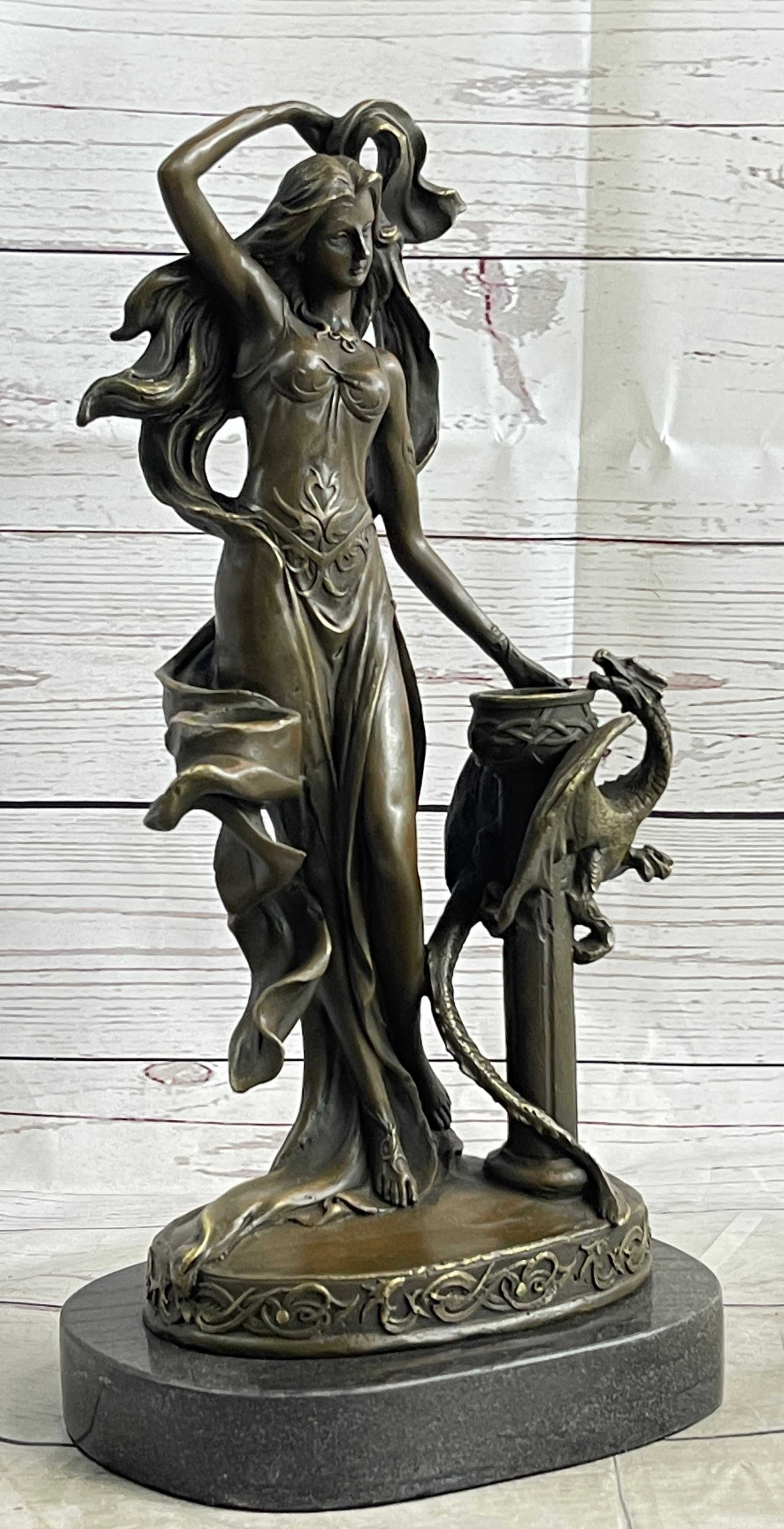 Fantasy Female Figure Art Nouveau Dragon Candle Holder Candelabra Bronze Sculpture