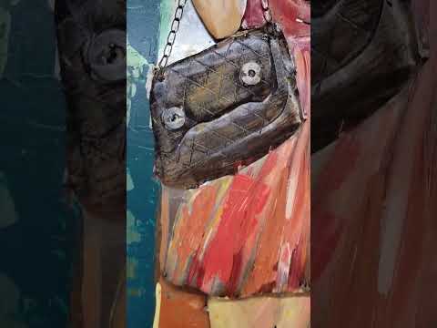 Fashionable Young Woman in Red Dress 3D Wall Art Mixed Media Painting