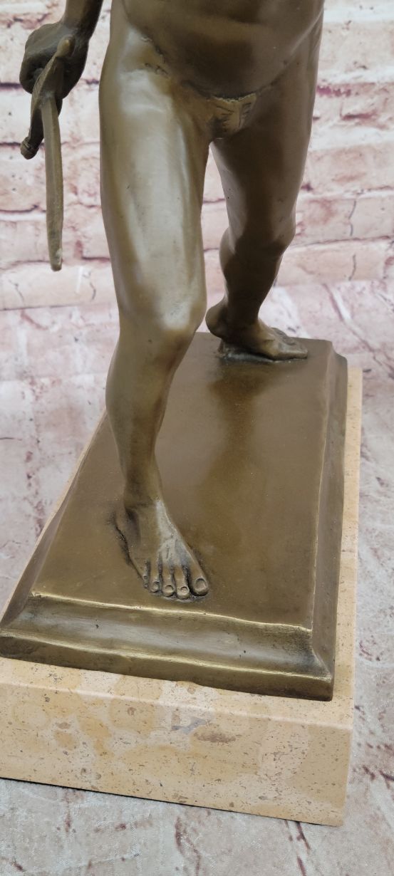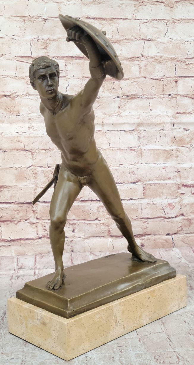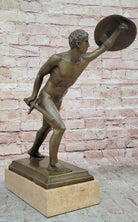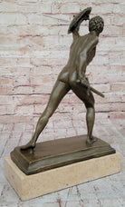 Roman Gladiator Bronze Metal Statue Sculpture Figure on Marble Base 17" x 21"