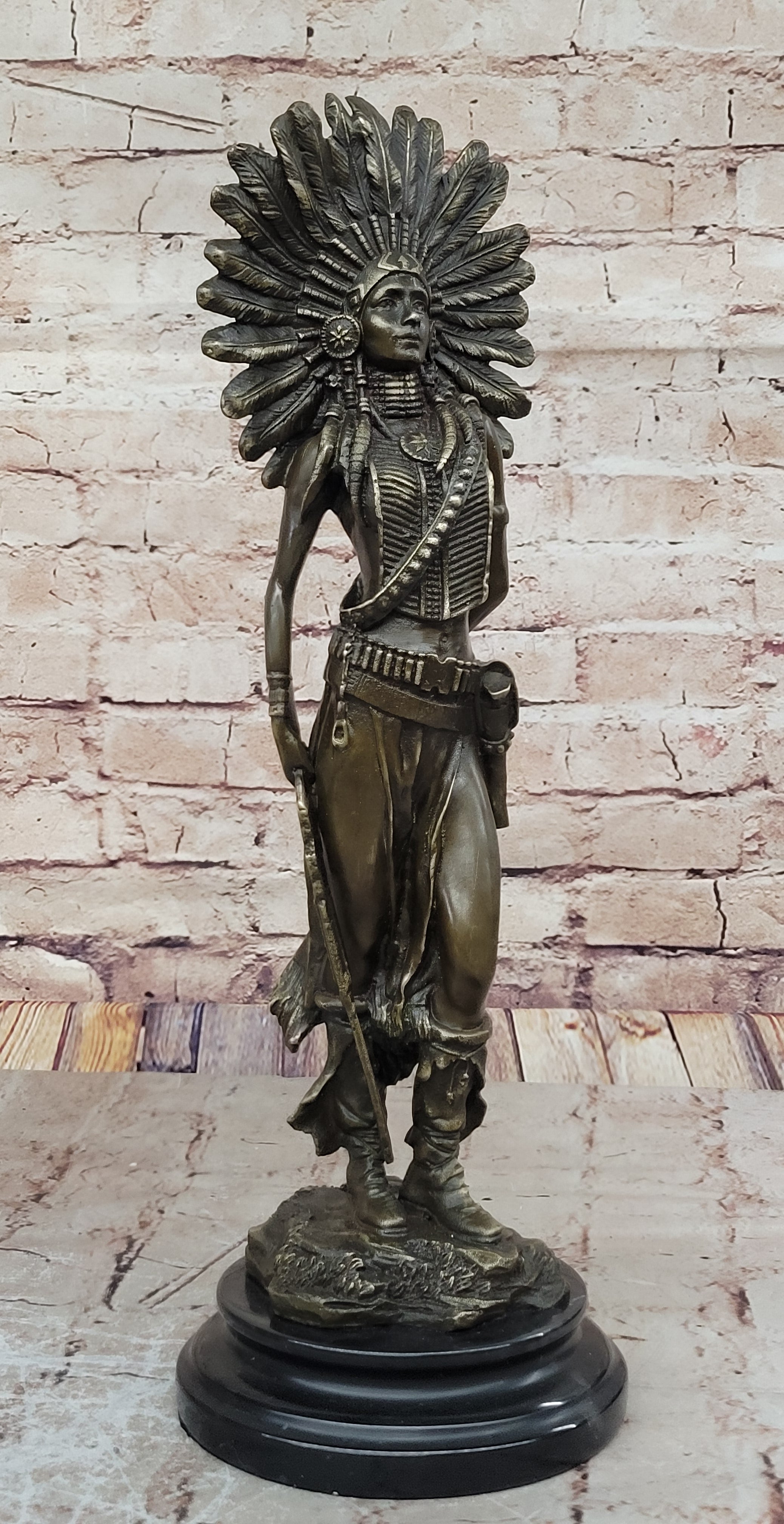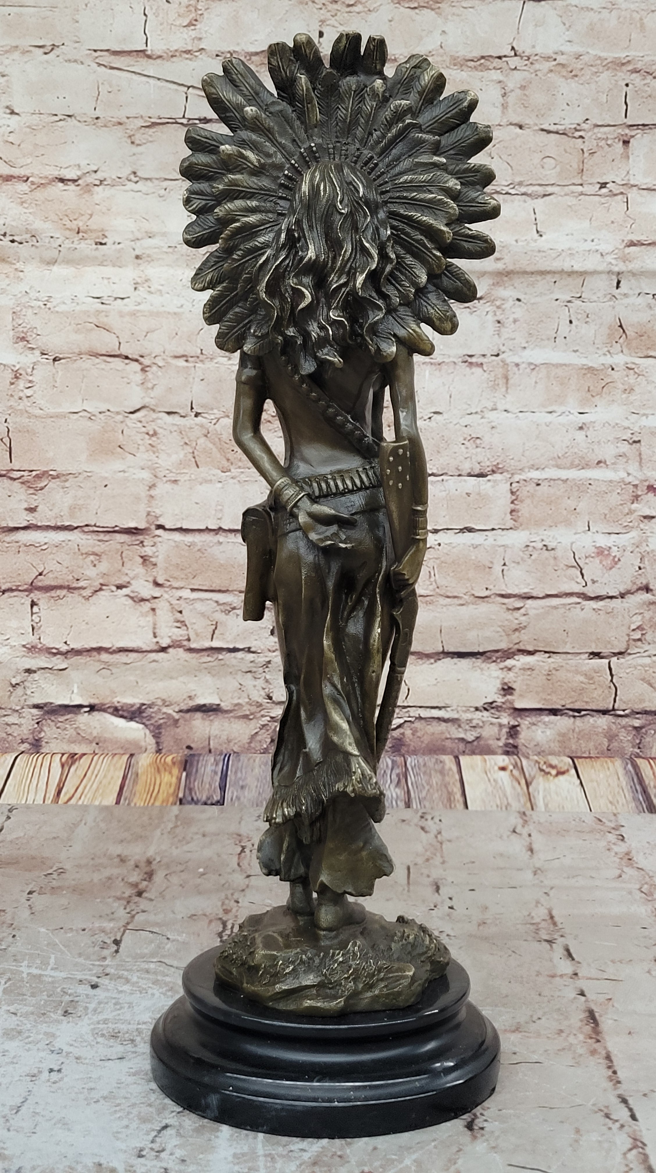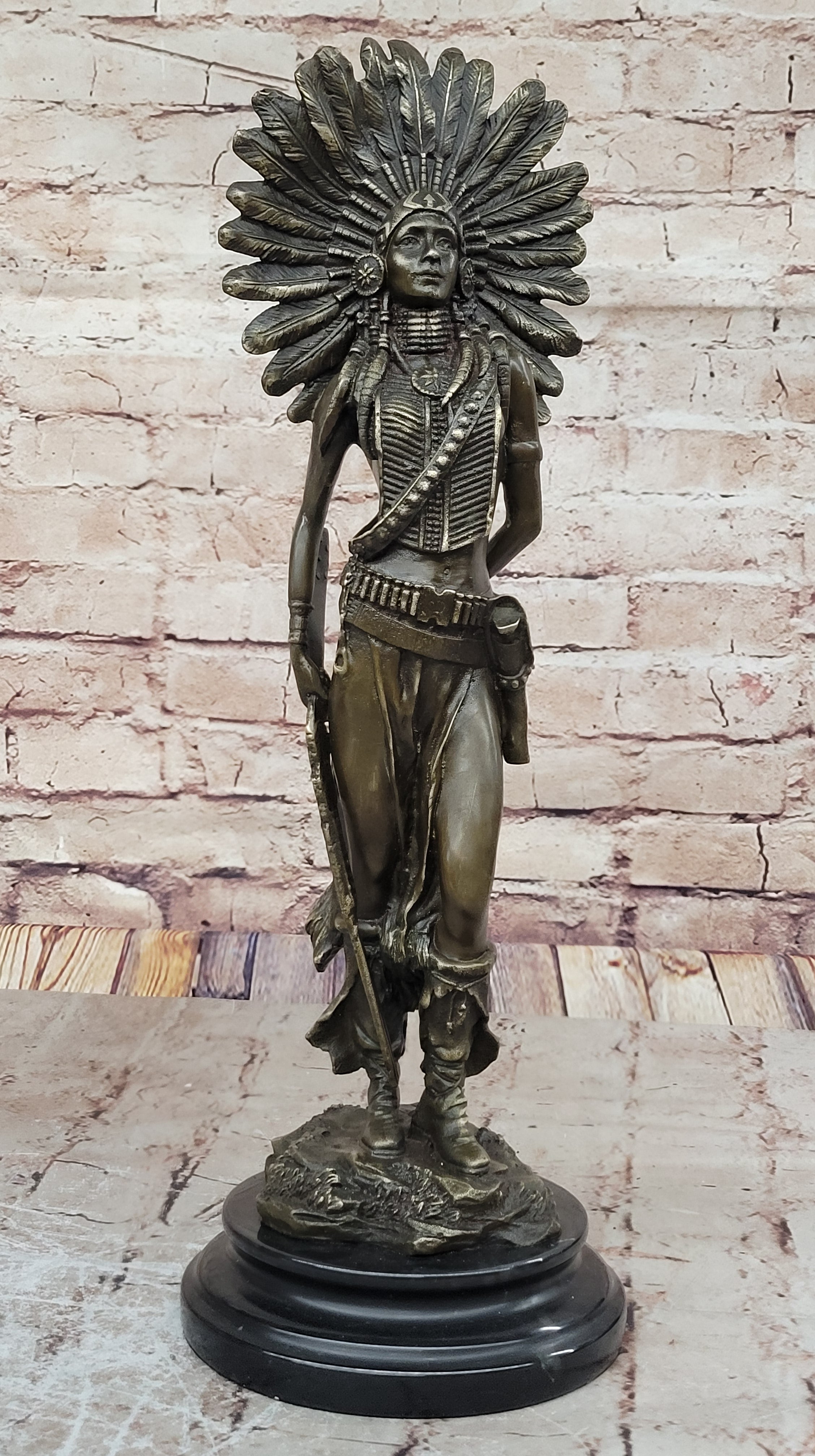 Female Native American Indian Warrior in Feathered Headdress Bronze Statue Sculpture Figure