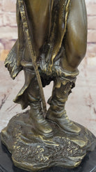Presenting a magnificent bronze sculpture that pays homage to the strength and grace of a Native American woman embarking on a hunt. This sculpture captures her fierce spirit, silent confidence, and captivating beauty as she stands tall atop a grassy hill.