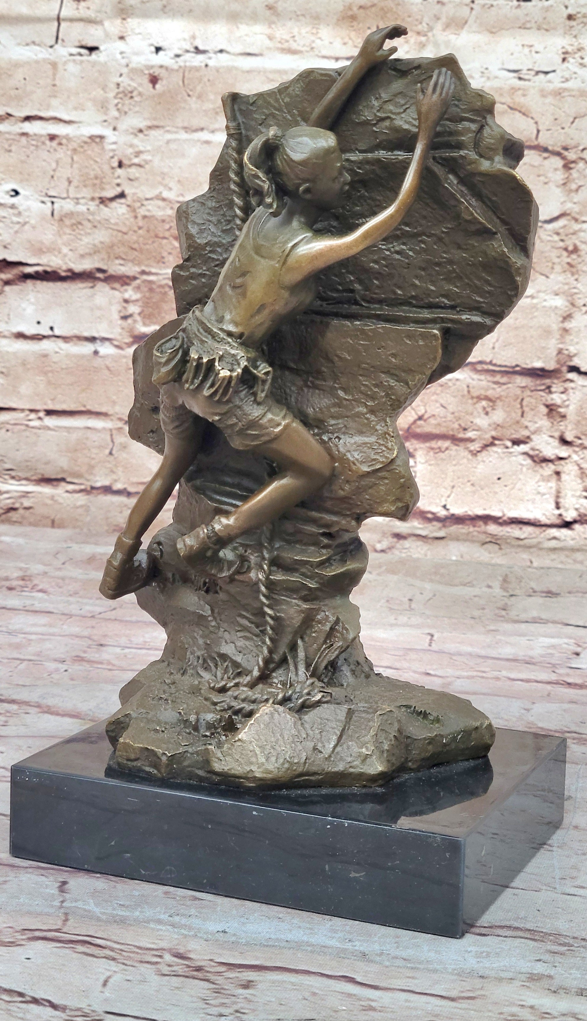 Female Rock Climber Mountaineering Scaling Wall Bouldering Alpinism Bronze Sculpture Statue